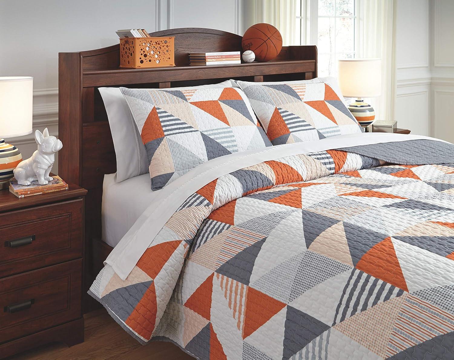 Ashley Furniture Signature Design – Layne Coverlet Set – Includes Coverlet & 2 Shams – Full Size – Gray/Orange(Full)
