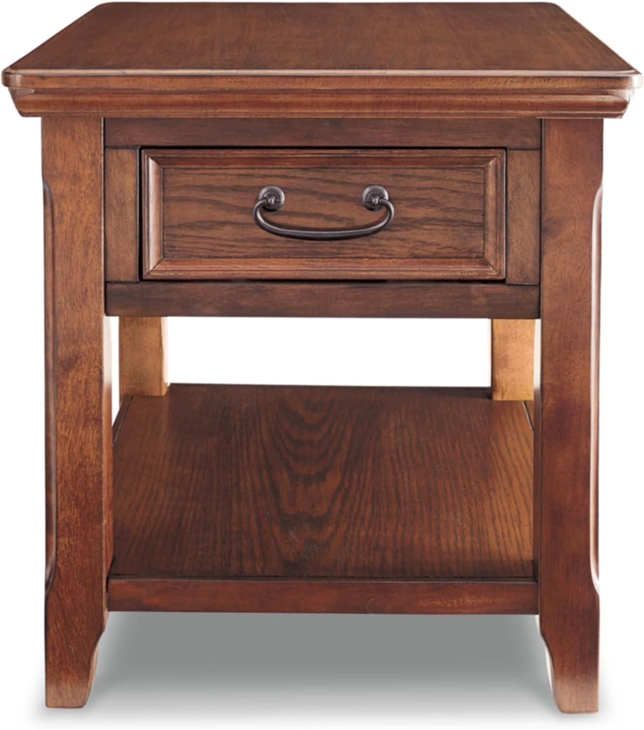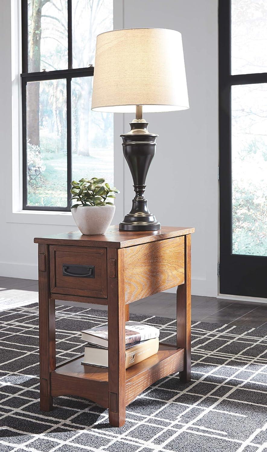 CASUAL END TABLE from Signature Design by Ashley is brimming with vintage-inspired character like antiqued hardware and weatherworn edging; Pairs perfectly with the handy STORAGE DRAWER from Signature Design by Ashley's mission-style end table.