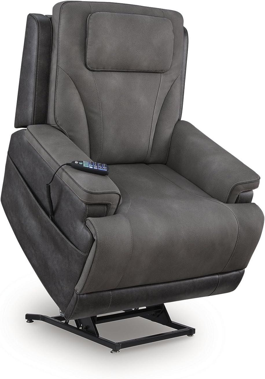 Signature Design by Ashley 4Z-Relax Retreat Modern Power Lift Recliner with Lumbar Support, Adjustable Headrest and USB Ports, Brown(Grey)