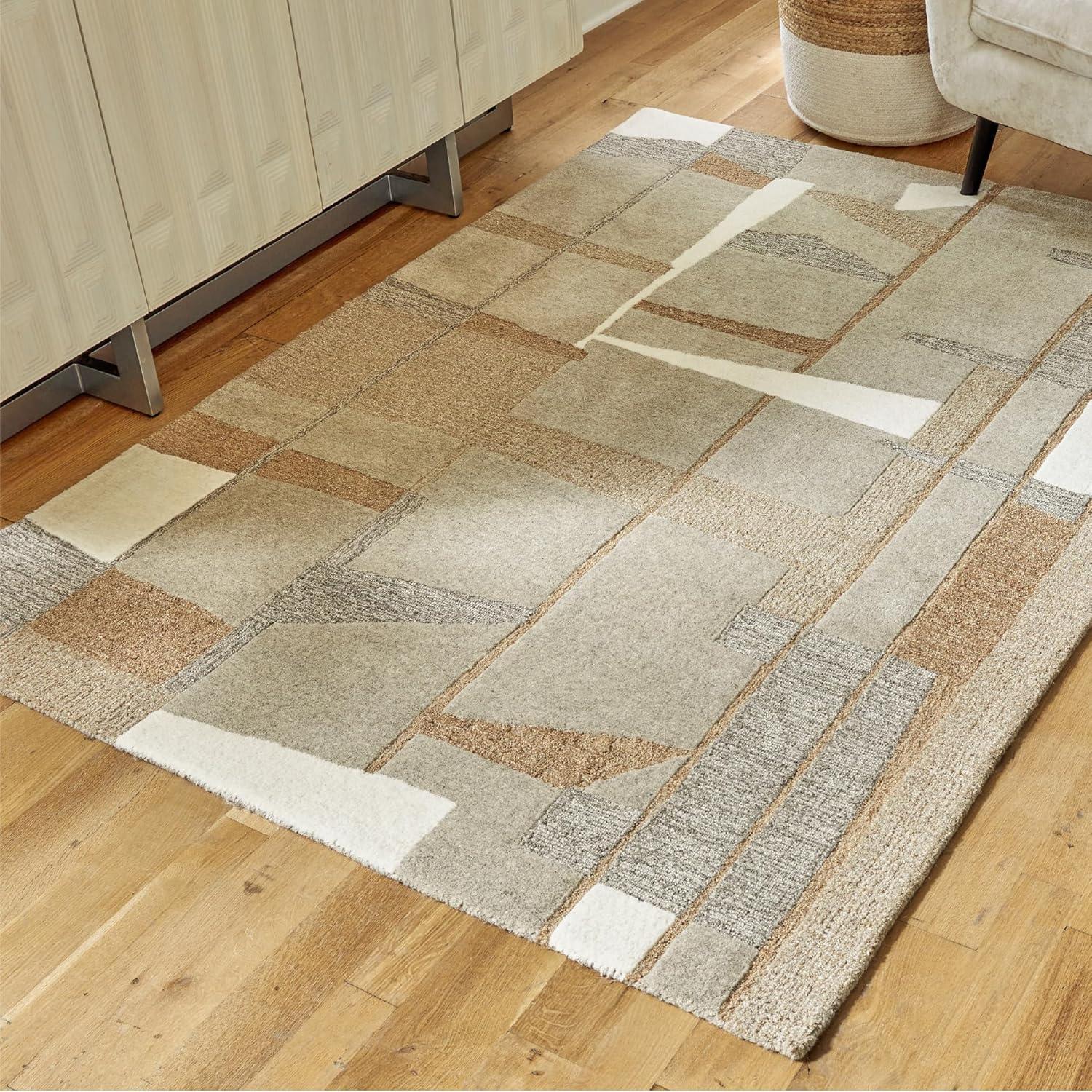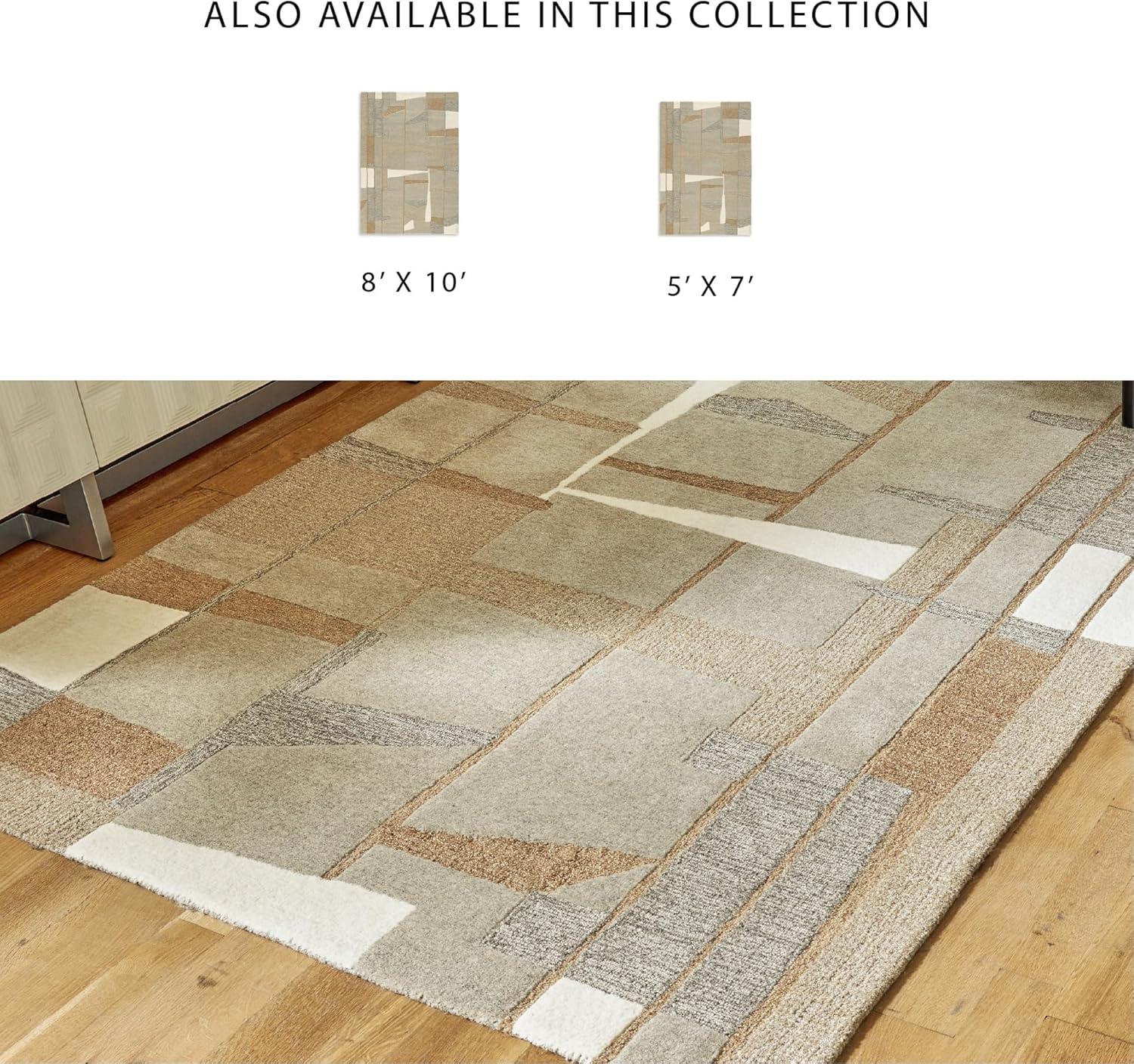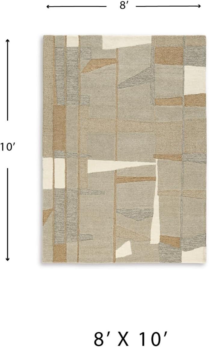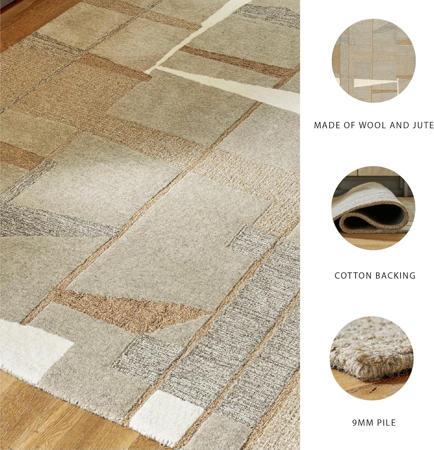 Signature Design by Ashley Abbotton Casual Indoor Geometric Handmade Wool and Jute 8 x 10 Rug, Light Brown & Light Gray