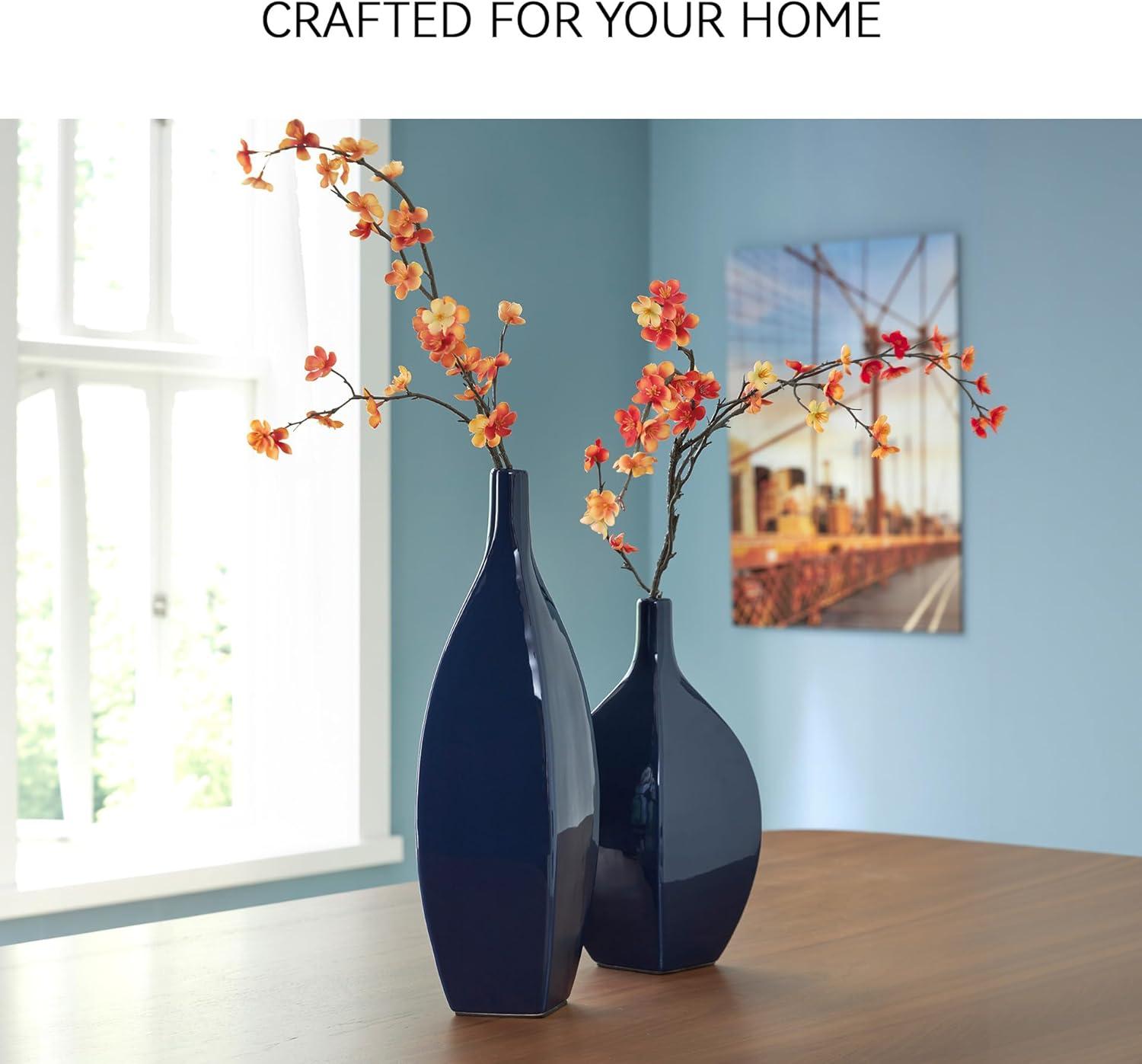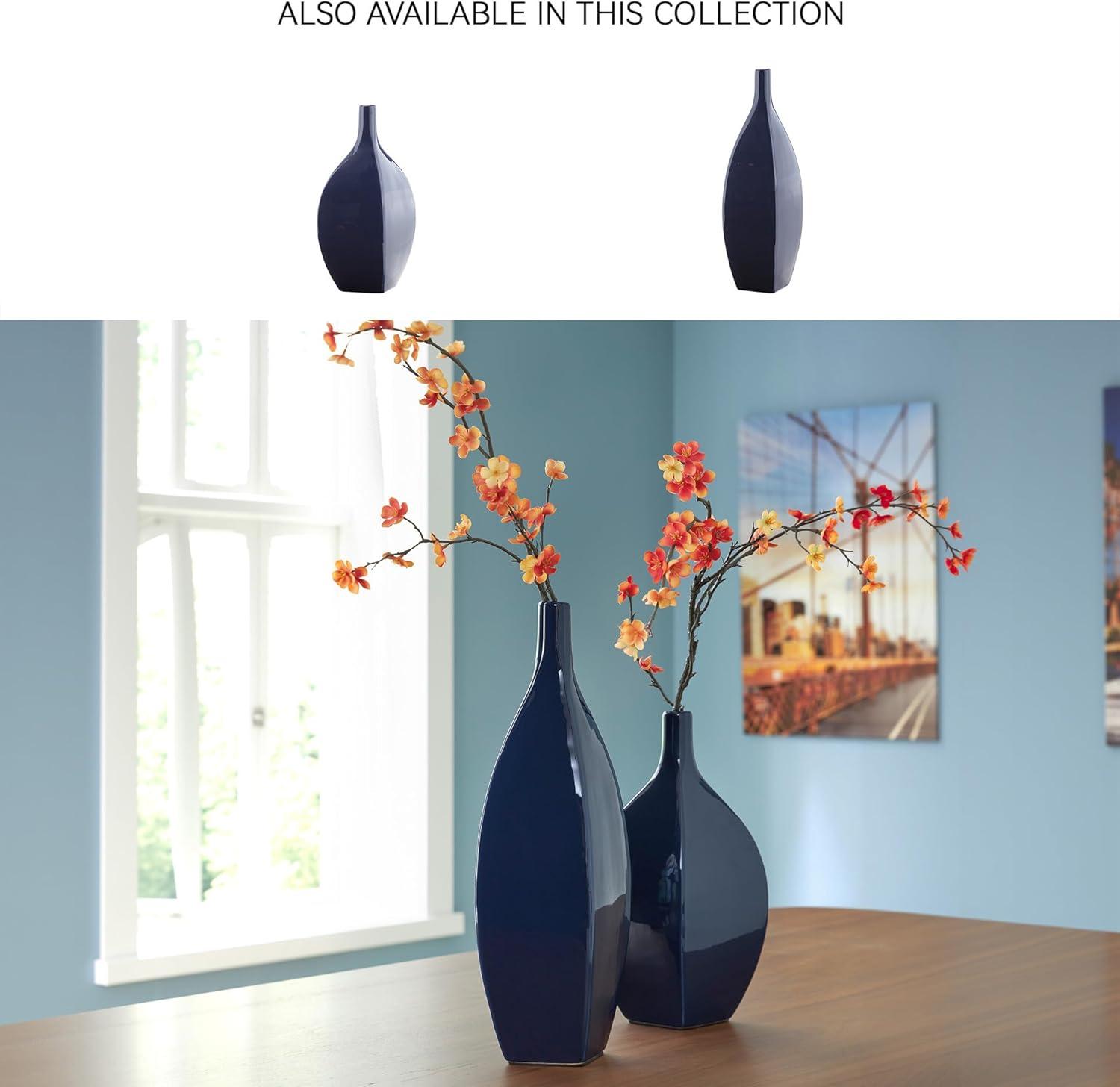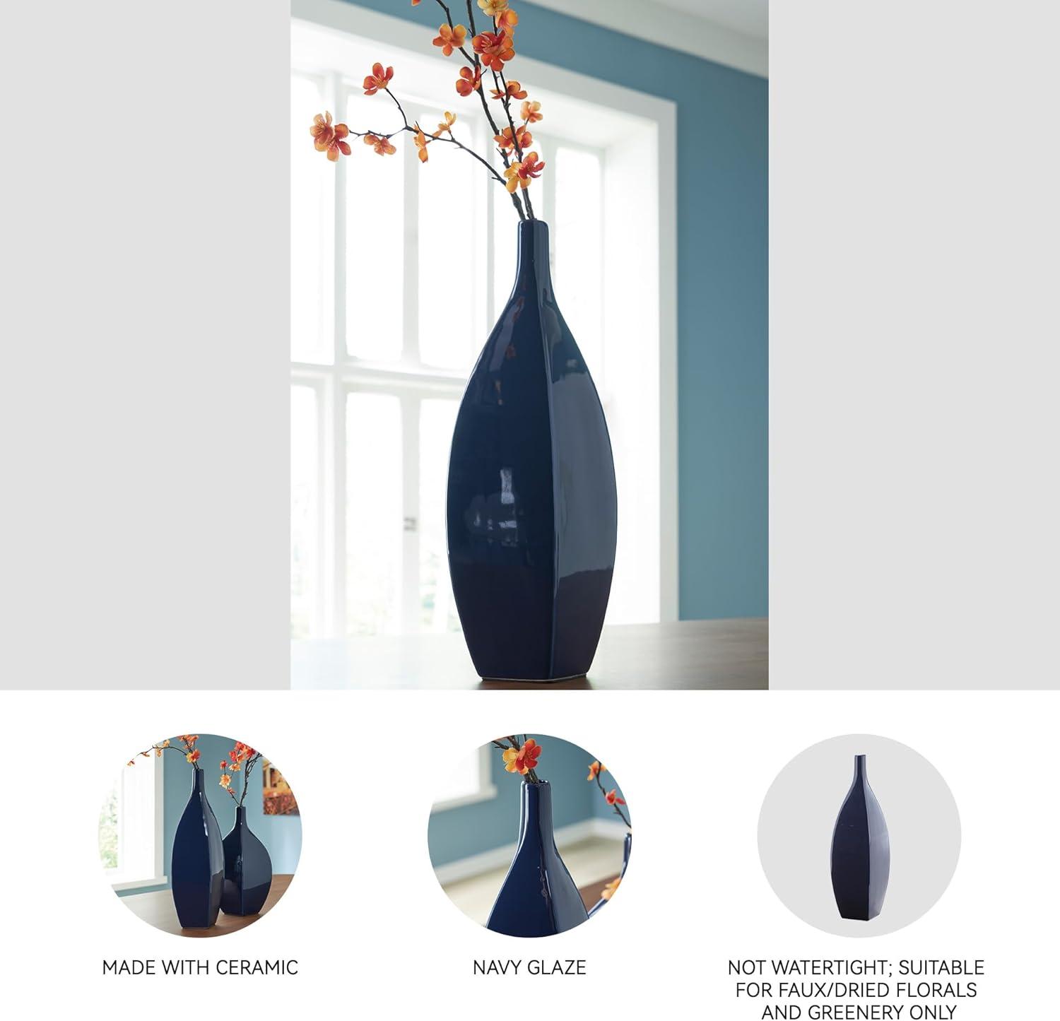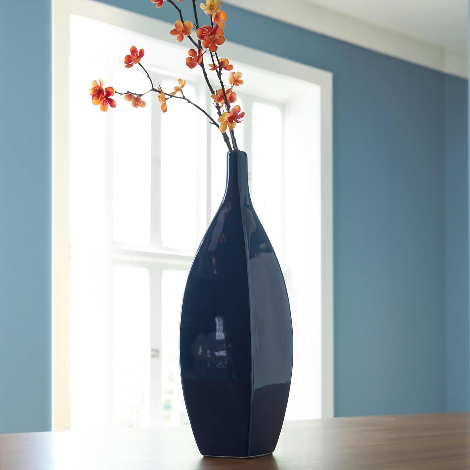 Signature Design by Ashley Abtinson Modern Indoor/Outdoor Glazed Ceramic Vase, Blue(Large)