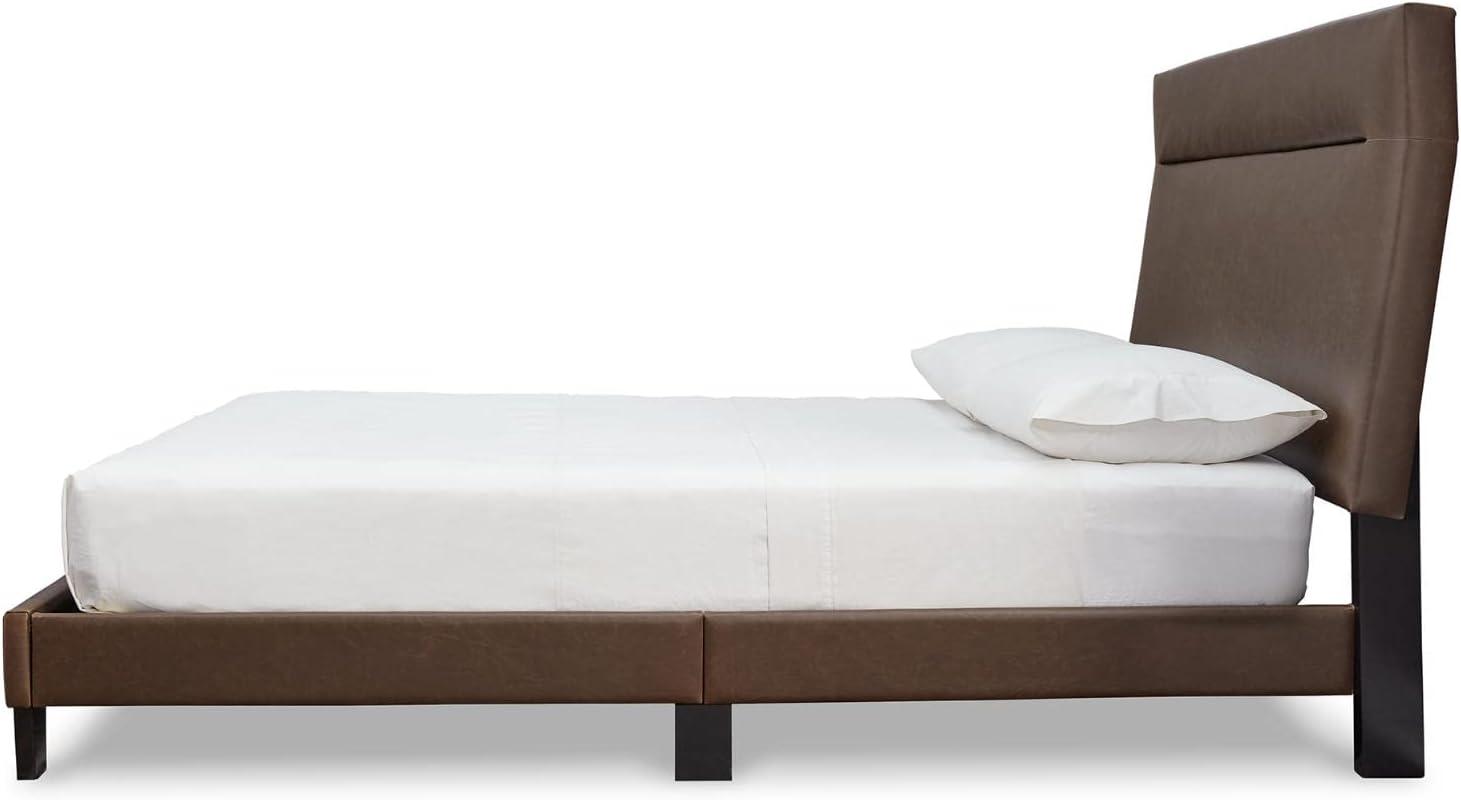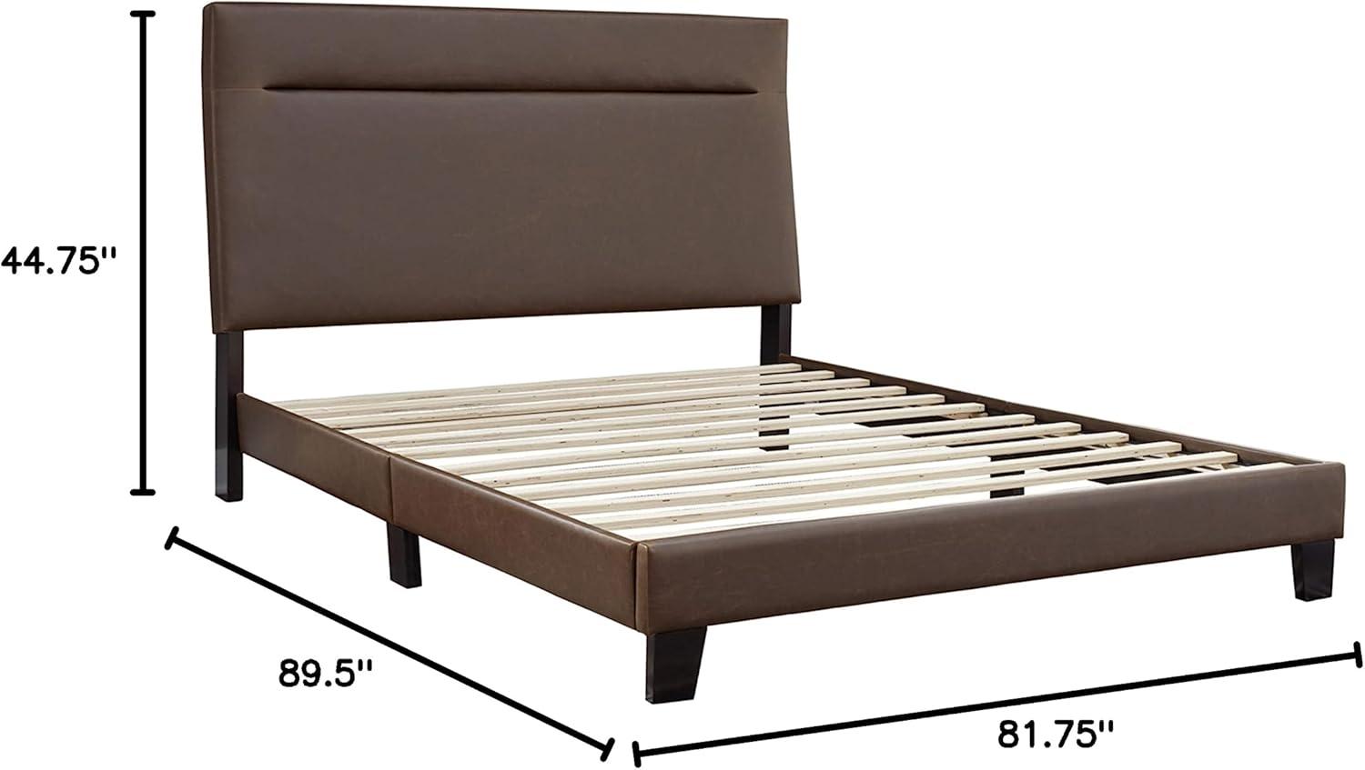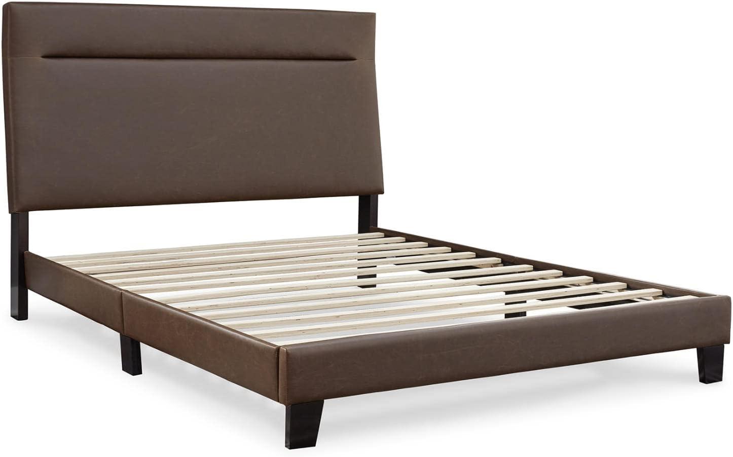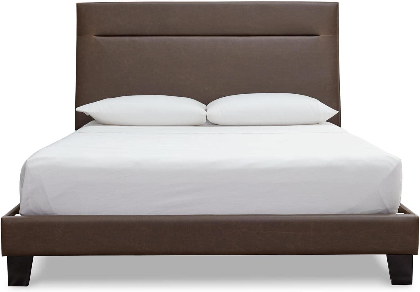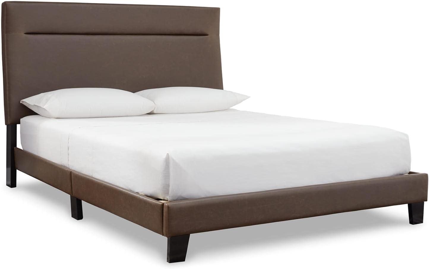 Signature Design by Ashley Adelloni Modern Upholstered Platform Bed with Adjustable Height Headboard, King, Brown
