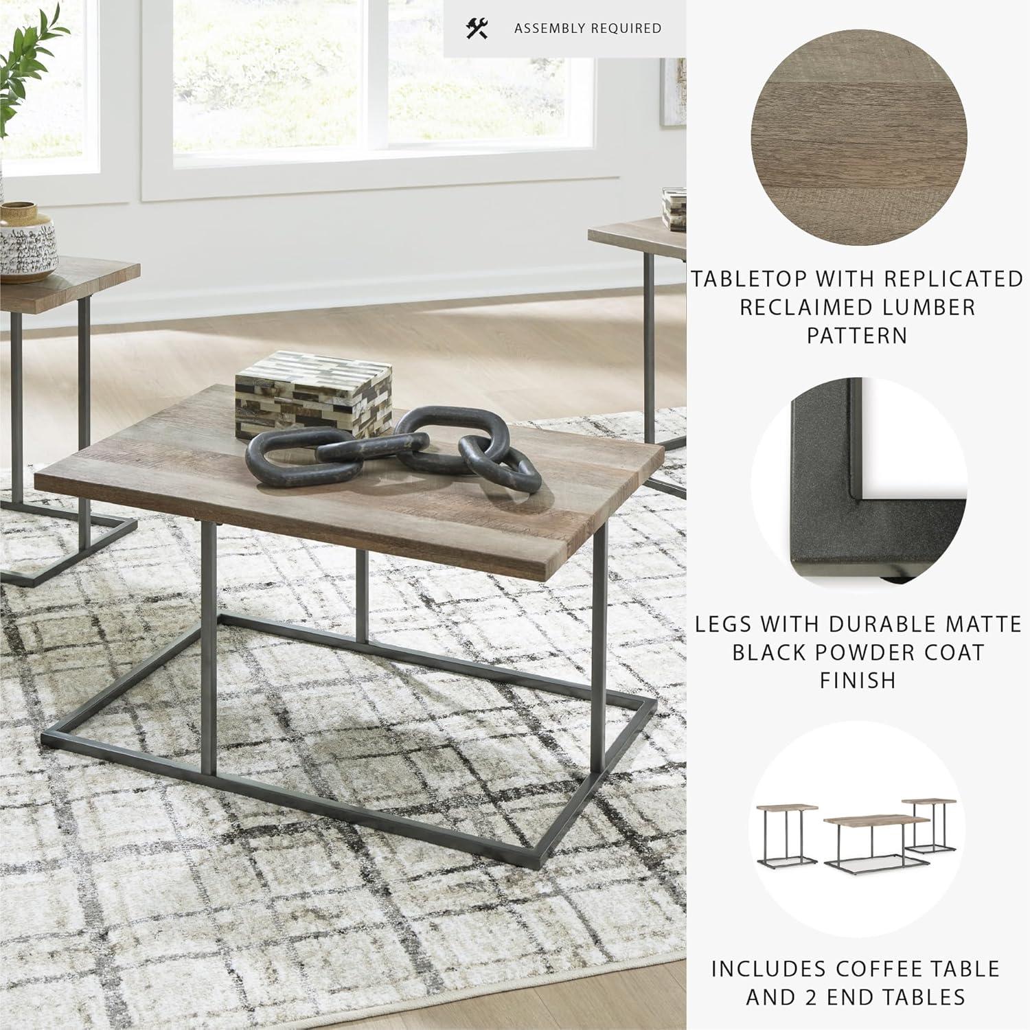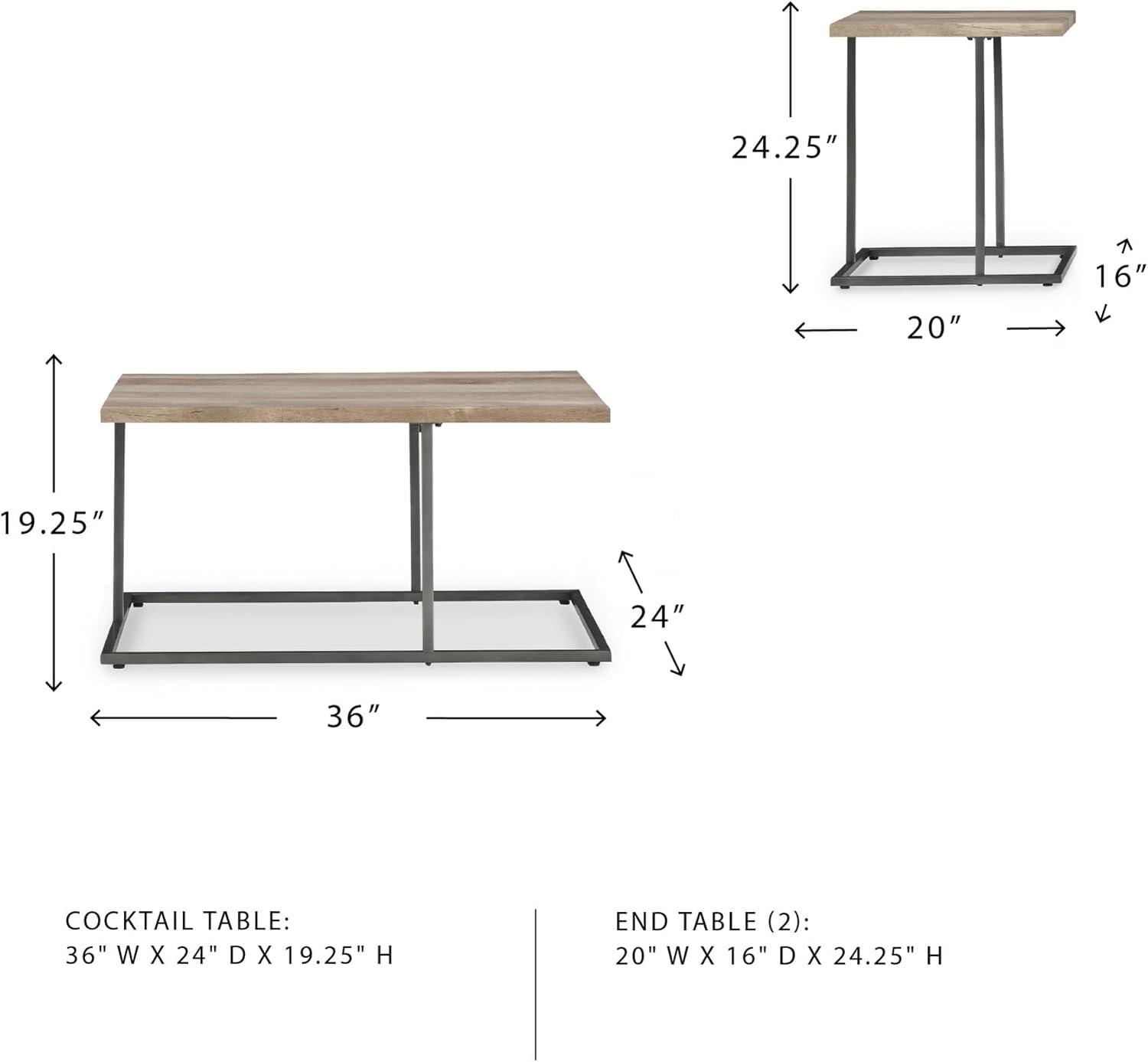QUALITY MADE: Includes coffee table and 2 end tables. Made with black tubular steel frame, decorative laminate & MDF substrate. Tabletop with replicated reclaimed lumber pattern