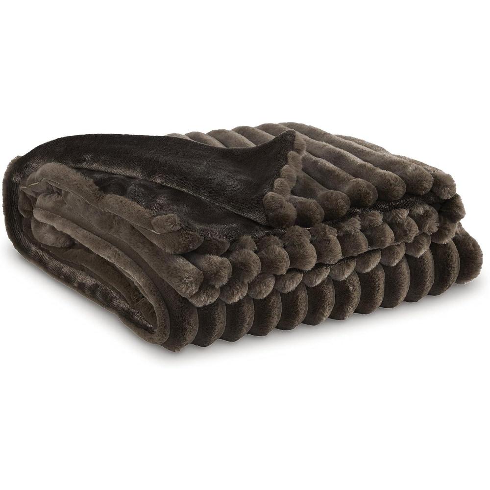 Signature Design by Ashley Alsonwell Contemporary Machine Washable Jacquard Faux Fur Throw with Stripe Design, Gray(Dark Brown)