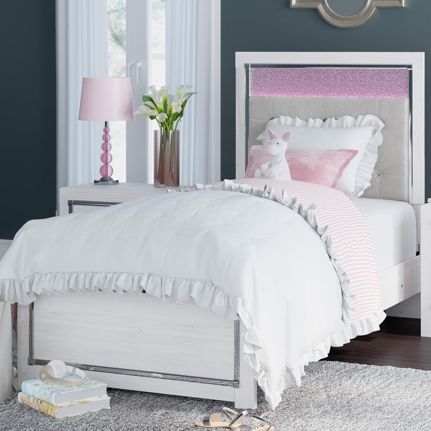 Signature Design by Ashley Altyra Modern King Tufted Panel Bookcase Bed, Foundation or Box Spring Not Needed, White(Twin Panel Bed)
