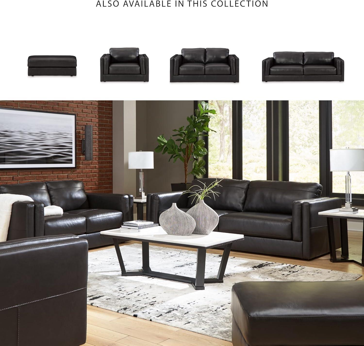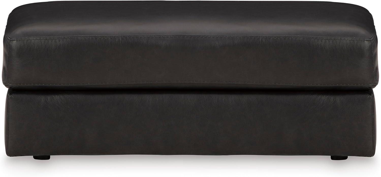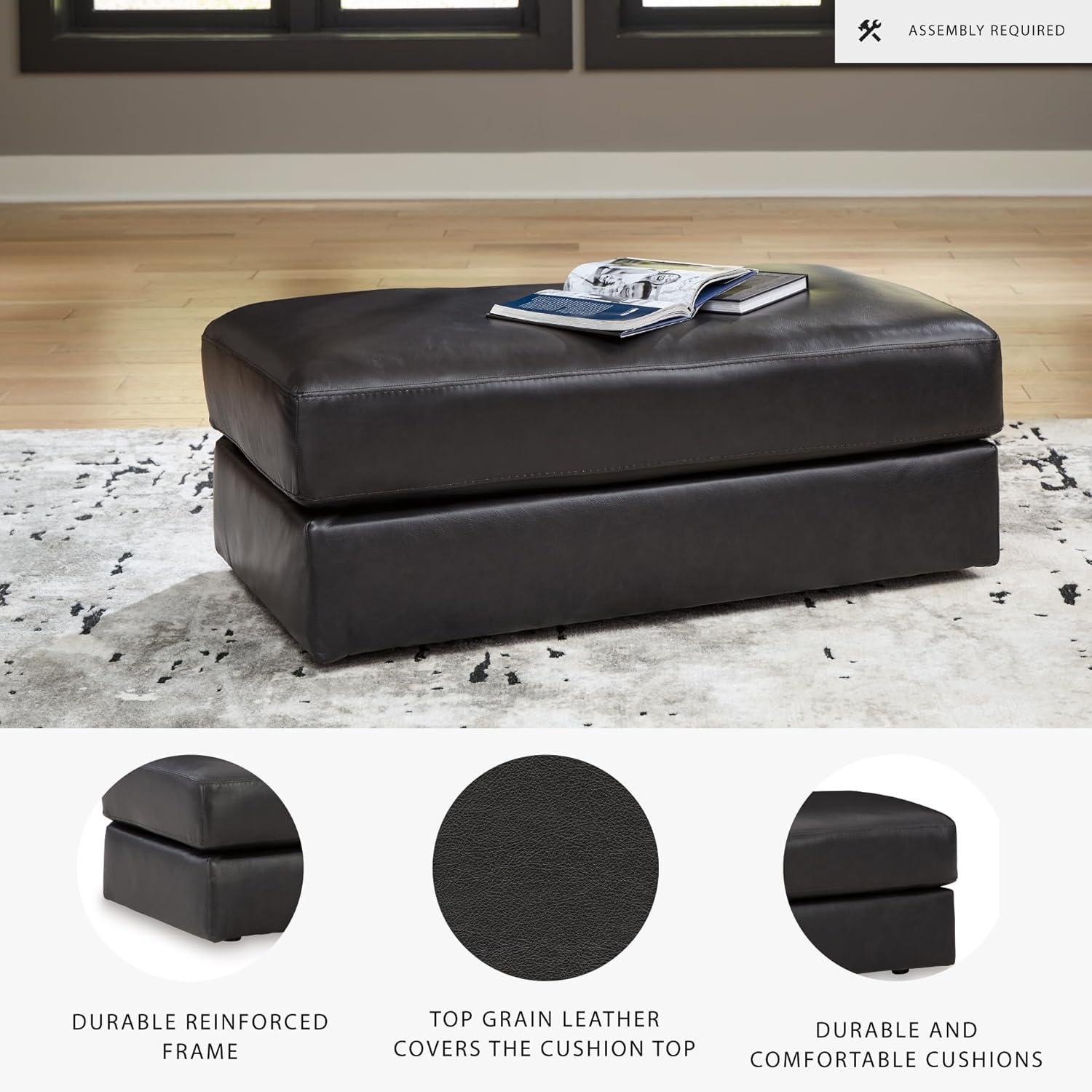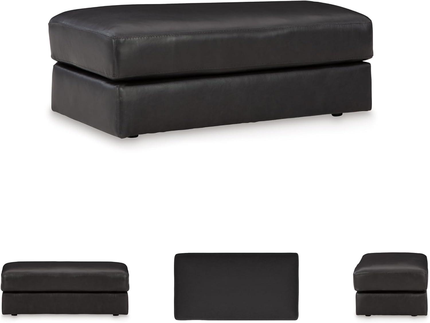 Signature Design by Ashley Amiata Contemporary Firmly Cushioned Leather Rectangular Ottoman, Black(Black)
