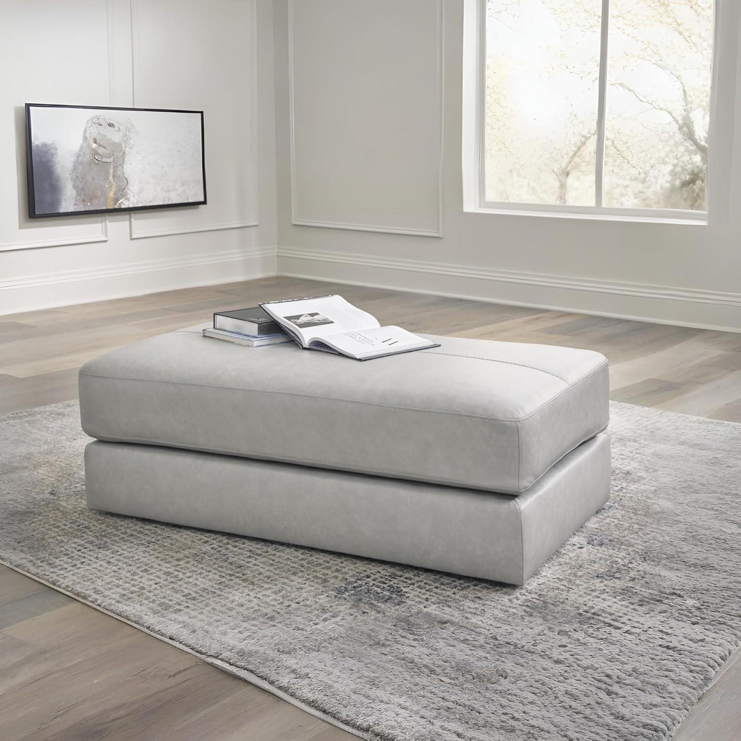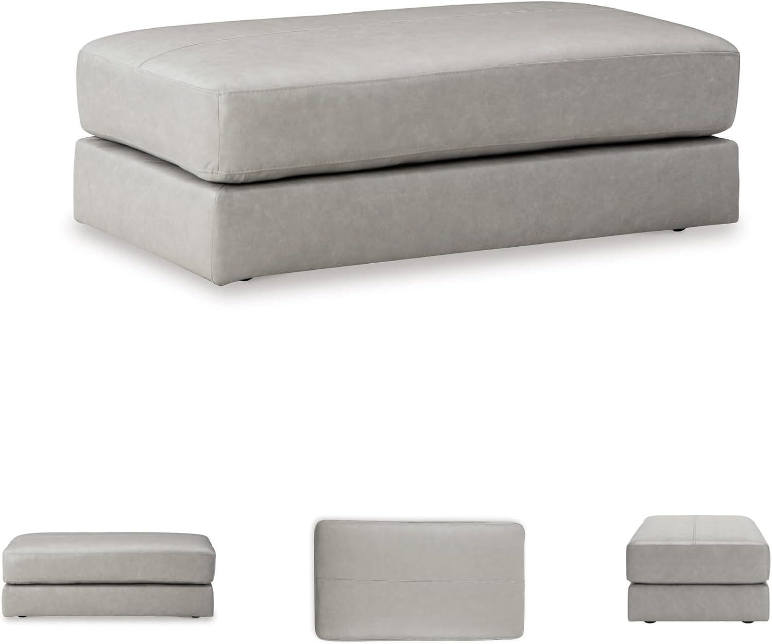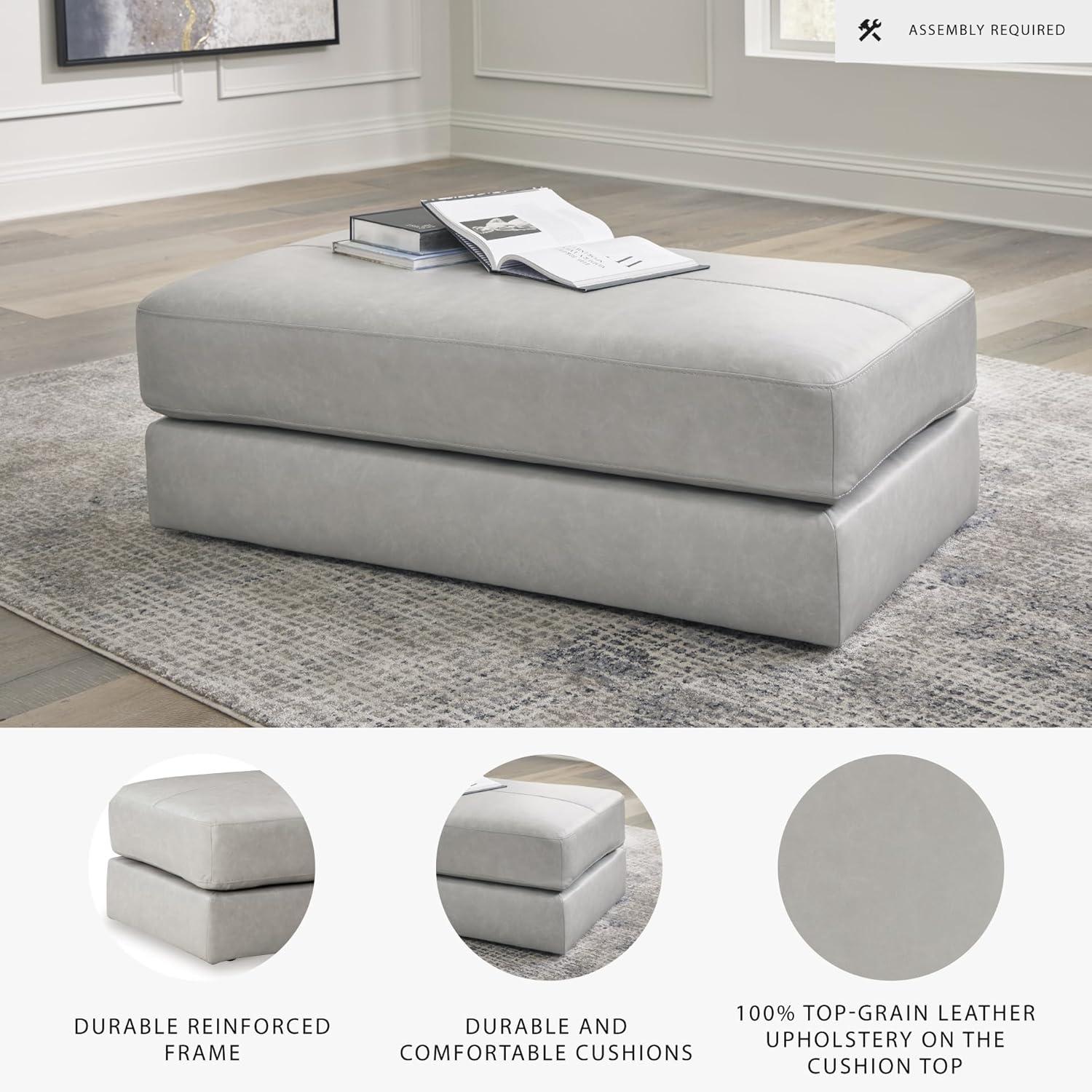 Signature Design by Ashley Amiata Contemporary Firmly Cushioned Leather Rectangular Ottoman, Black(Light Gray)