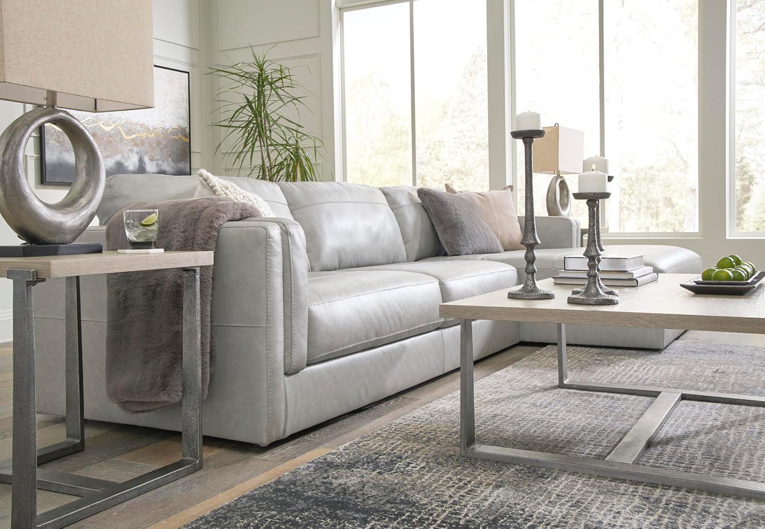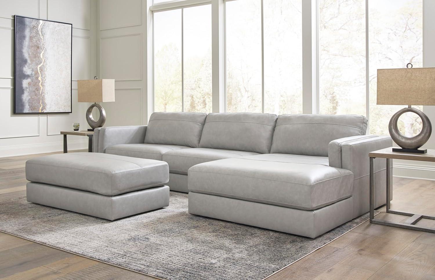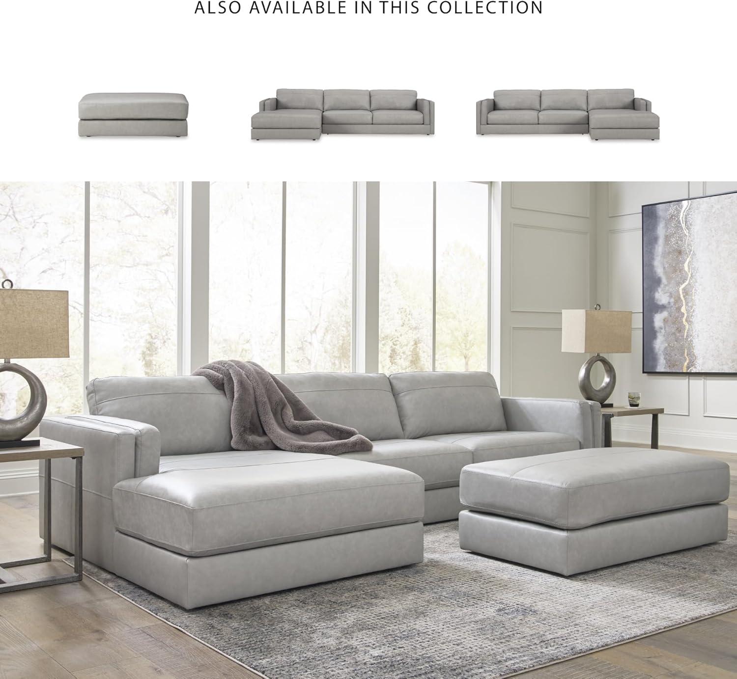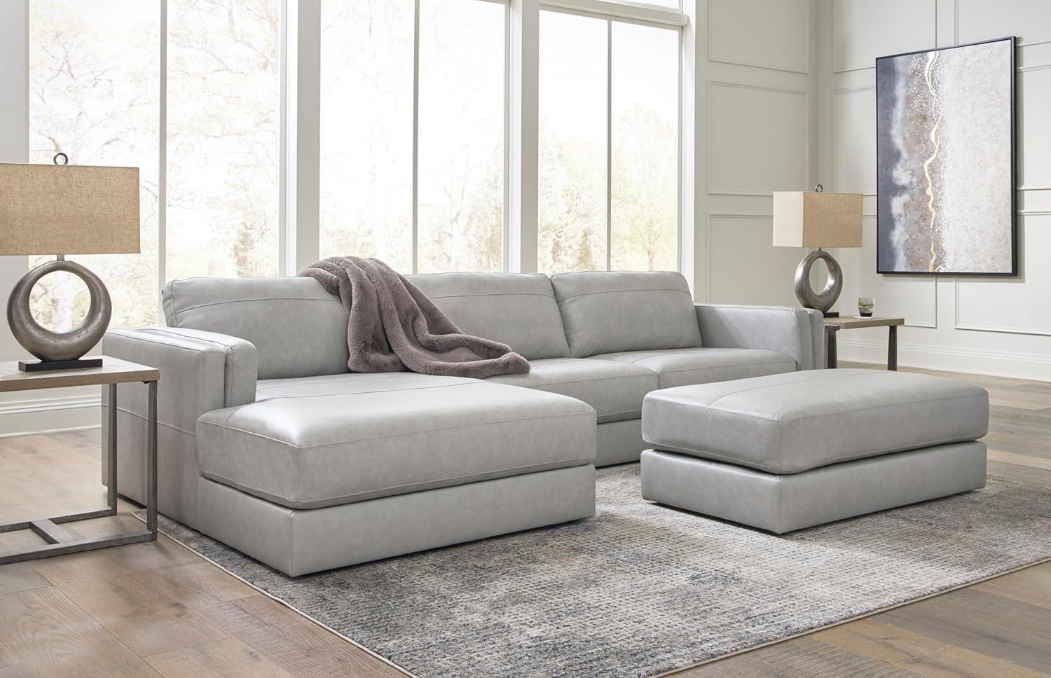 Signature Design by Ashley Amiata Contemporary Firmly Cushioned Leather Rectangular Ottoman, Black(Light Gray)