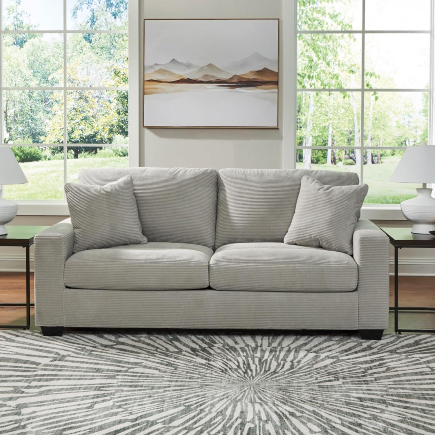 Signature Design by Ashley Ammon Casual Anti Sag Sofa with Loose Seat Cushion and 2 Accent Pillows, White(Light Gray)