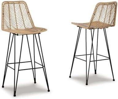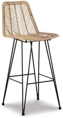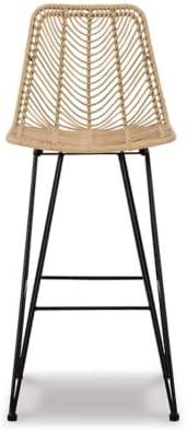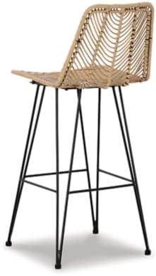 Signature Design by Ashley Angentree Bohemian 29″ Bar Height Upholstered Barstool, Black(Tan)