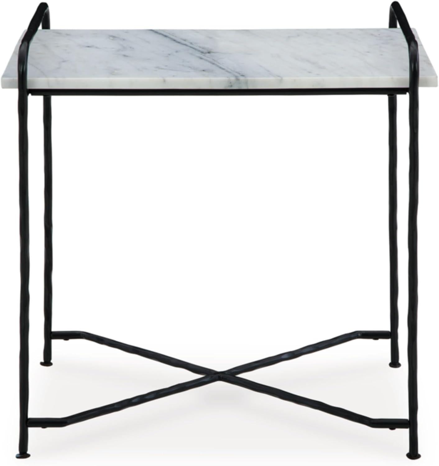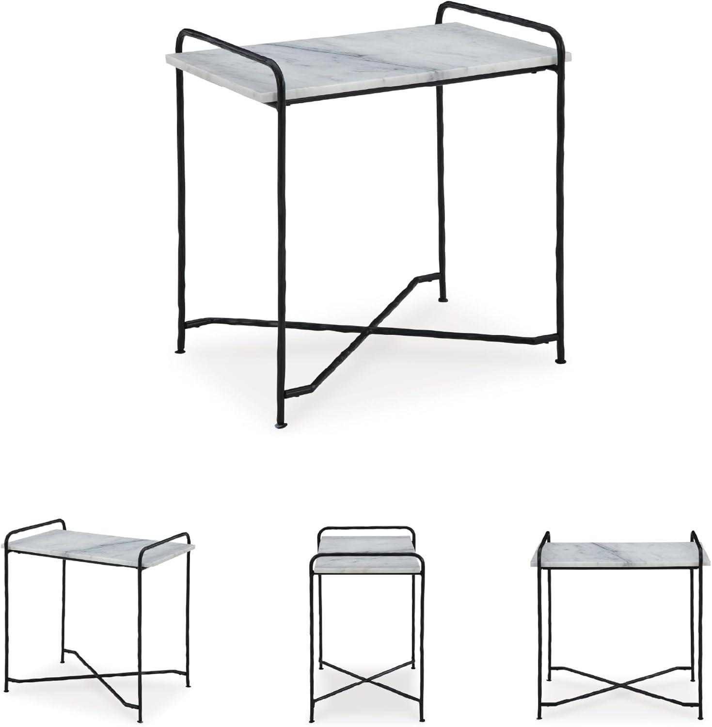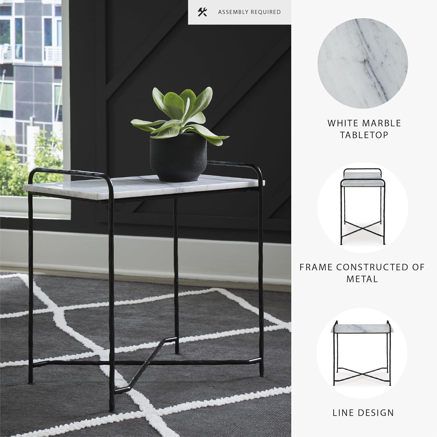 Signature Design by Ashley Ashber Contemporary Marble-Tabletop Accent Table with Cross Legs, White & Black