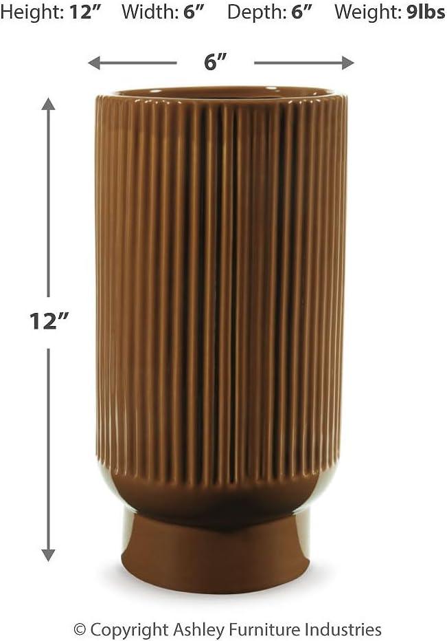 Signature Design by Ashley Avalyah Casual Indoor/Outdoor 12″ Glazed Ceramic Tabletop Vase with Wide Mouth, Dark Brown(12″)