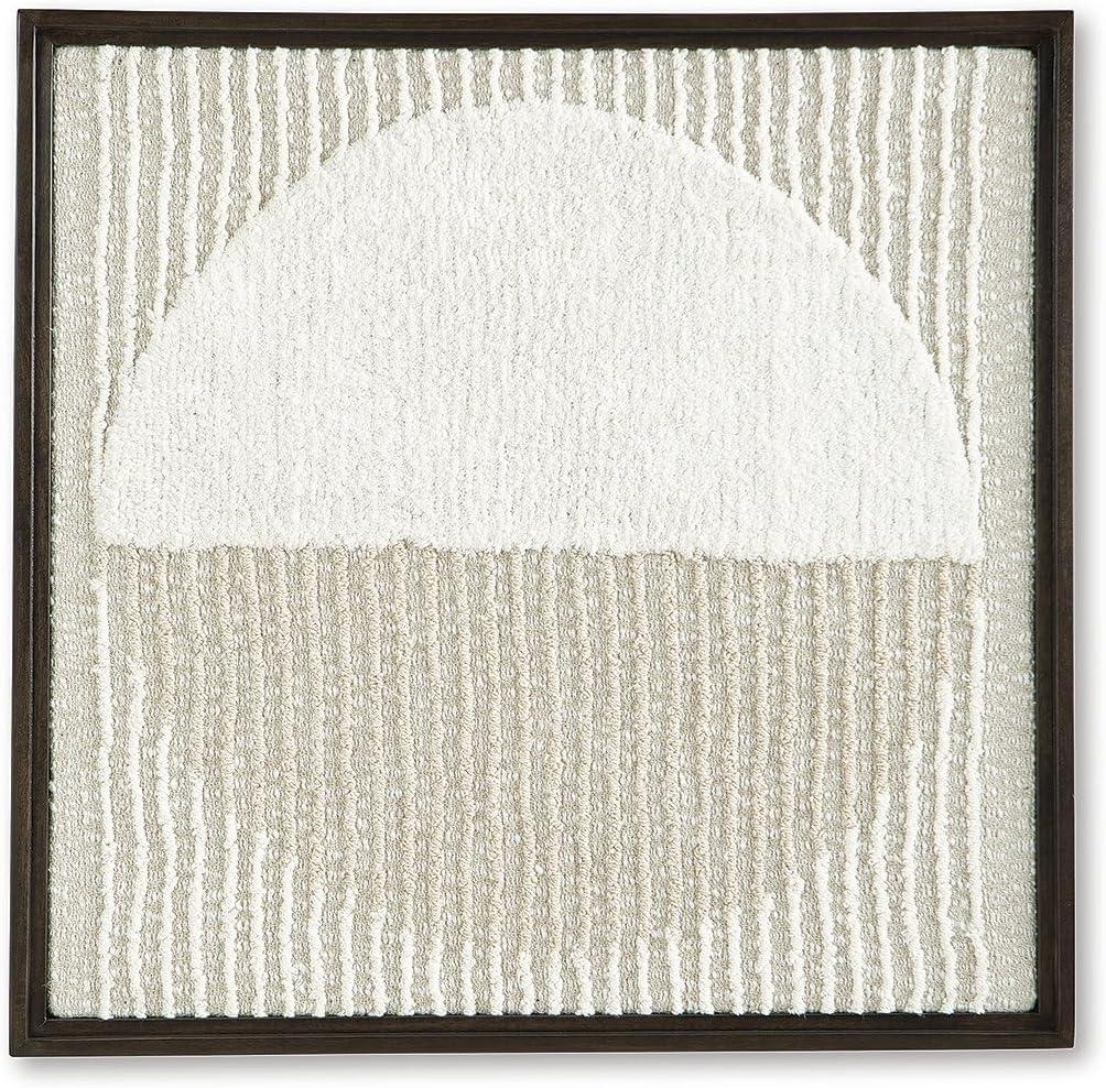 Signature Design by Ashley Bachard Minimalist Square Woven Geometric Wall Decor 30 x 30 Inches, Beige & White