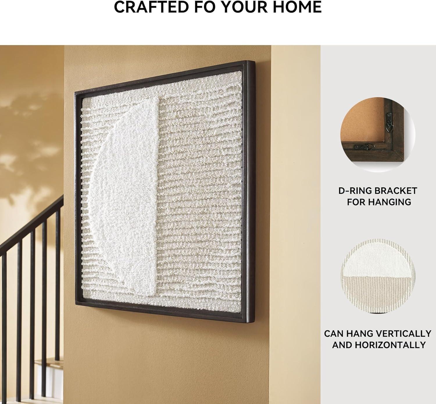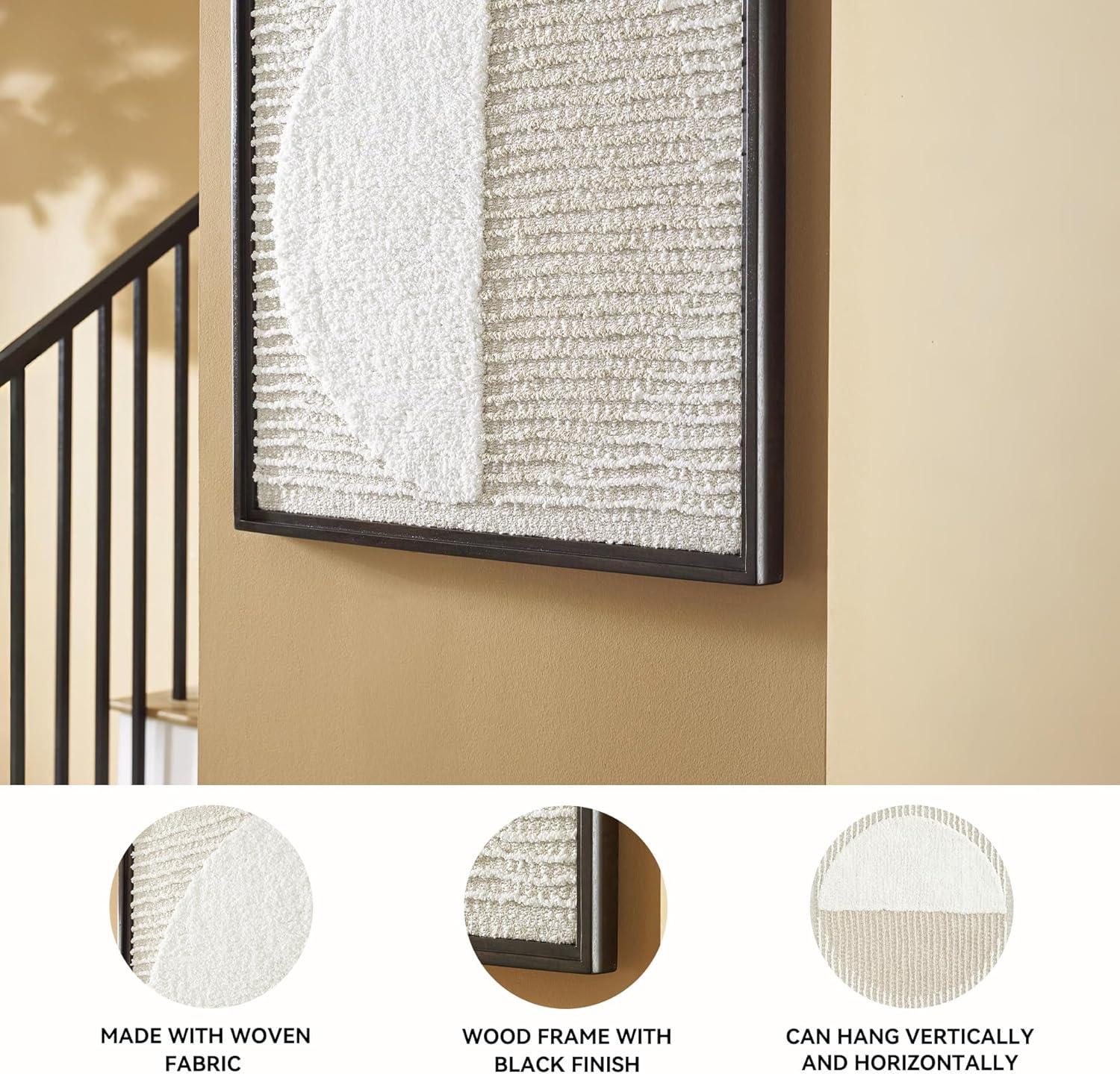 BEAUTIFUL CRAFTSMANSHIP: Made with woven fabric with wood frame in a black finish. D-ring bracket for hanging. Hangs vertically and horizontally