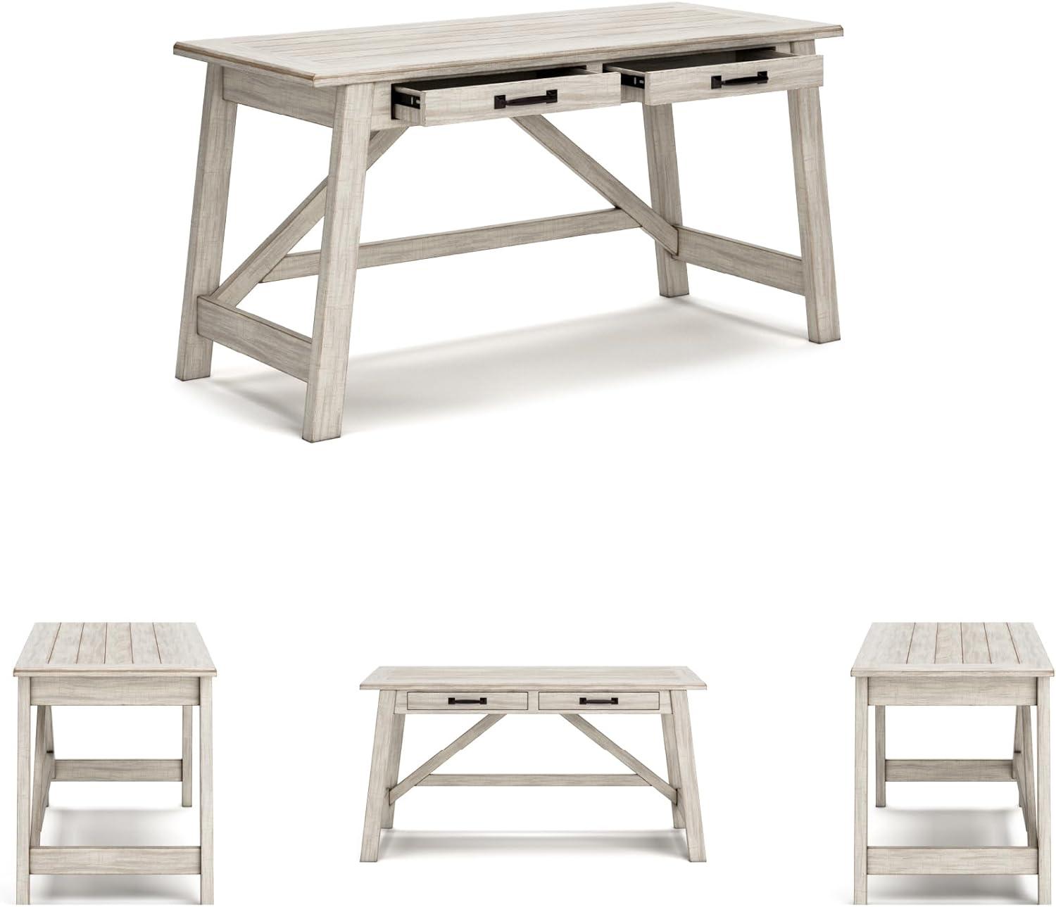 Signature Design by Ashley Baldridge Rustic Home Office Desk, Distressed Brown(Whitewash)