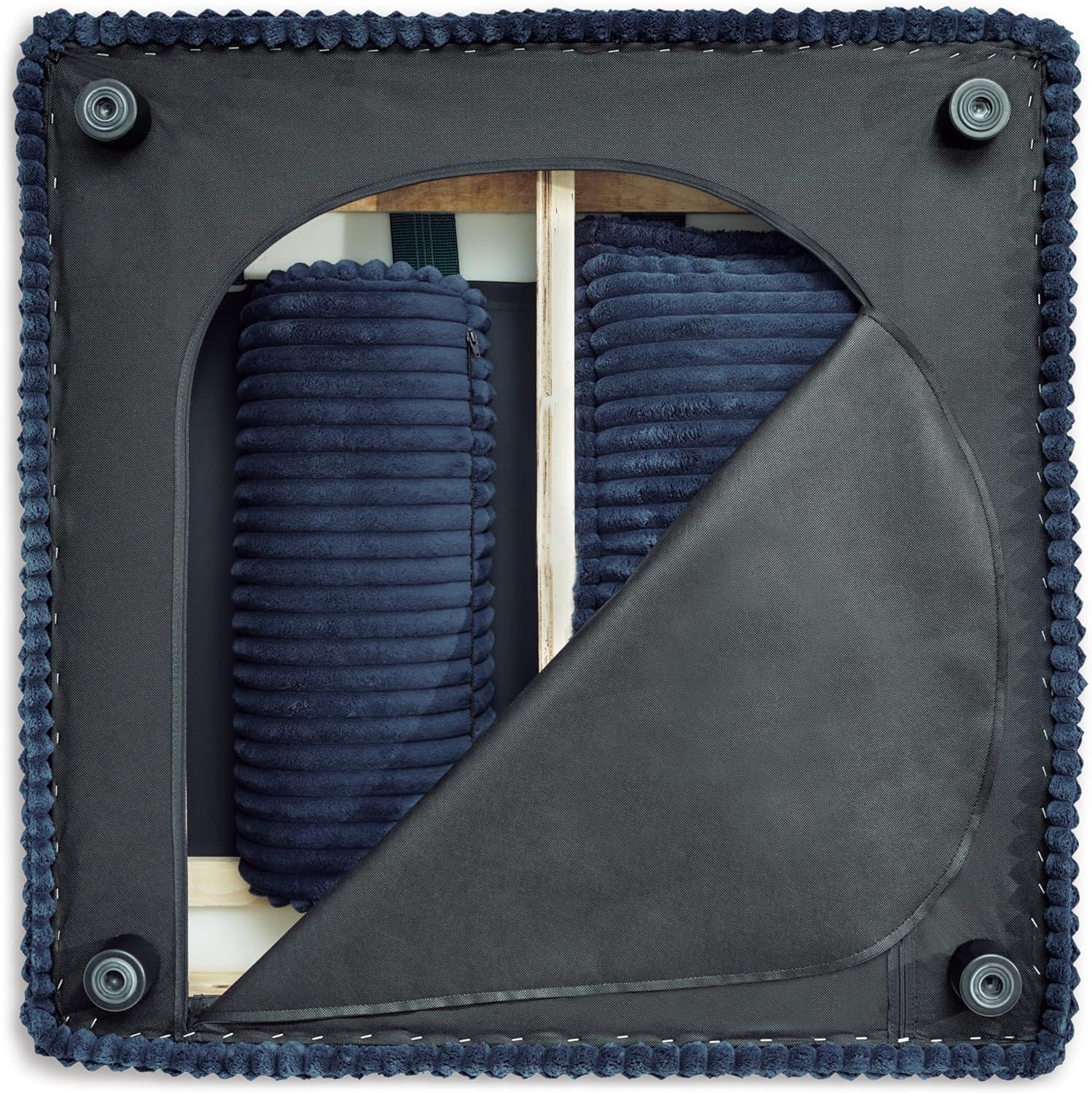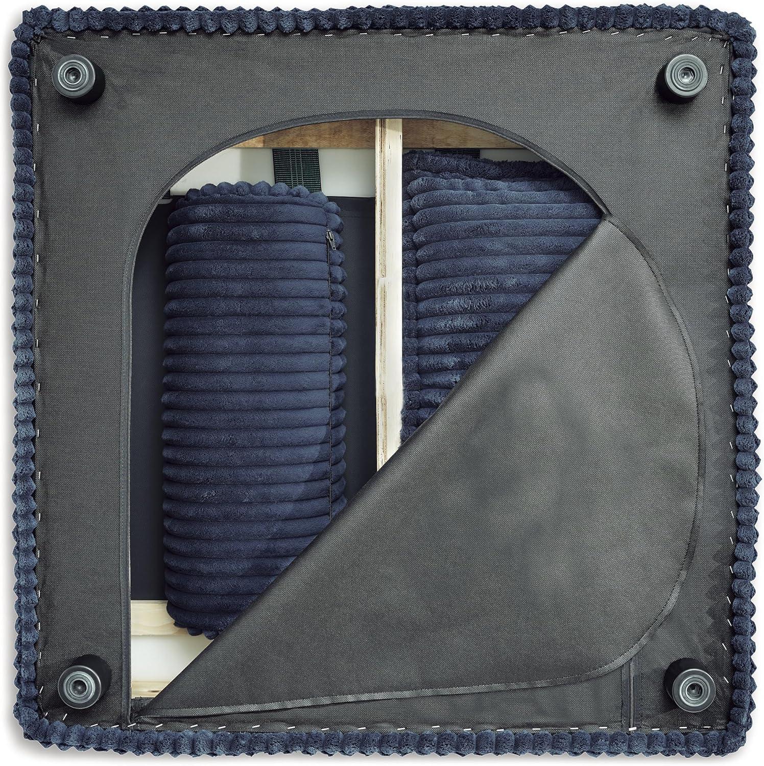 QUALITY CRAFTED: Navy blue polyester upholstery. Pillow and bolster with non-slip decking. Non-skid feet