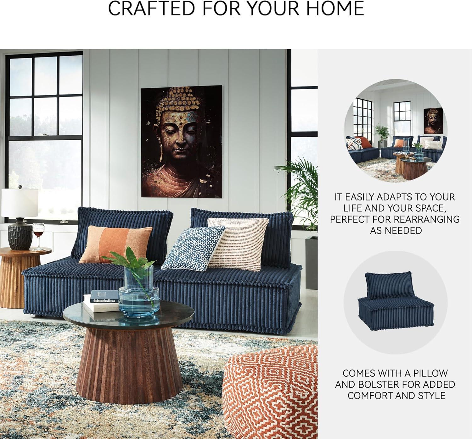Signature Design by Ashley Bales Casual Modular Upholstered Armless Accent Chair with Non-Slip Decking and Feet, Blue(Blue)