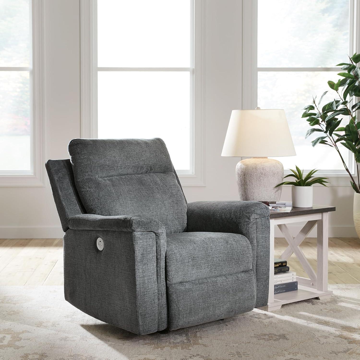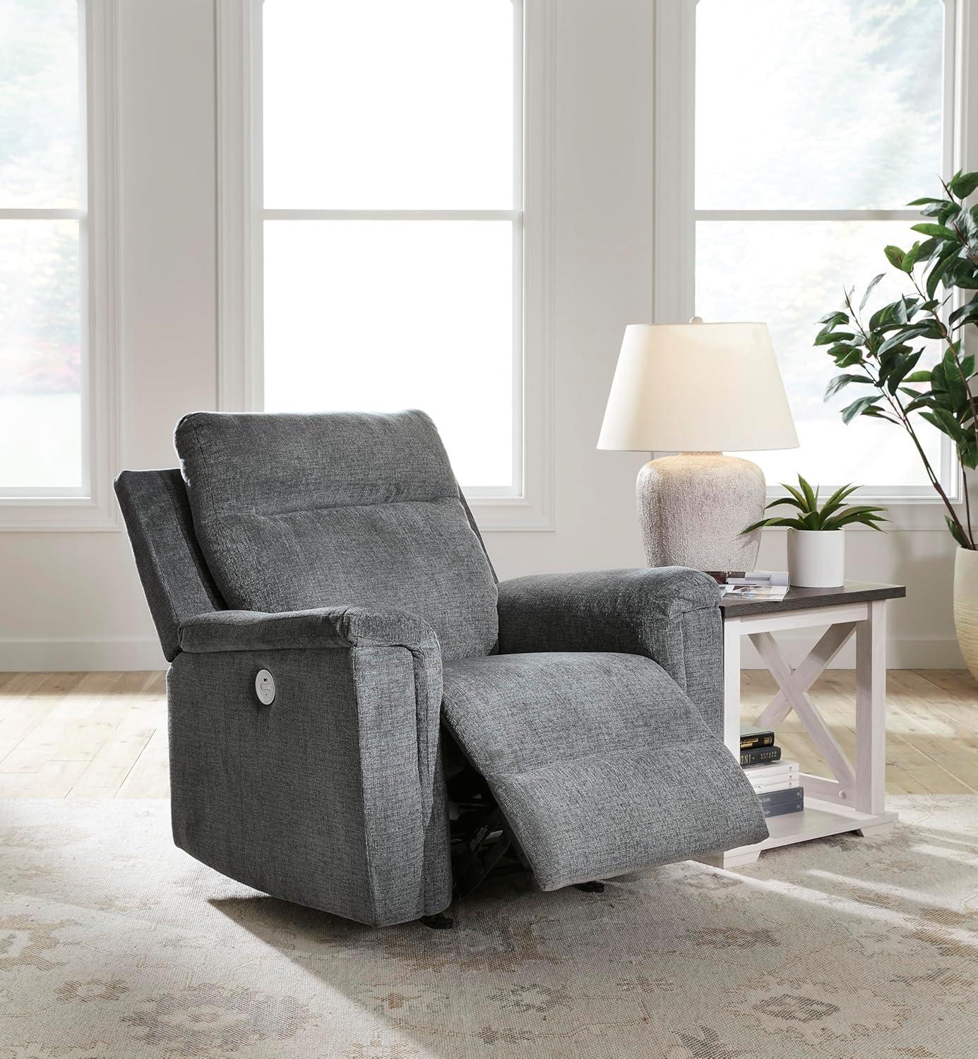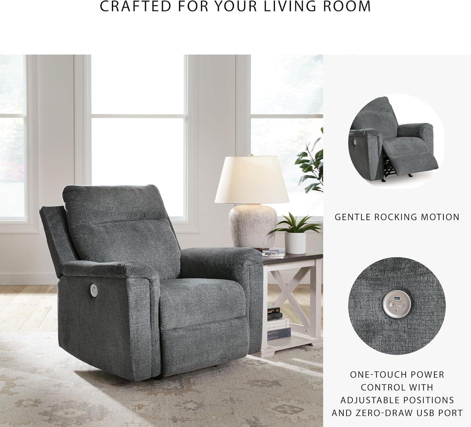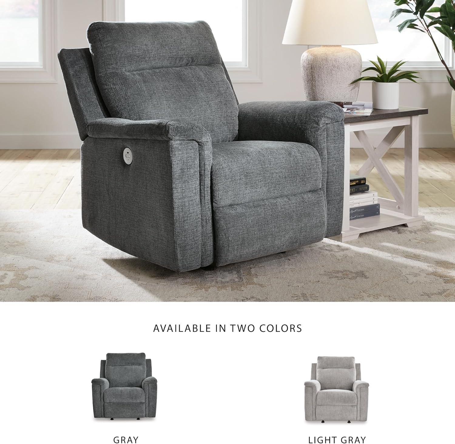 Signature Design by Ashley Barnsana Casual Power Recliner with Rocking Motion and USB Port, Light Gray(Grey)