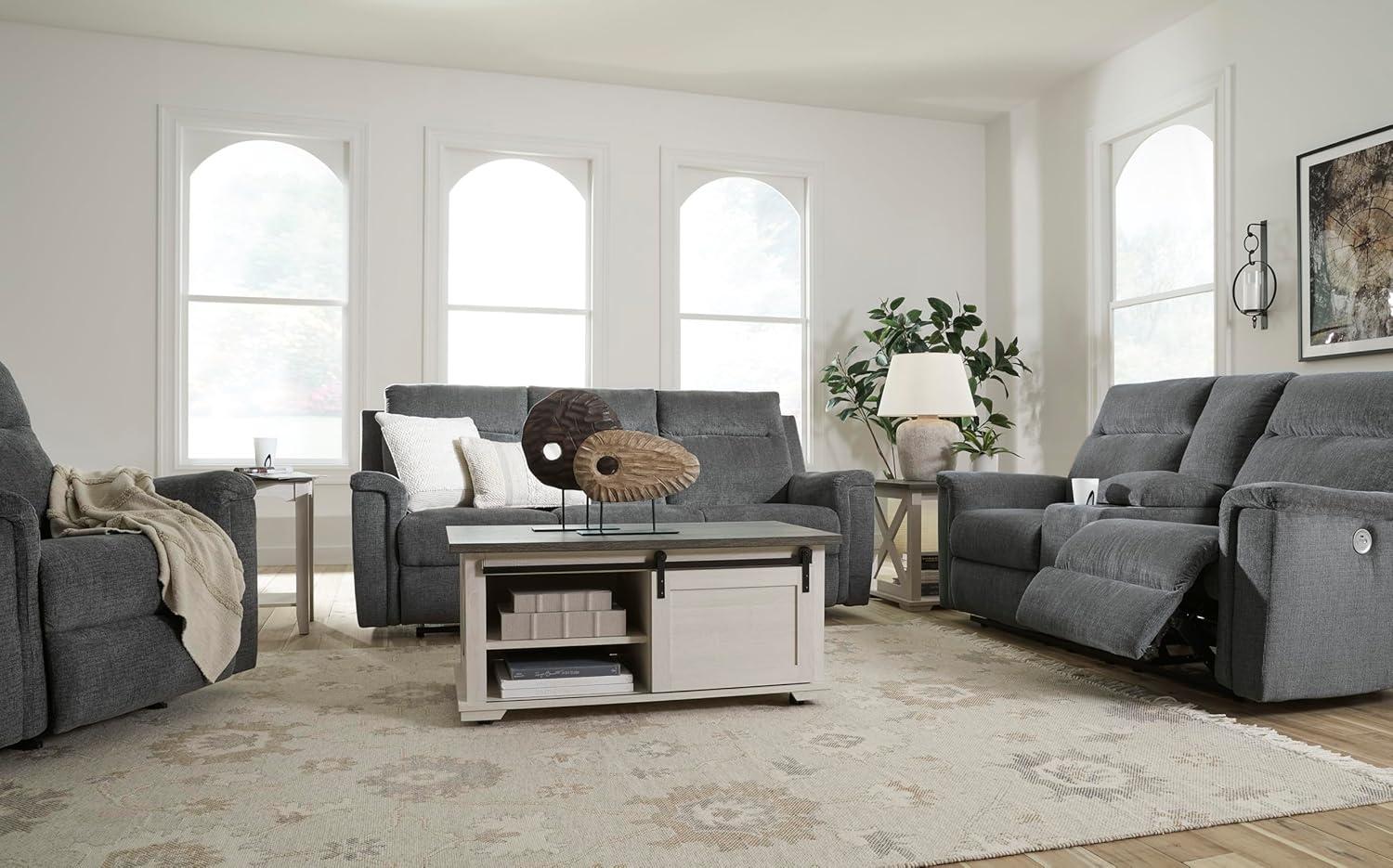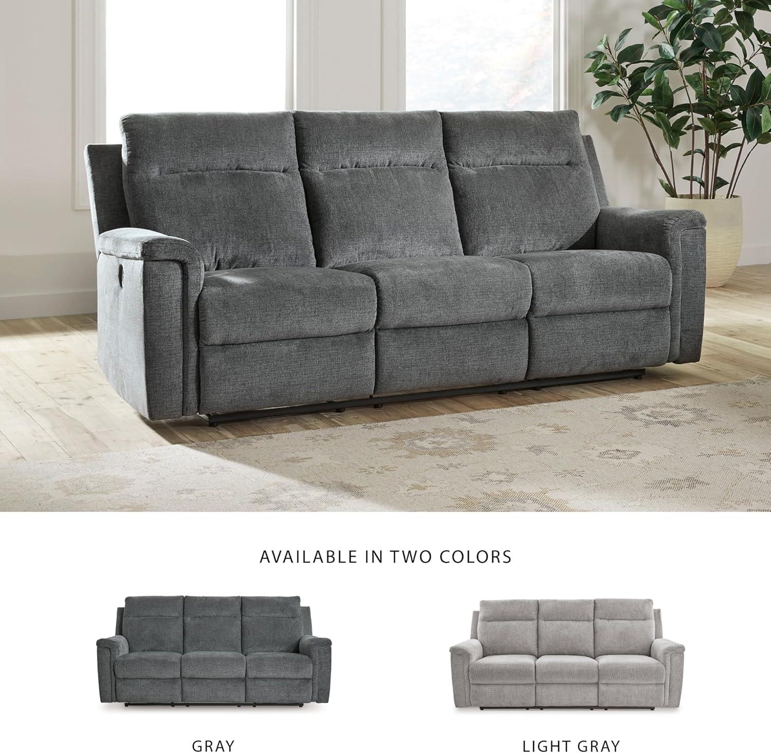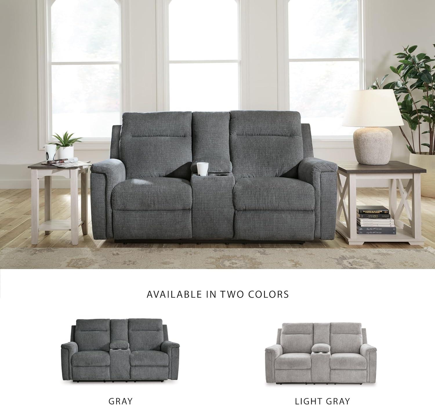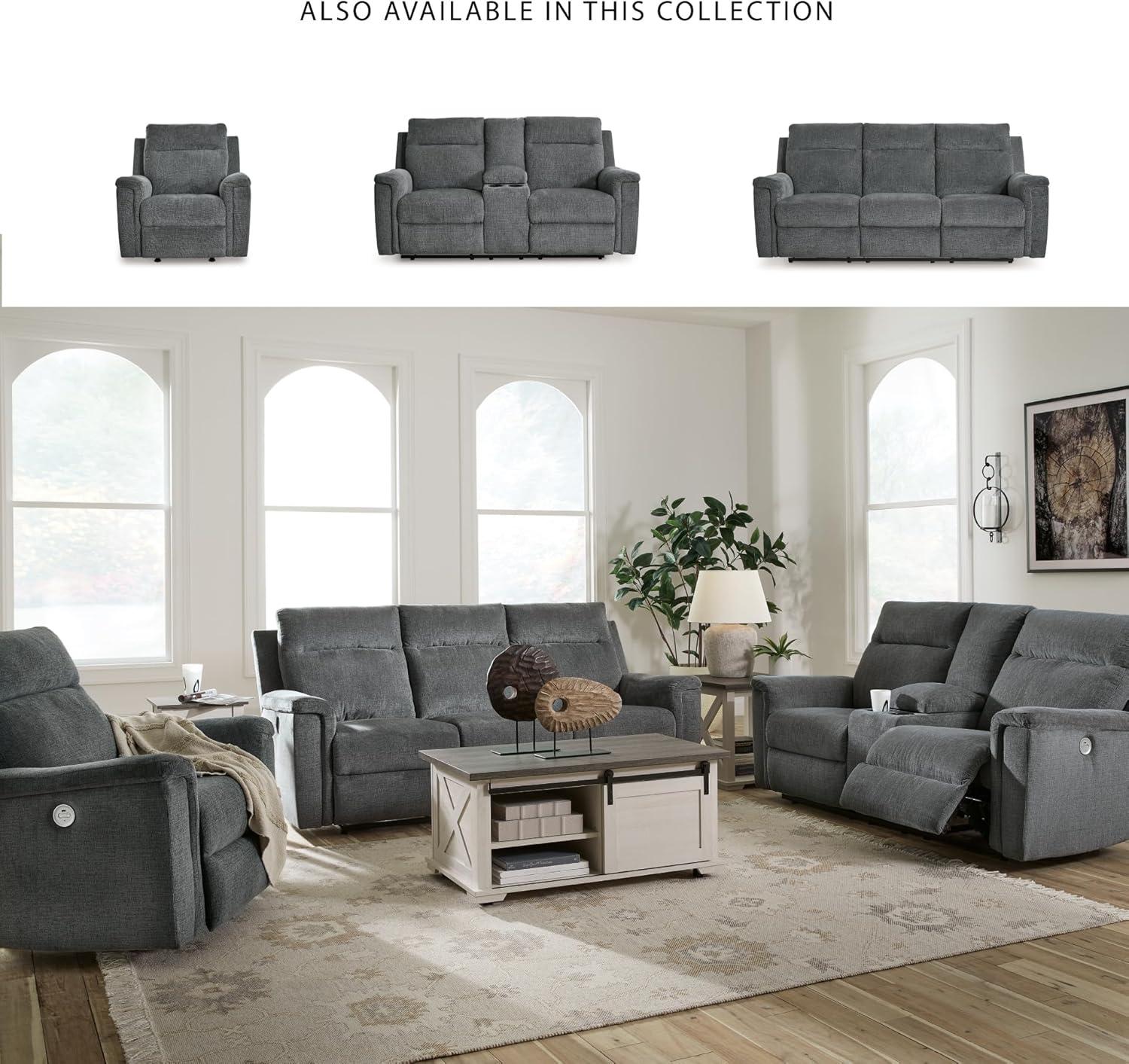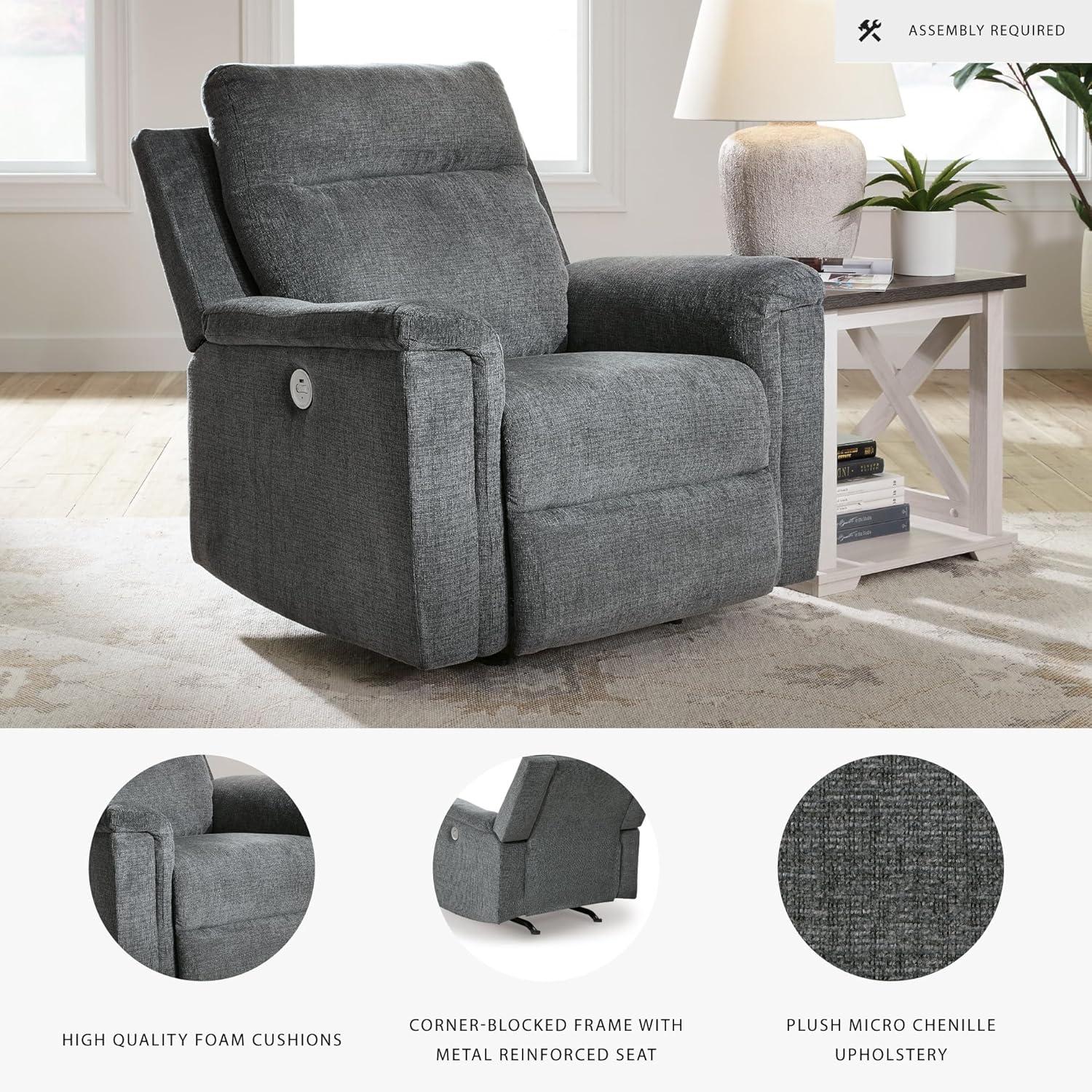 Signature Design by Ashley Barnsana Casual Power Recliner with Rocking Motion and USB Port, Light Gray(Grey)