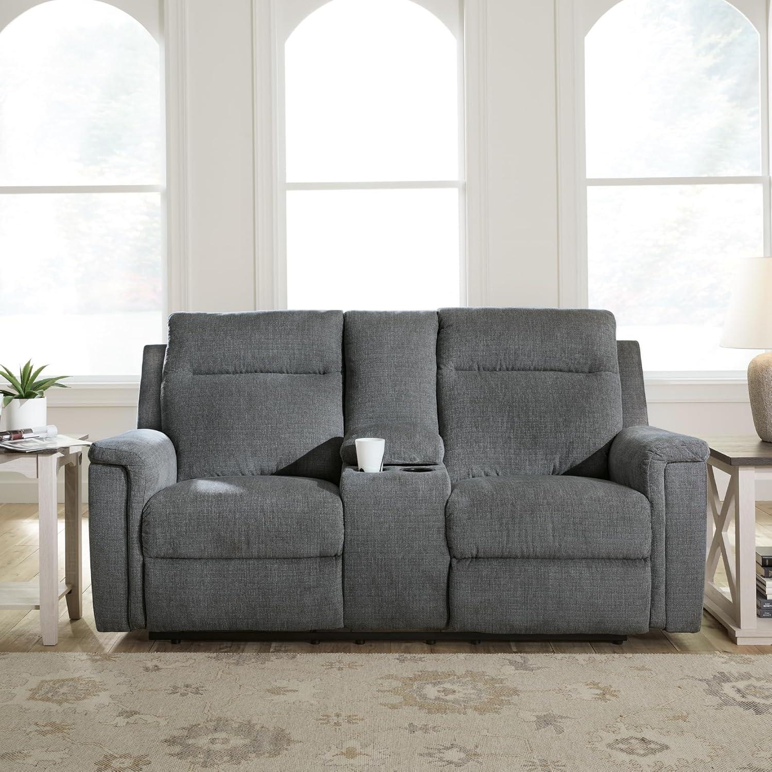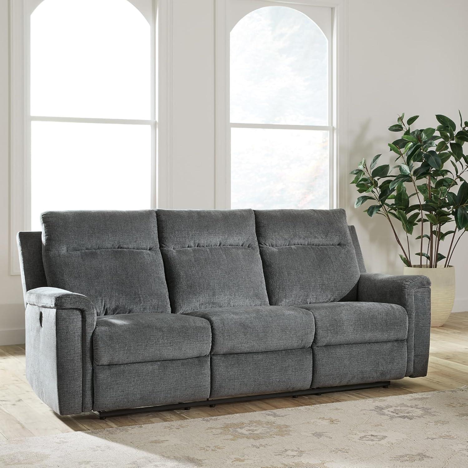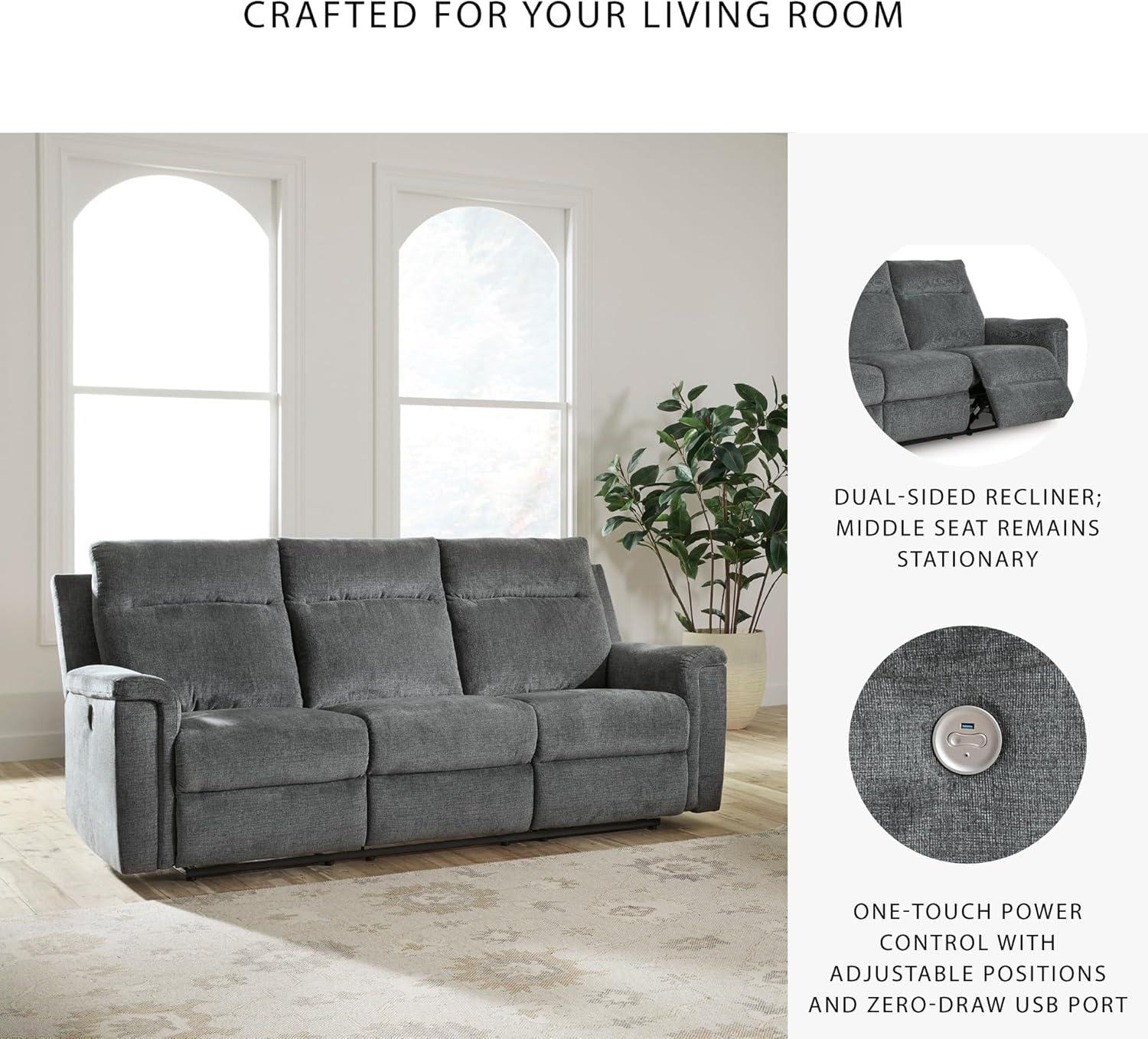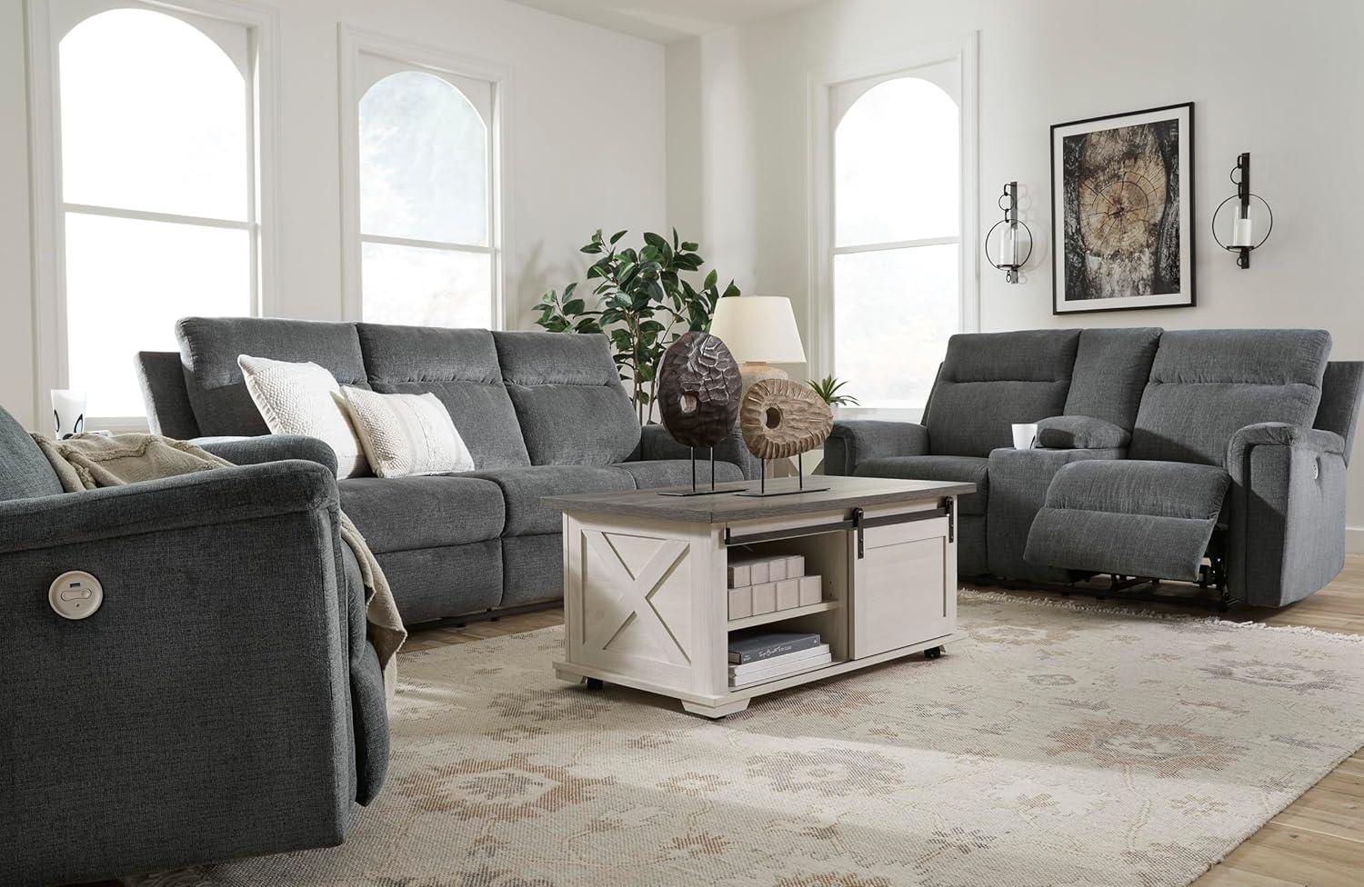 Signature Design by Ashley Barnsana Casual Power Recliner with Rocking Motion and USB Port, Light Gray(Grey)