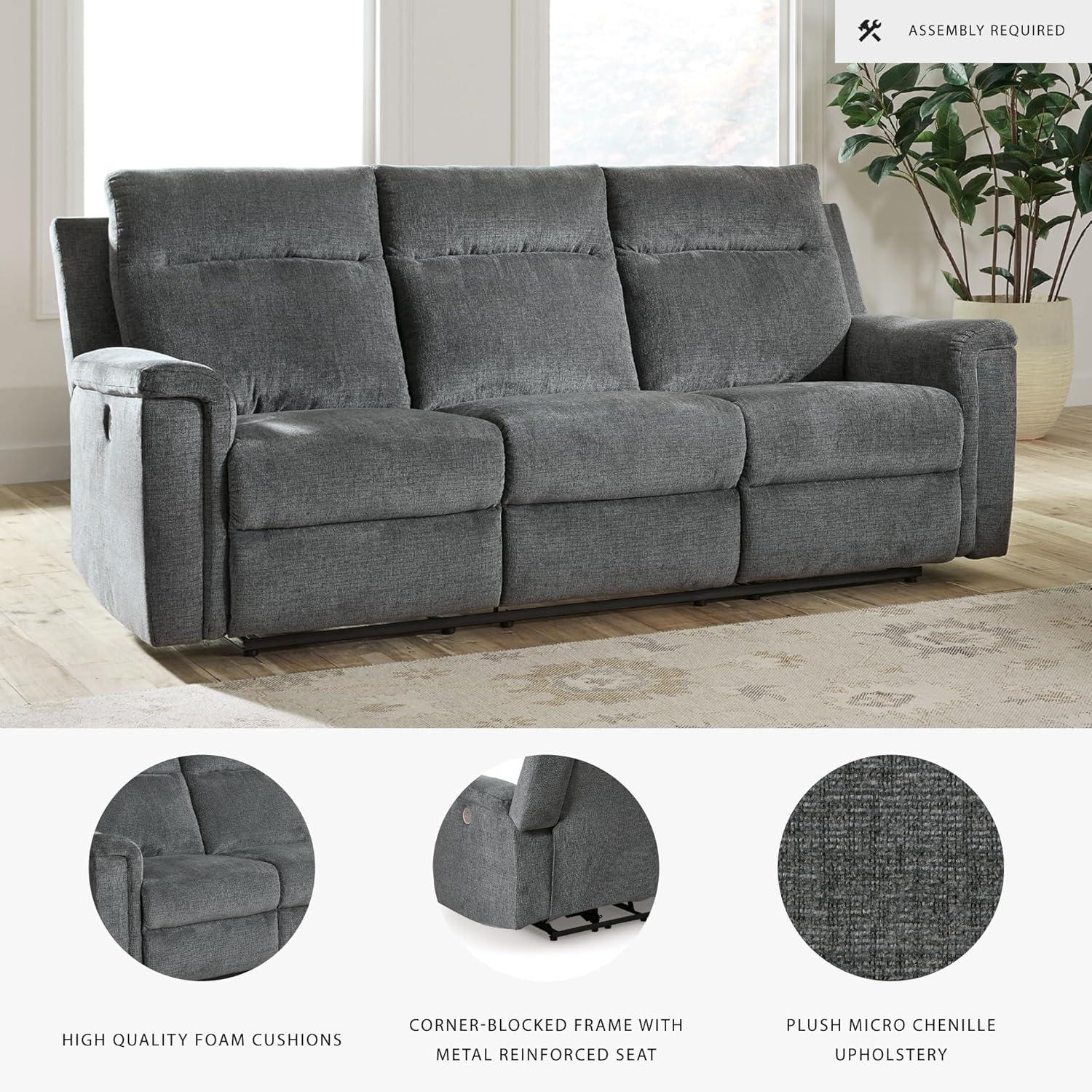 COMFORTABLE STYLE: Corner-blocked frame. Metal reinforced seat. Attached cushions with high-quality foam. Gray polyester micro chenille upholstery
