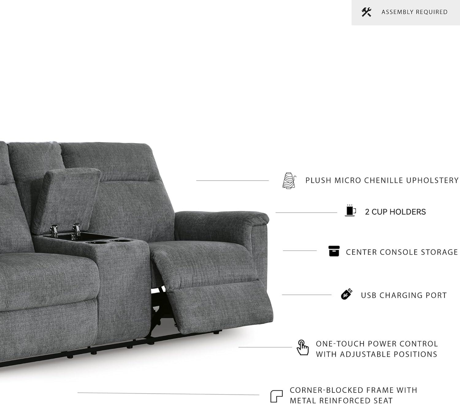 POWER ROCKER RECLINER: Go from fully upright to relaxed and stretched out, all at the touch of a button. This comfy seating invites you to sink into ultimate comfort