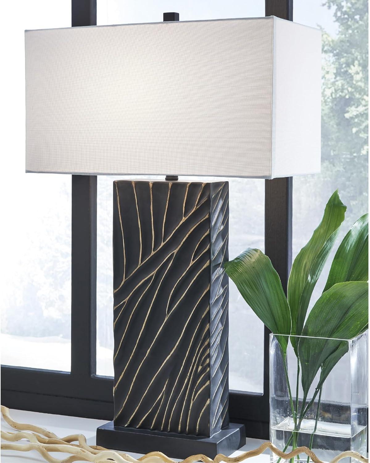 Signature Design by Ashley Bartlen Modern Polyresin Table Lamp with 3-Way Switch, Black & Metallic