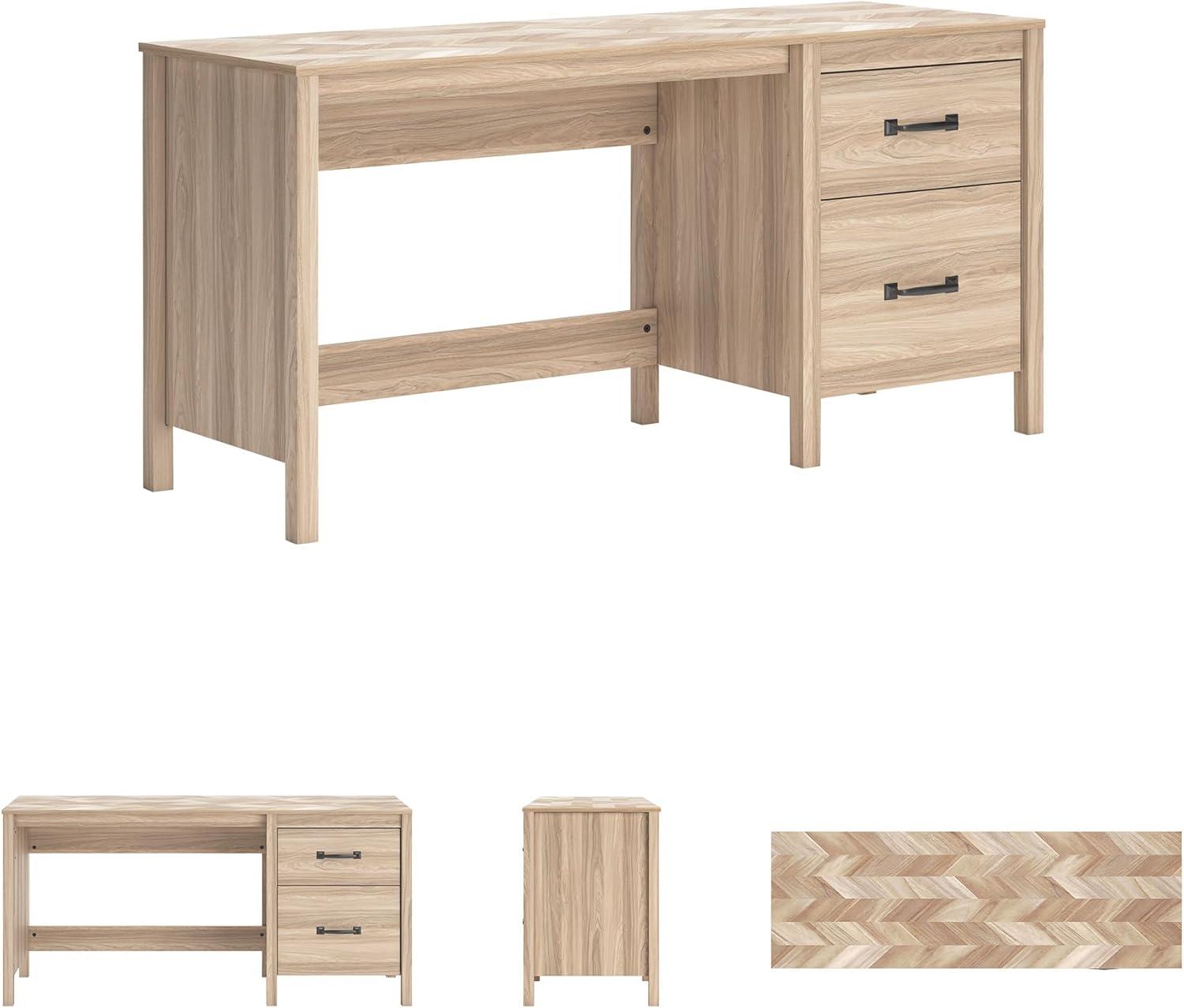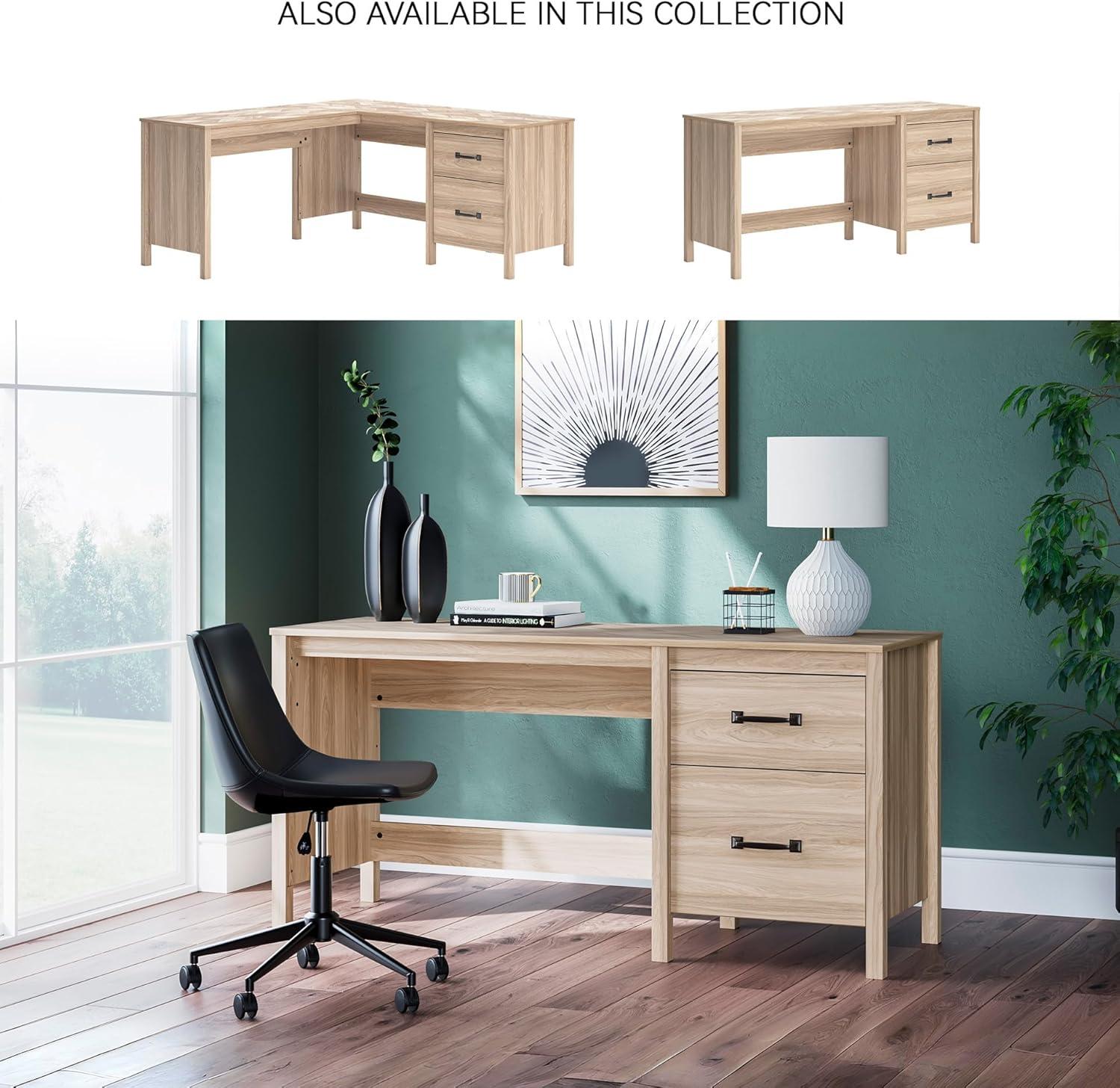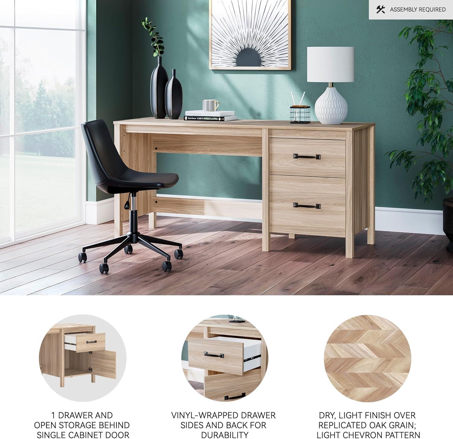 Signature Design by Ashley Battelle Casual 60″ Home Office Desk with 1 Drawer and Cabinet Door, Light Brown