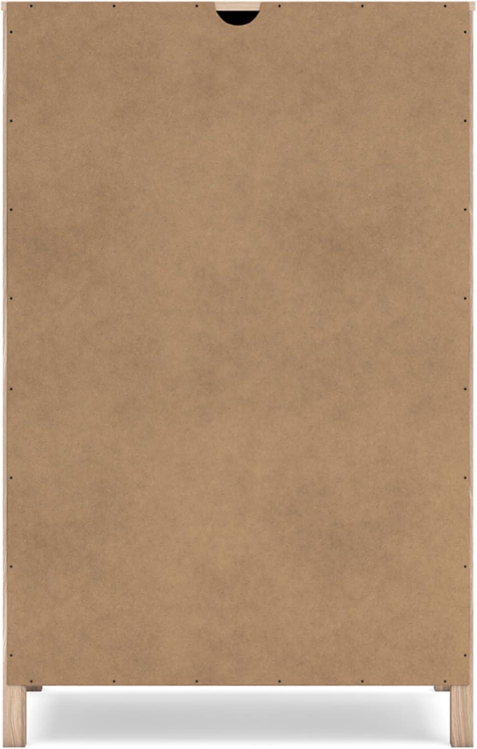 Transform your bedroom into an instant sanctuary. Pairing the look of oak grain with a unique chevron pattern, this chest of drawers introduces a touch of mid-century modern style that's sure to elevate your space. Catering to your busy lifestyle, this chest is ready to assemble in the comfort of your home. Signature Design by Ashley is a registered trademark of Ashley Furniture Industries, Inc.
