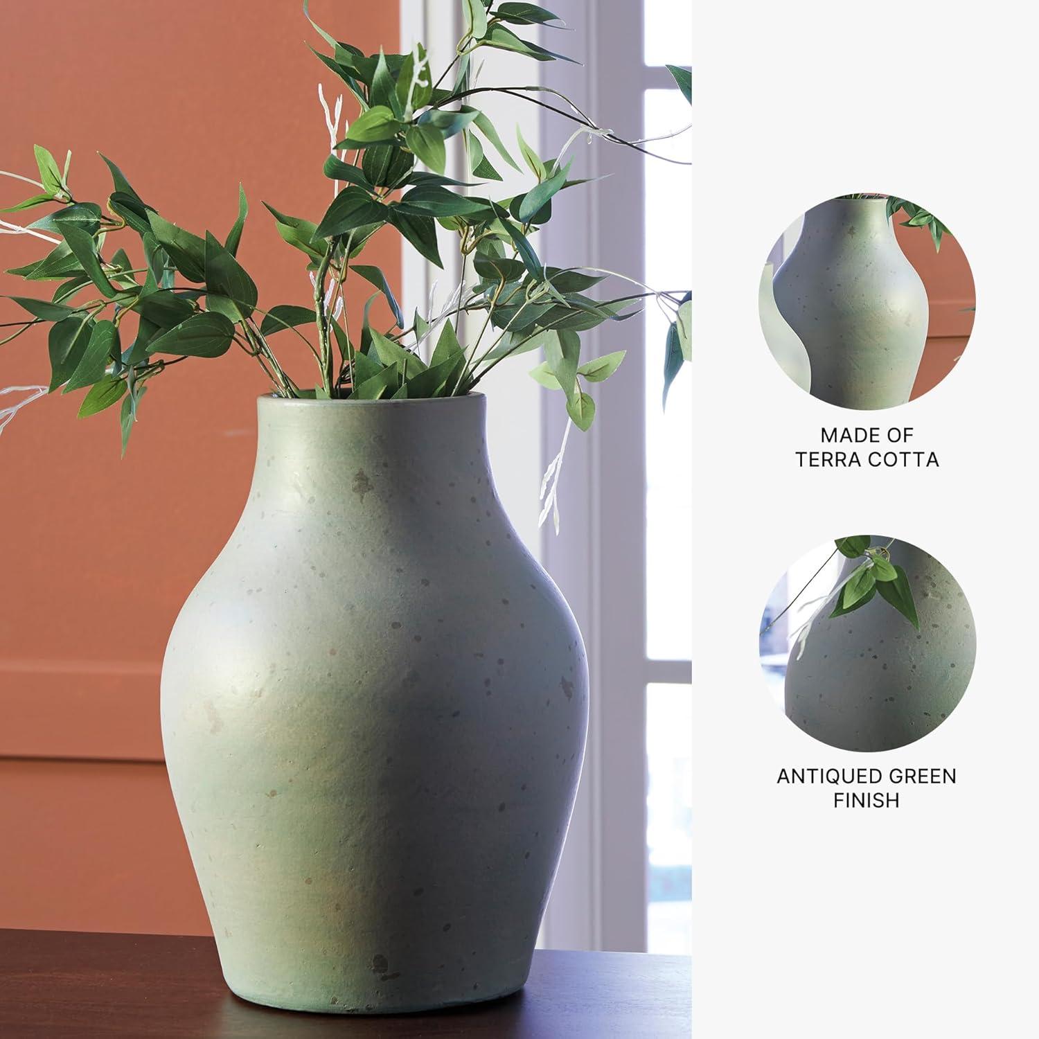Signature Design by Ashley Baychester Casual Distressed Terra Cotta 13” Vase, Light Green(Light Green)