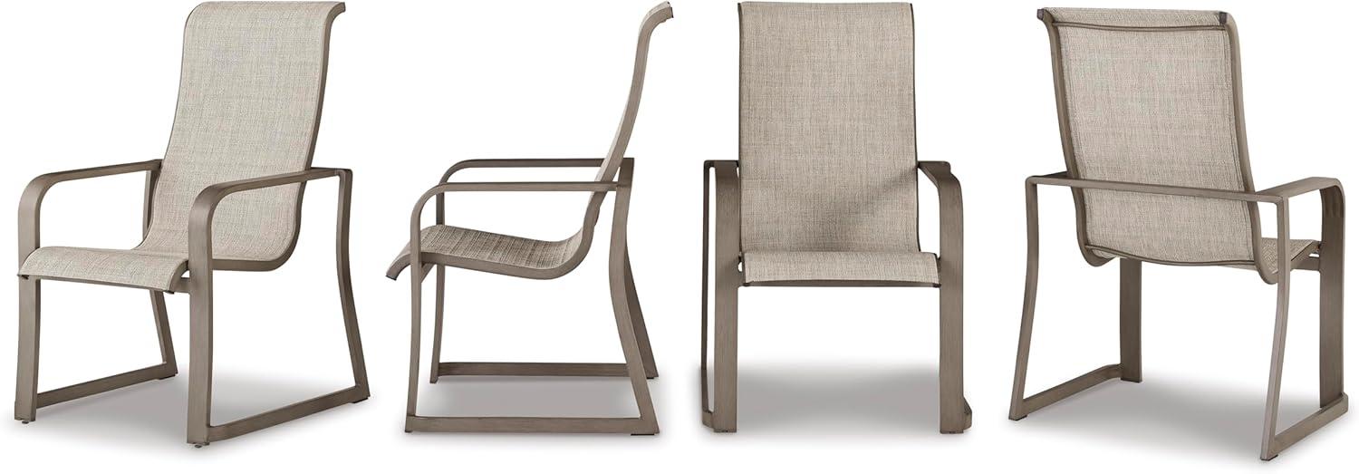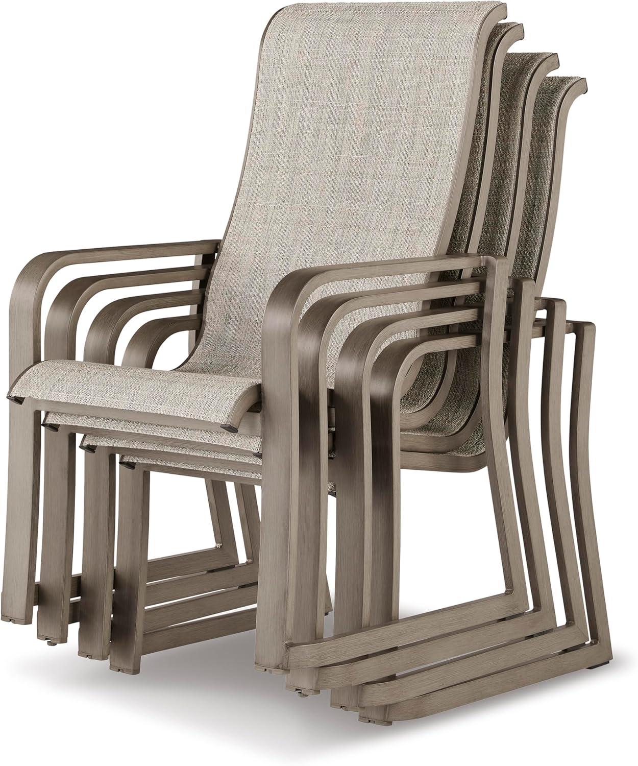 Signature Design by Ashley Beach Front Casual Outdoor Stackable Faux Leather Sling Arm Chair, Set of 4, Light Brown