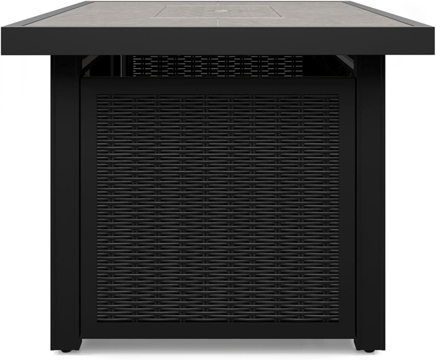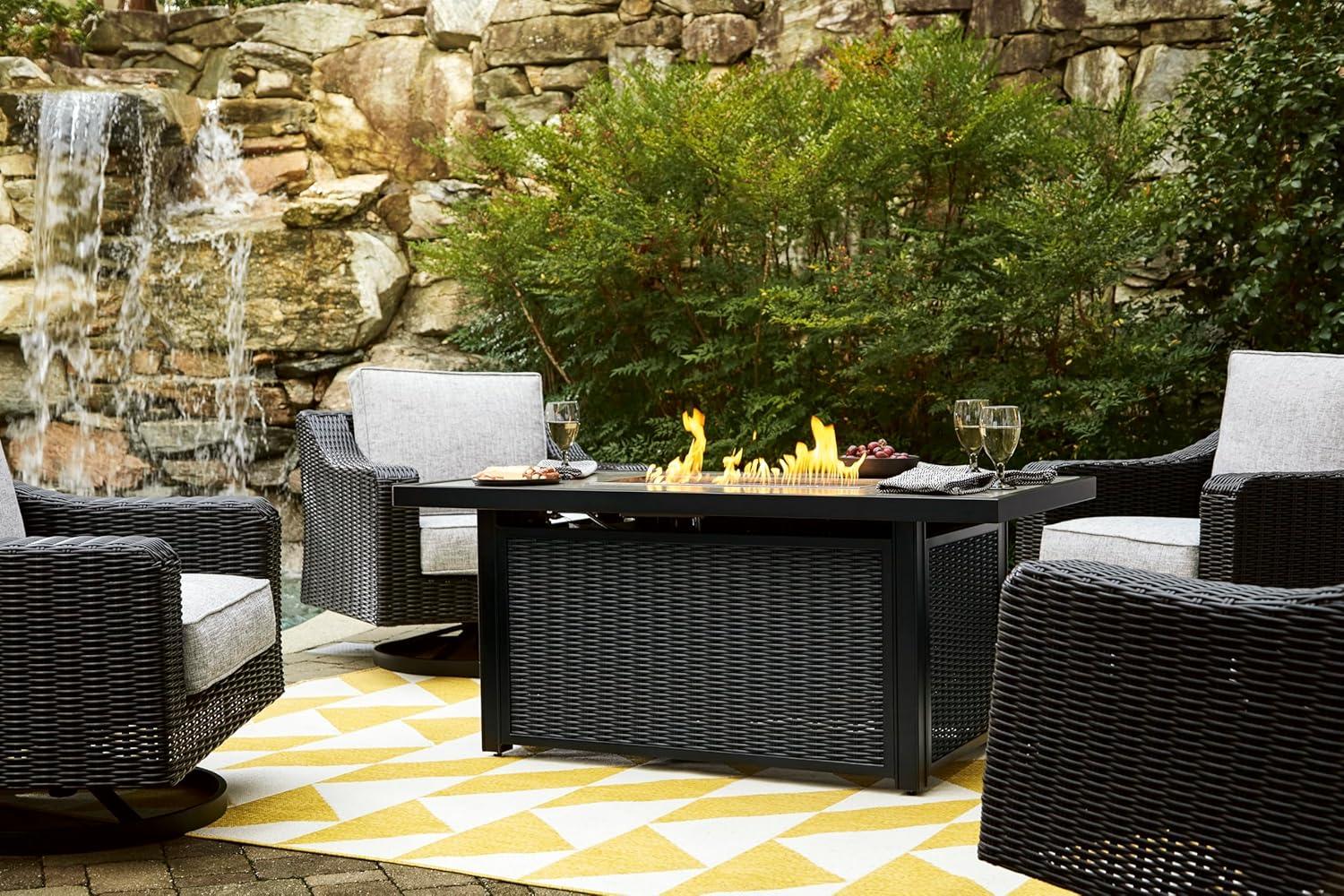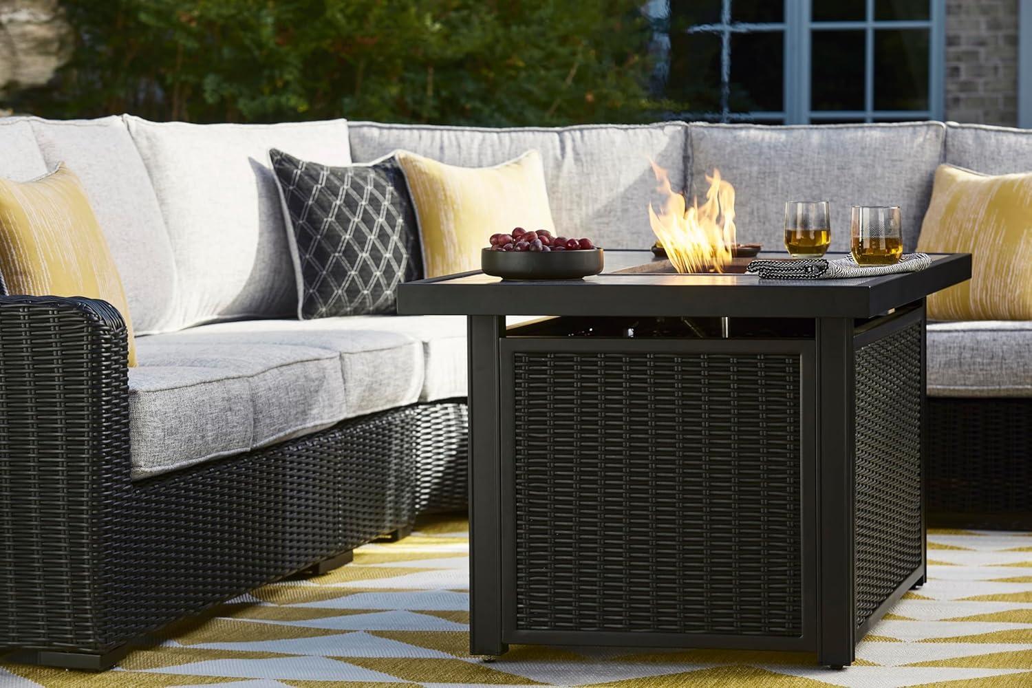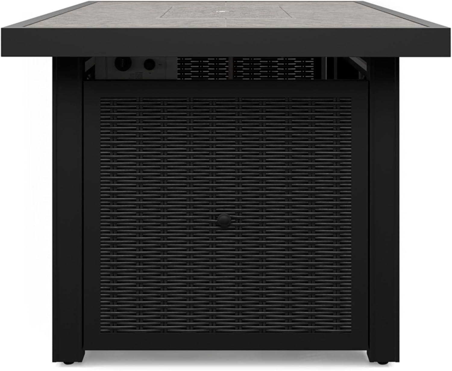 Signature Design by Ashley Beachcroft Casual Weather and Rust Resistant Battery-Operated Outdoor Fire Pit Table with Adjustable Flame Control and Protective Cover, Black & Light Gray(Black)