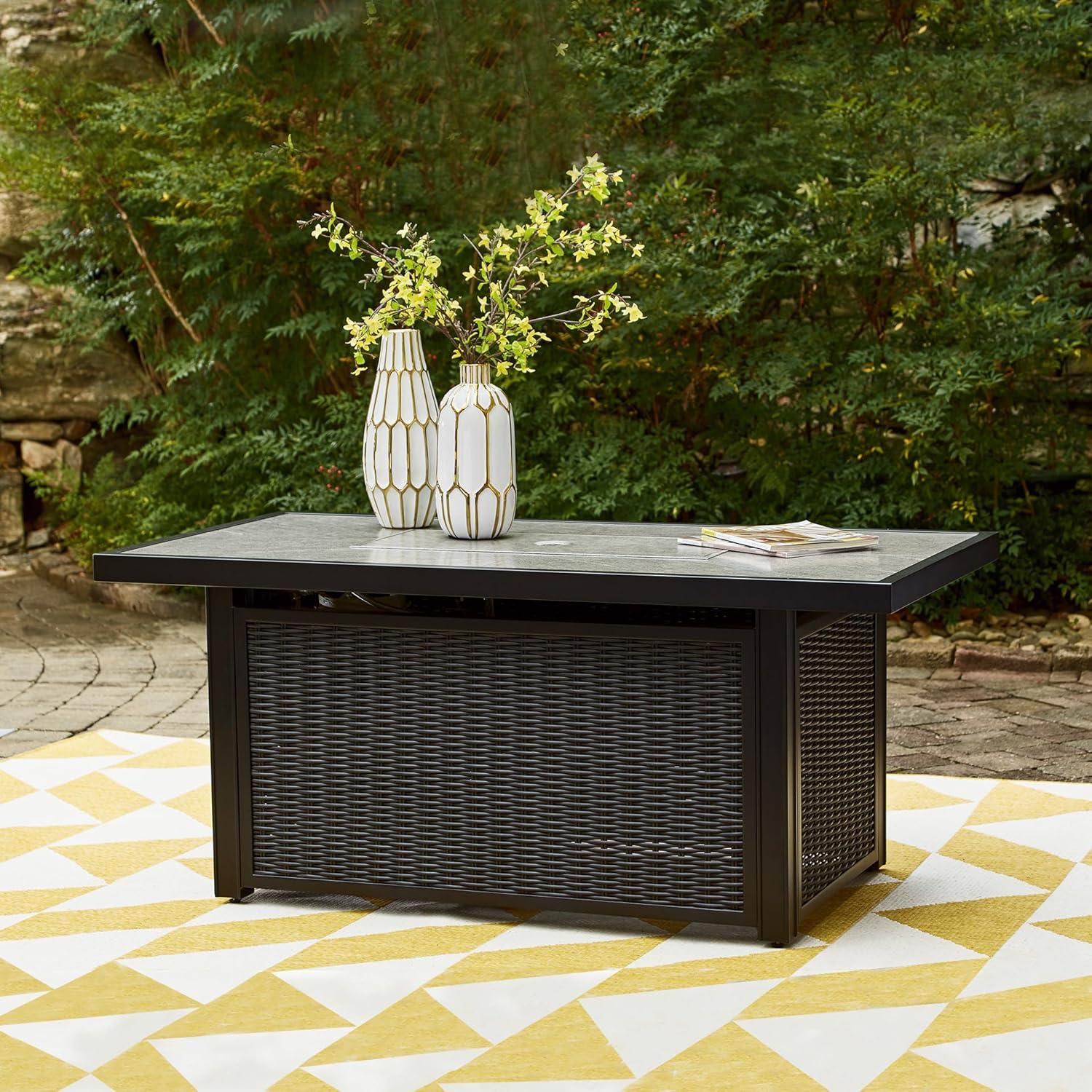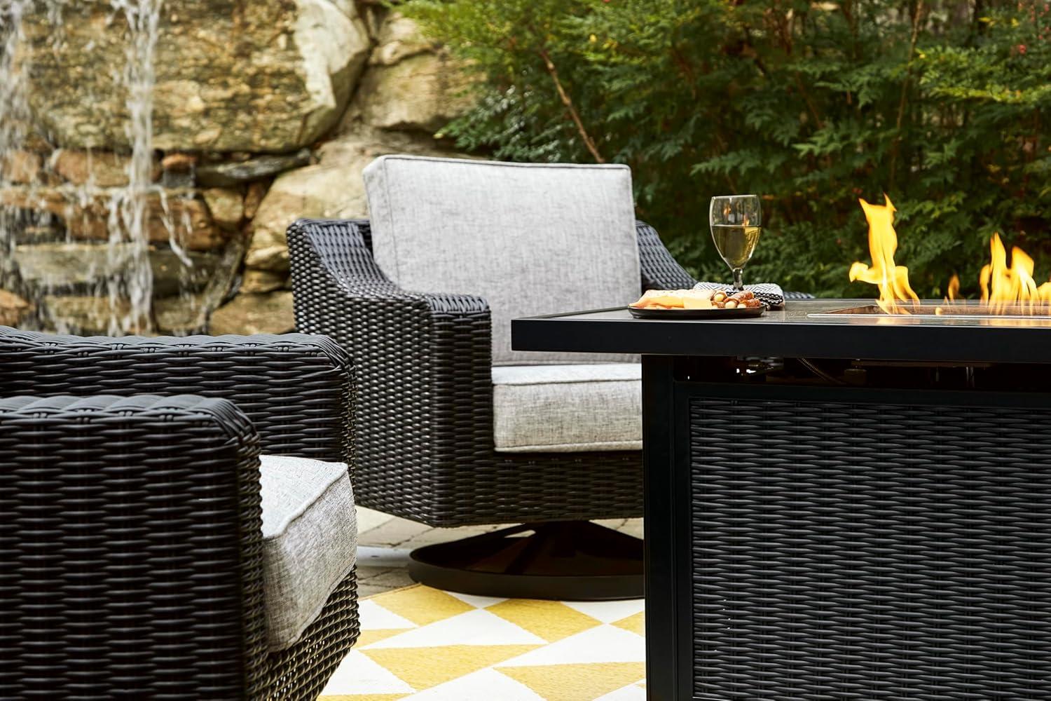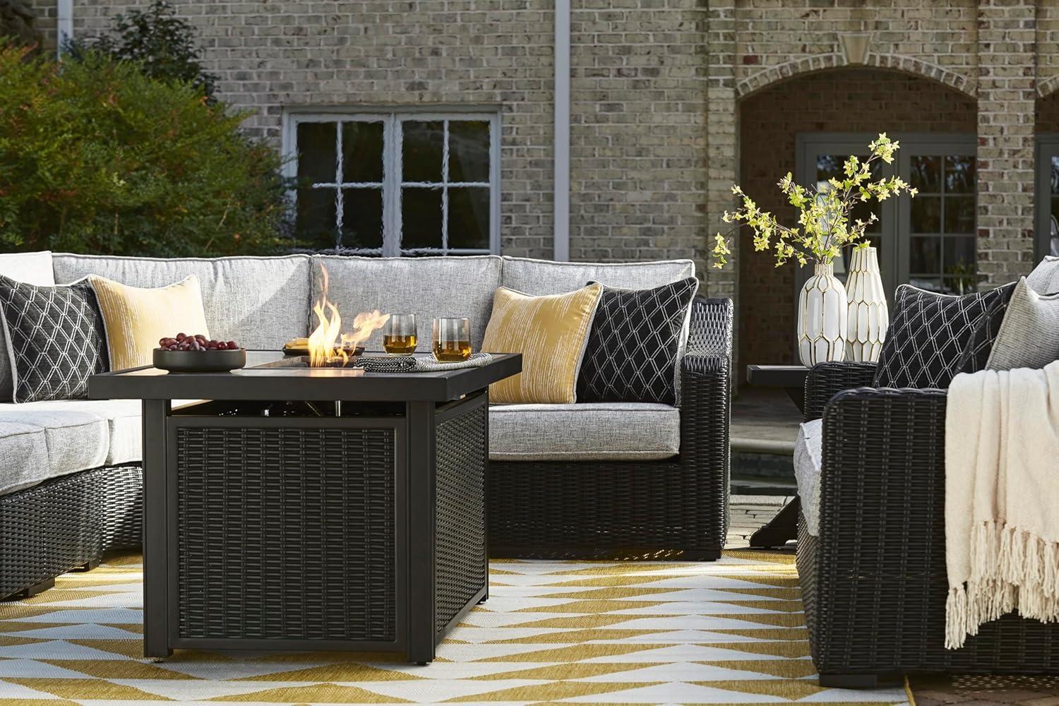 Signature Design by Ashley Beachcroft Casual Weather and Rust Resistant Battery-Operated Outdoor Fire Pit Table with Adjustable Flame Control and Protective Cover, Black & Light Gray(Black)