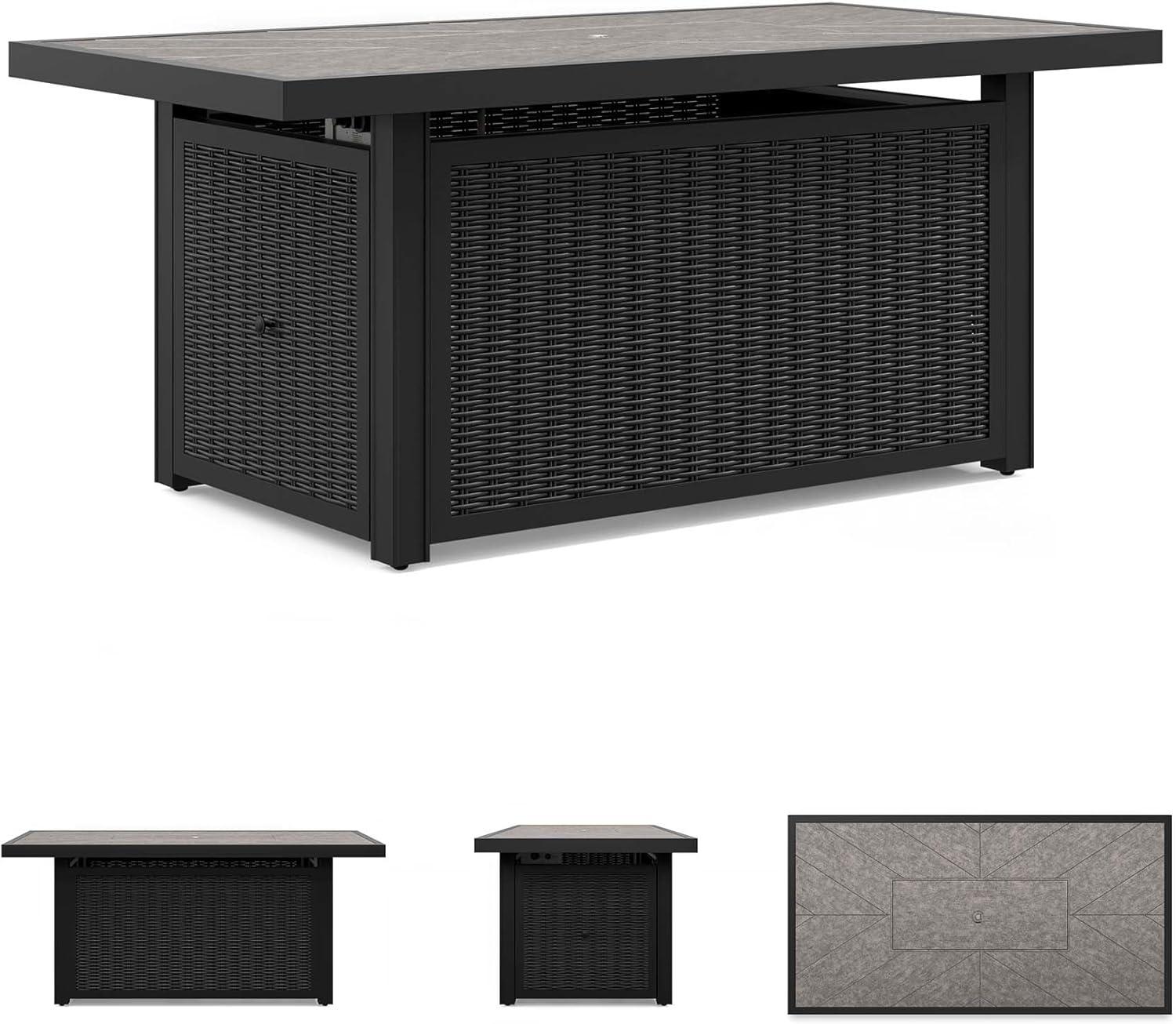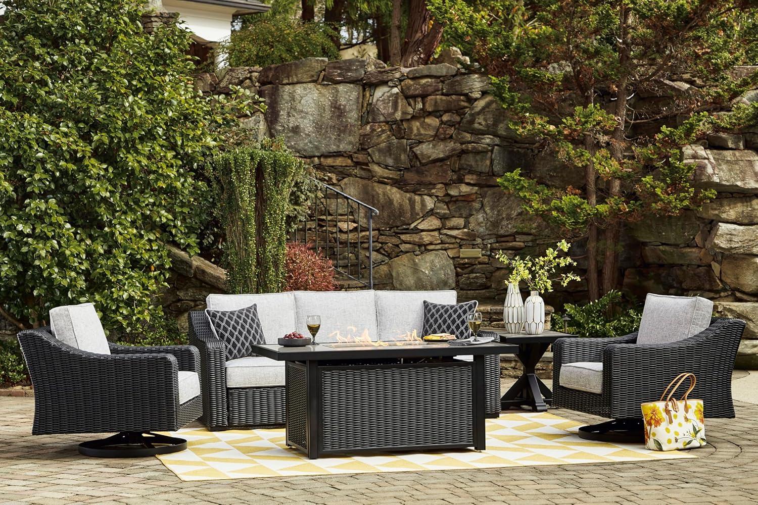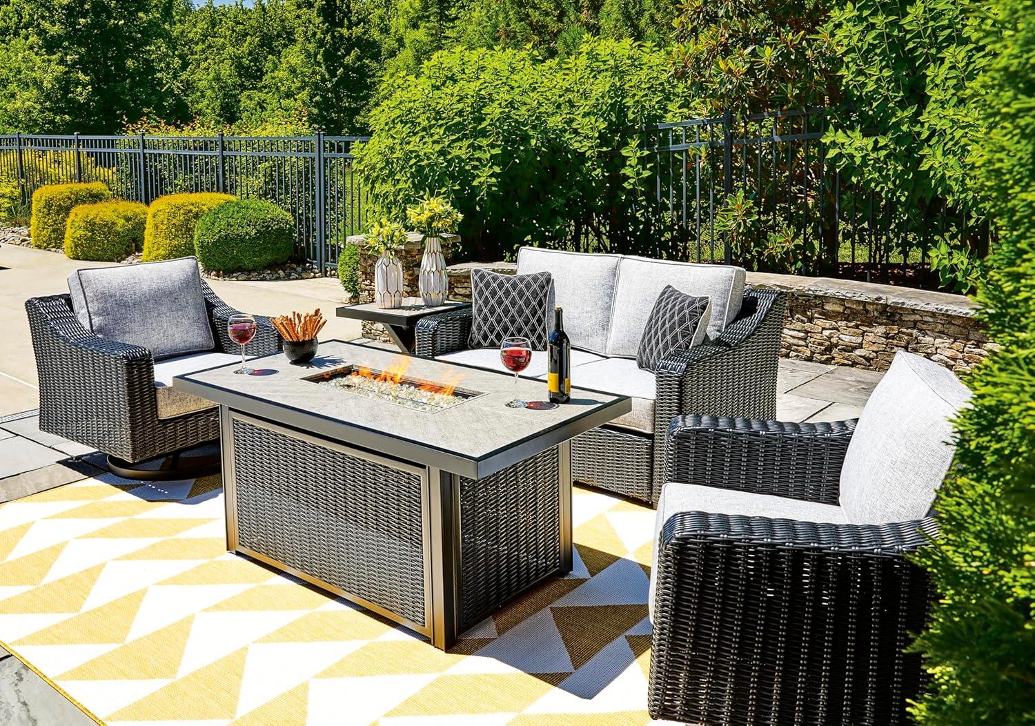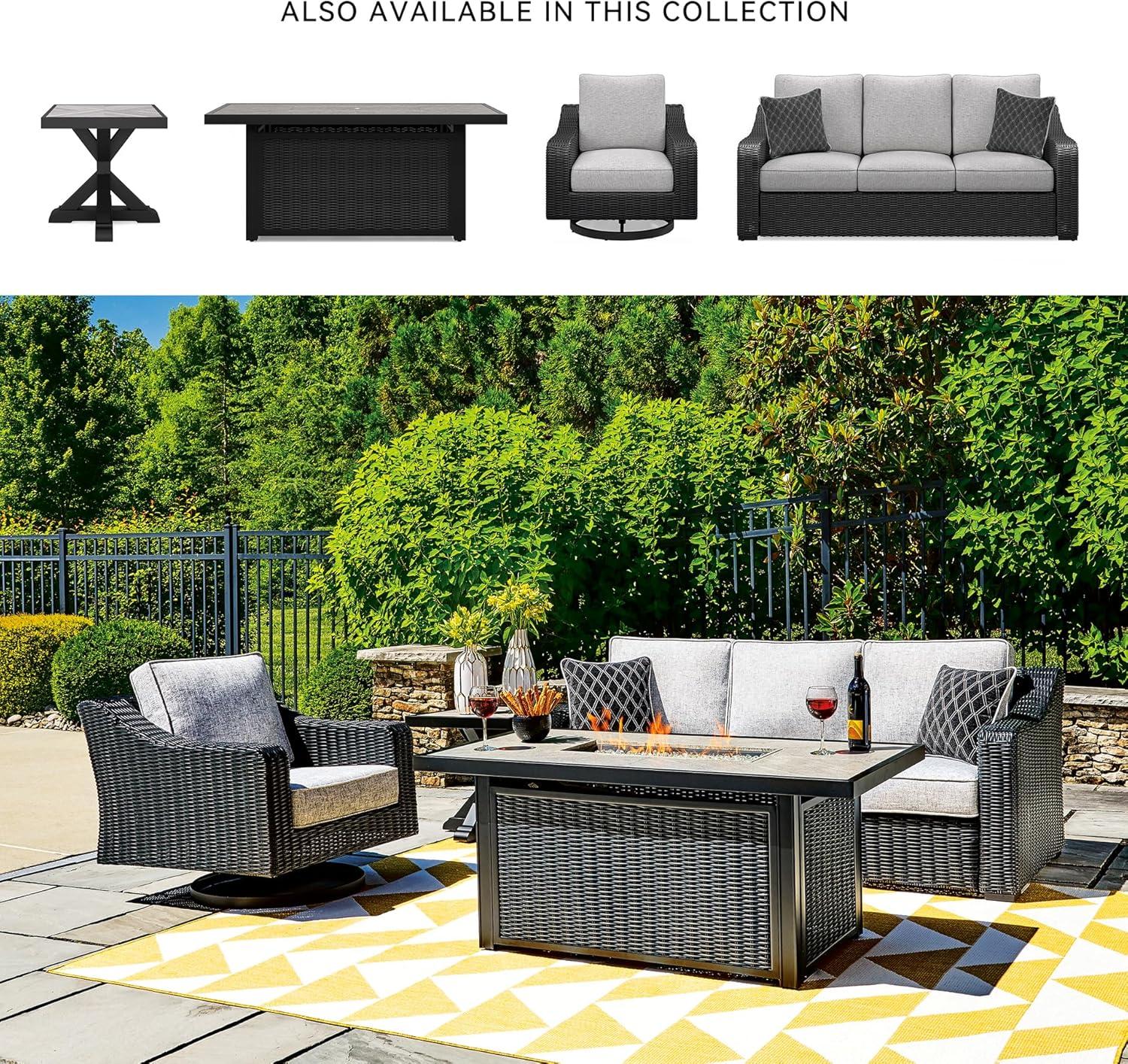 Signature Design by Ashley Beachcroft Casual Weather and Rust Resistant Battery-Operated Outdoor Fire Pit Table with Adjustable Flame Control and Protective Cover, Black & Light Gray(Black)