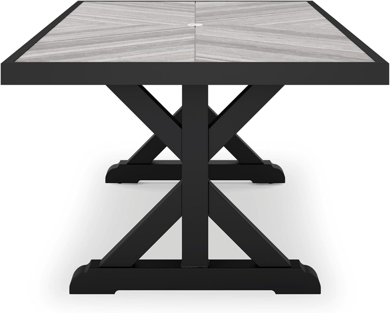 Signature Design by Ashley Beachcroft Farmhouse Weather and Rust Resistant Outdoor Dining Table with Porcelain Tabletop and Umbrella Hole, Black & Light Gray(Black)
