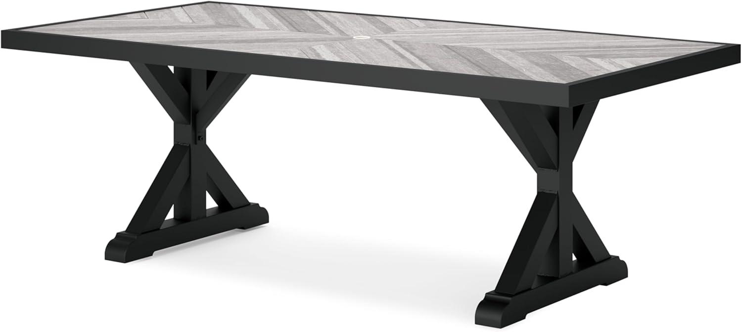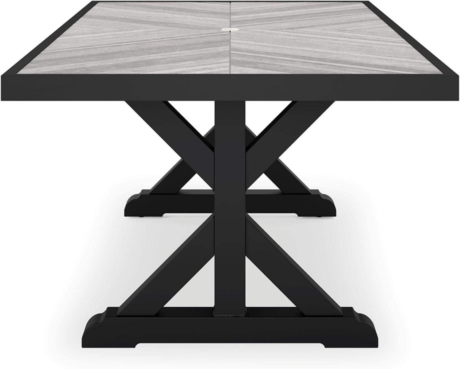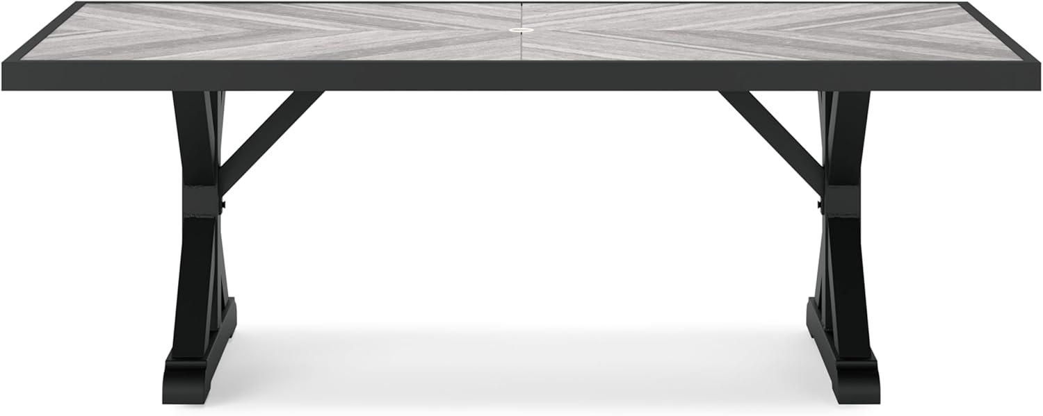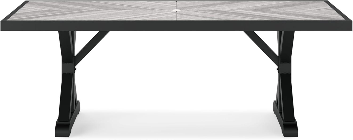 Signature Design by Ashley Beachcroft Modern Farmhouse Outdoor Rectangular Dining Table with Porcelain Table Top, Seats 6 to 8, Umbrella Hole with Cap, Beige(Black)