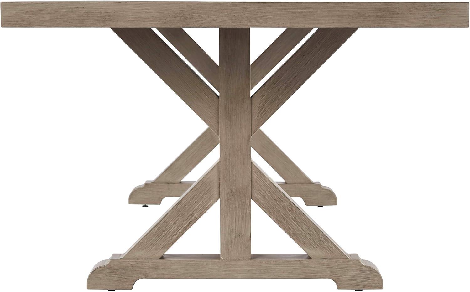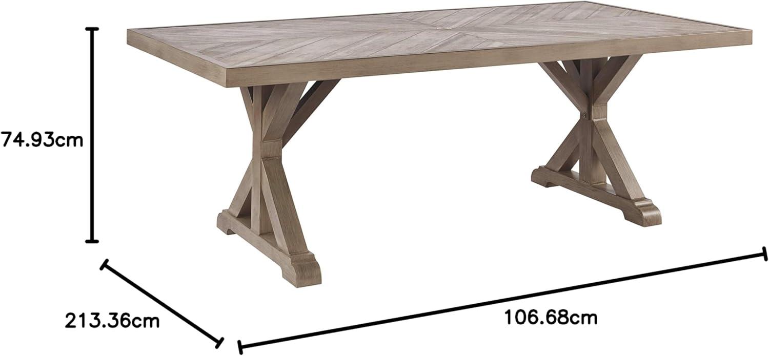 Signature Design by Ashley Beachcroft Modern Farmhouse Outdoor Rectangular Dining Table with Porcelain Table Top, Seats 6 to 8, Umbrella Hole with Cap, Beige(Natural)