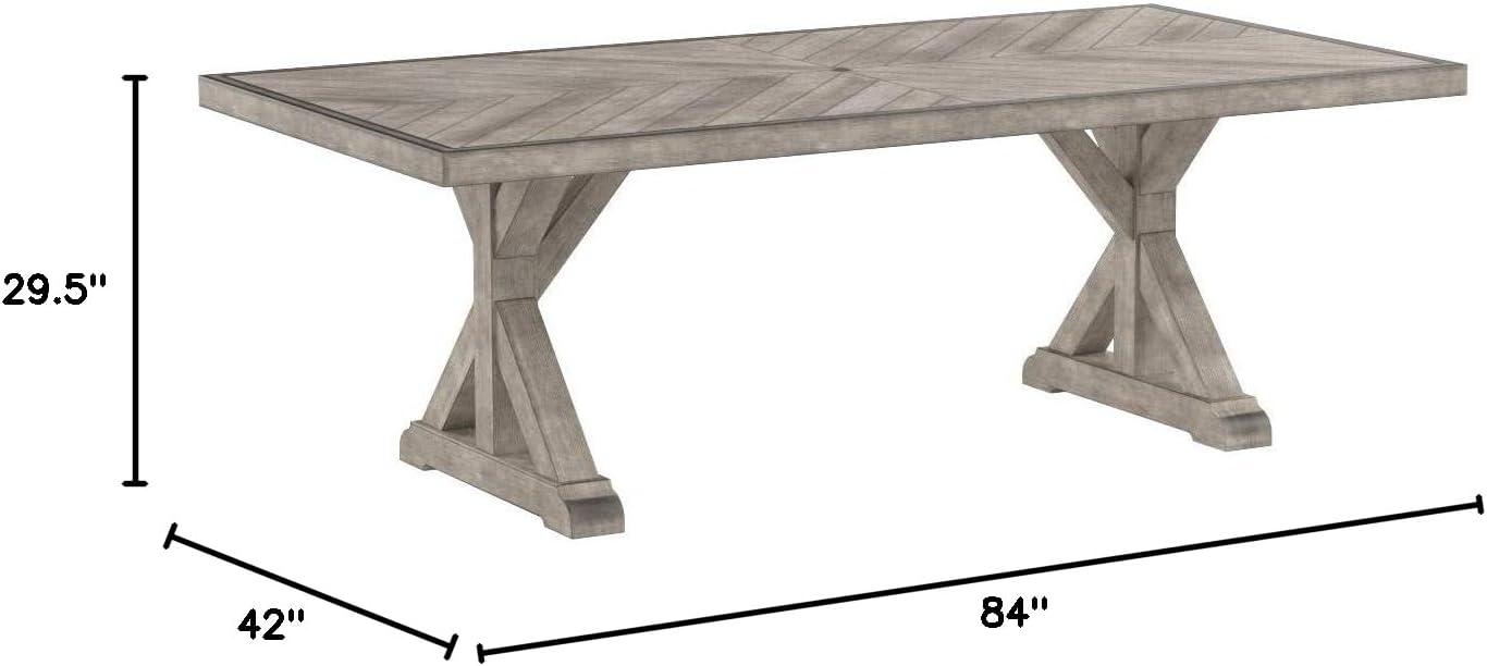 Sporting an easy-on-the-eyes look inspired by driftwood, this dining table elevates the art of indoor-outdoor living. Beautiful and durable enough for indoor and outdoor use, this high-style/low-maintenance table charms with X-leg farmhouse styling and wows with a thick porcelain table top that’s a natural complement. And with our outdoor furniture, you have all the ingredients needed for an engaging, fun-filled evening flavored with plenty of entertainment. For the very best in value, selection and price, we are your go-to destination for the finest in elegant al fresco living. And we go the extra mile to package, protect and deliver your purchase in a timely manner.
