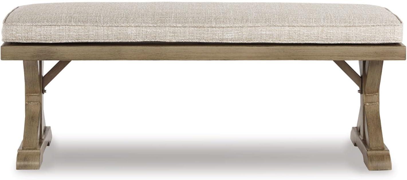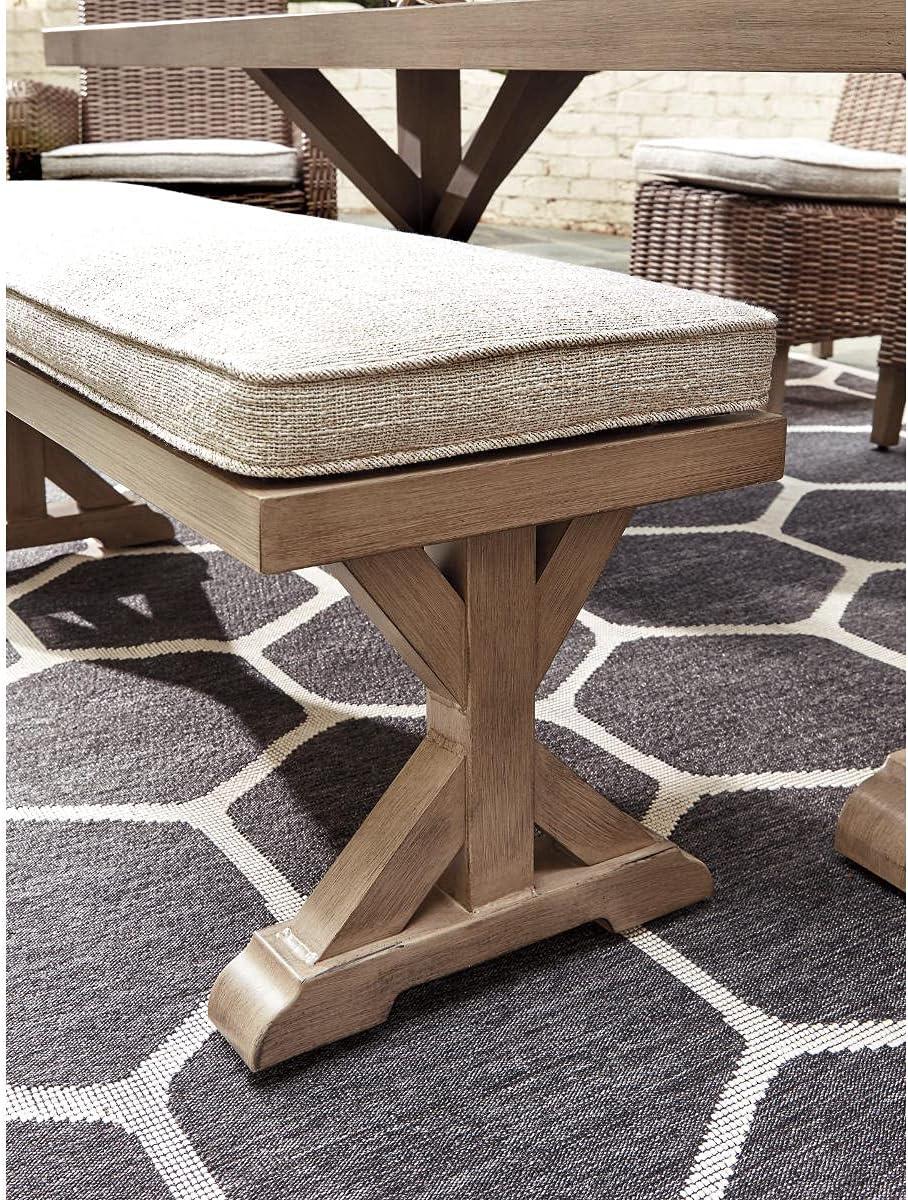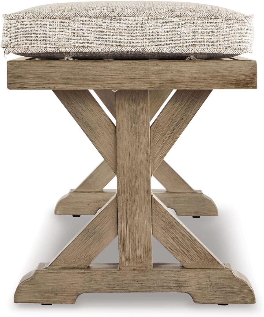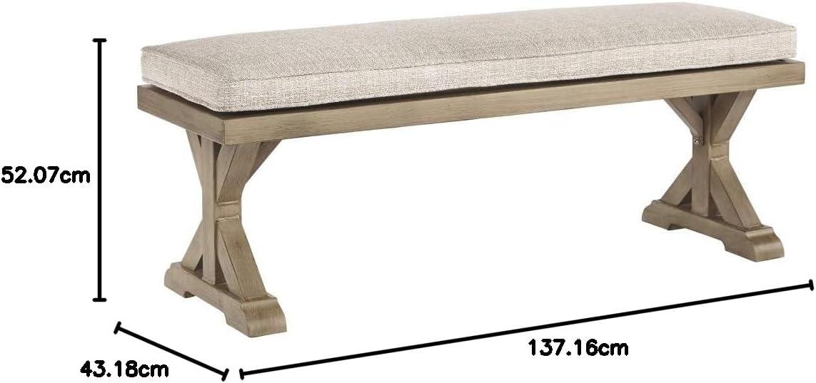 Signature Design by Ashley Beachcroft Patio Farmhouse Outdoor Upholstered Dining Bench,Nuvella Weather Resistant Fabric, Beige(Natural)