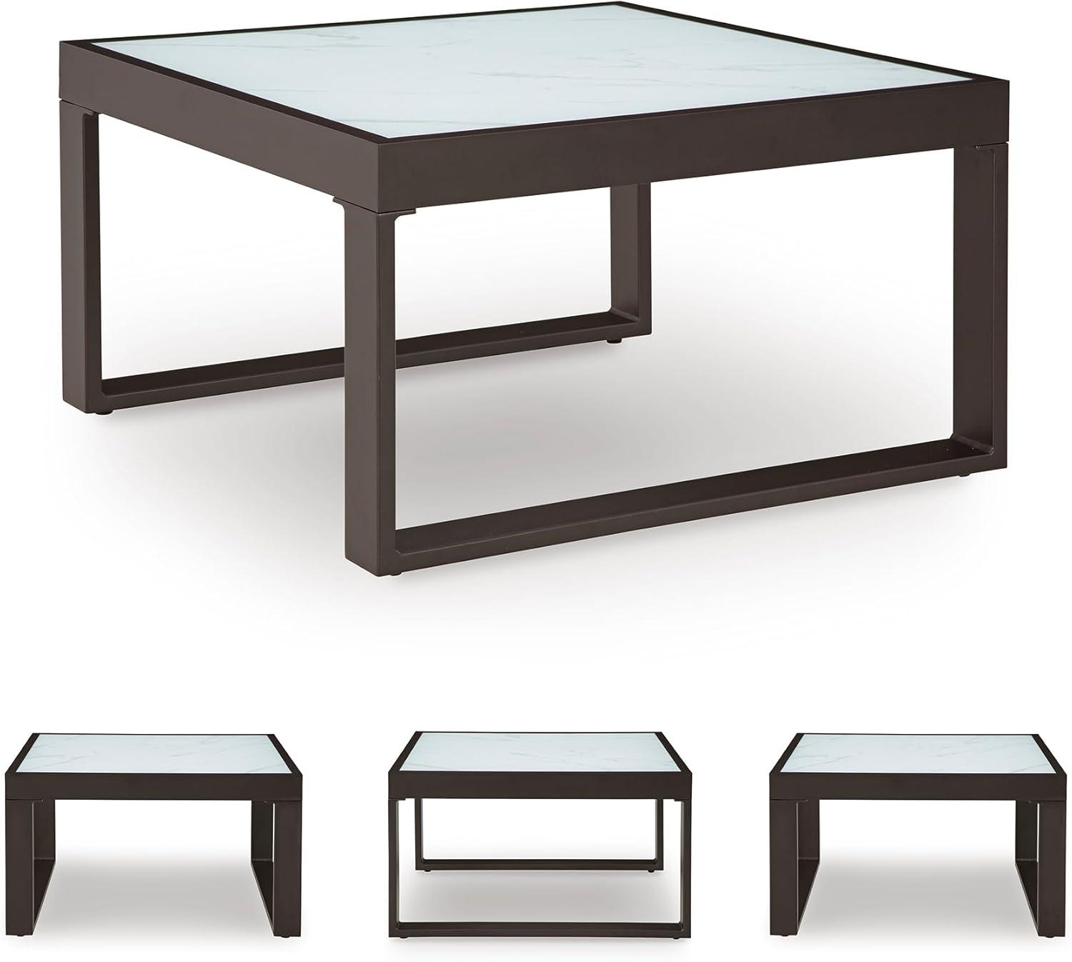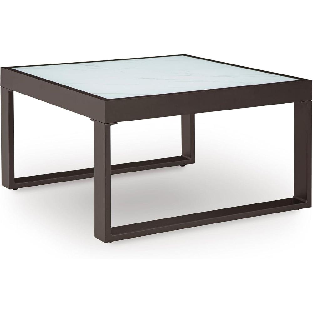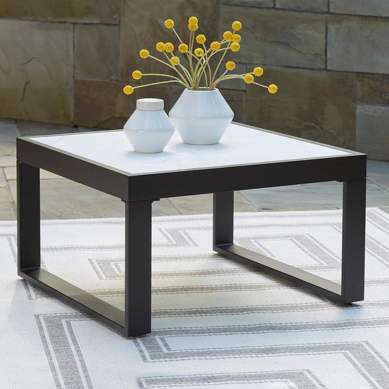 Signature Design by Ashley Beachloft Symmetrical Casual 5-Piece Outdoor Sectional with Cushion and 5 Throw Pillows, Light Gray(Coffee Table)