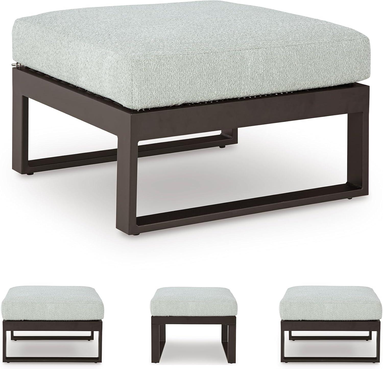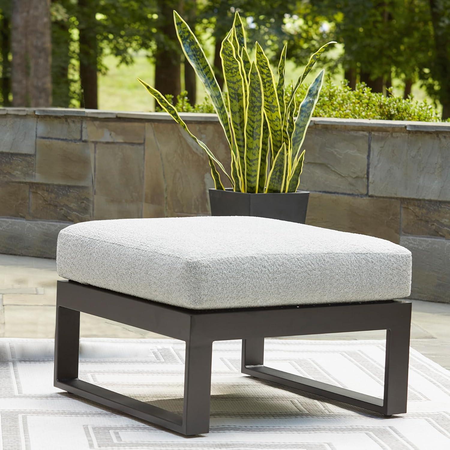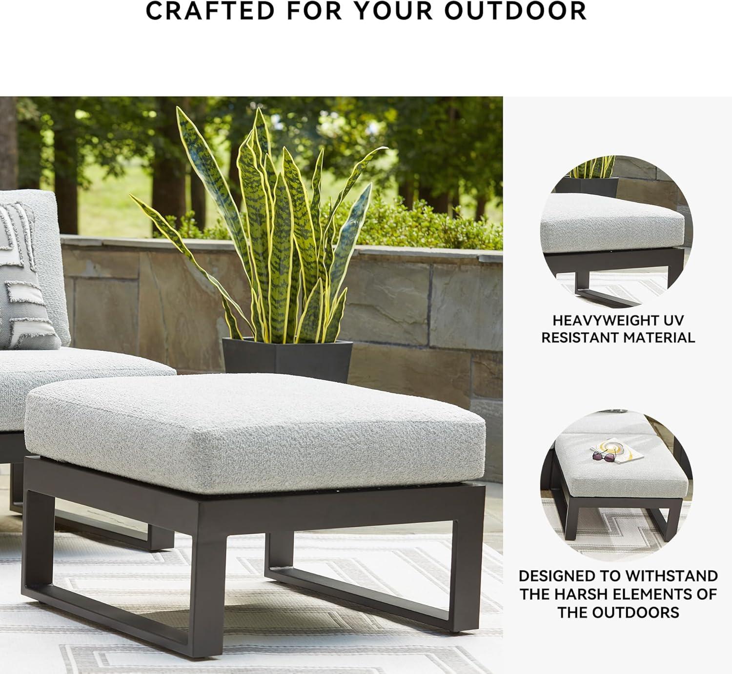 Signature Design by Ashley Beachloft Symmetrical Casual 5-Piece Outdoor Sectional with Cushion and 5 Throw Pillows, Light Gray(Ottoman)
