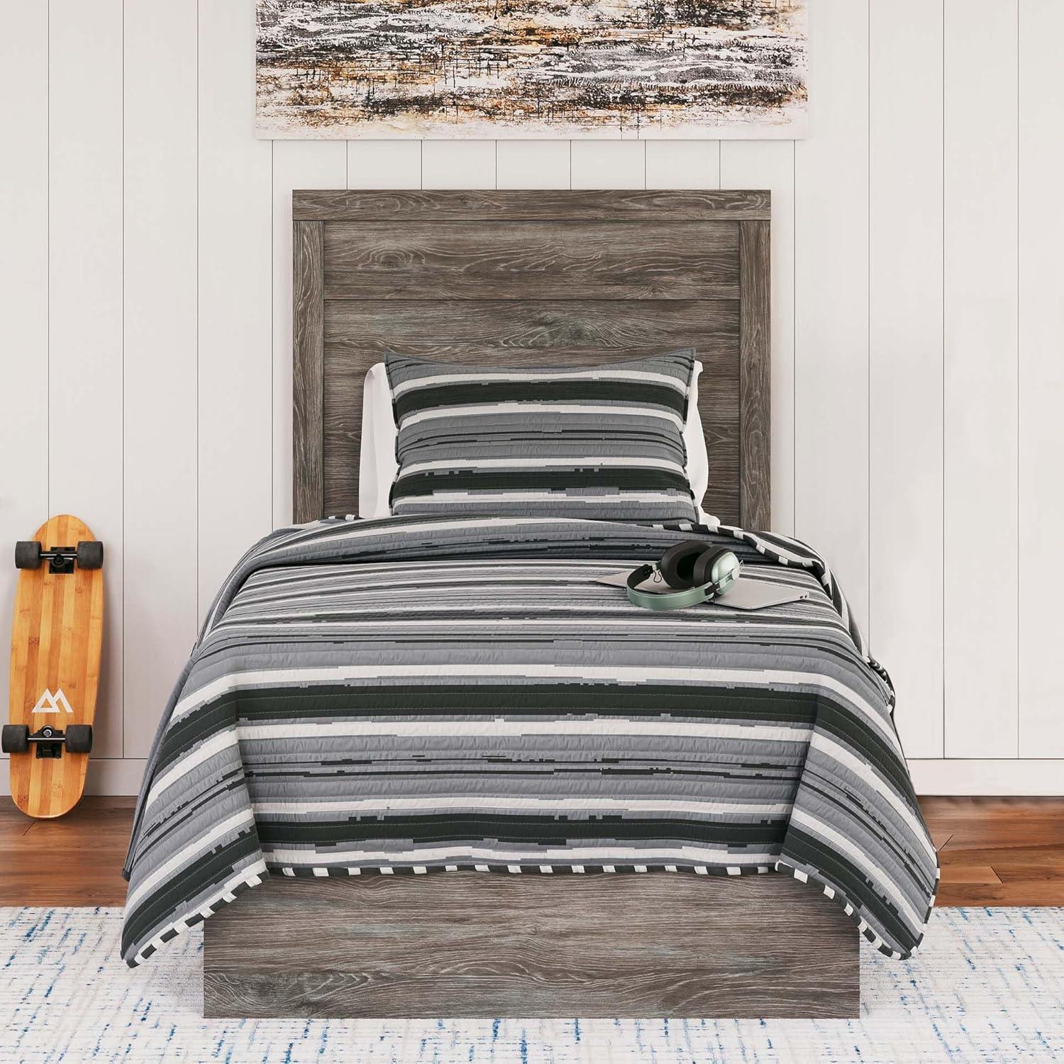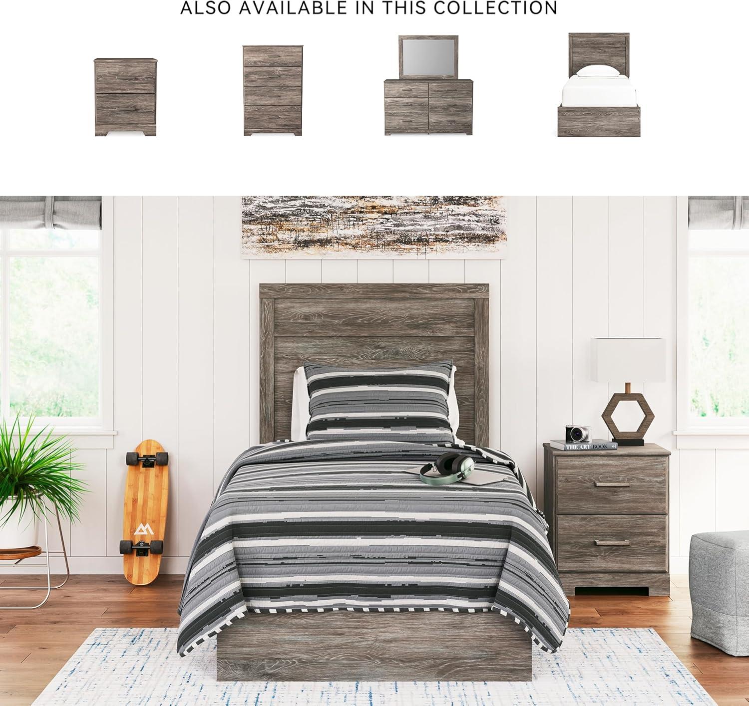 Signature Design by Ashley Belachime Rustic Twin Panel Bed, Foundation or Box Spring Needed, Gray(Grey)