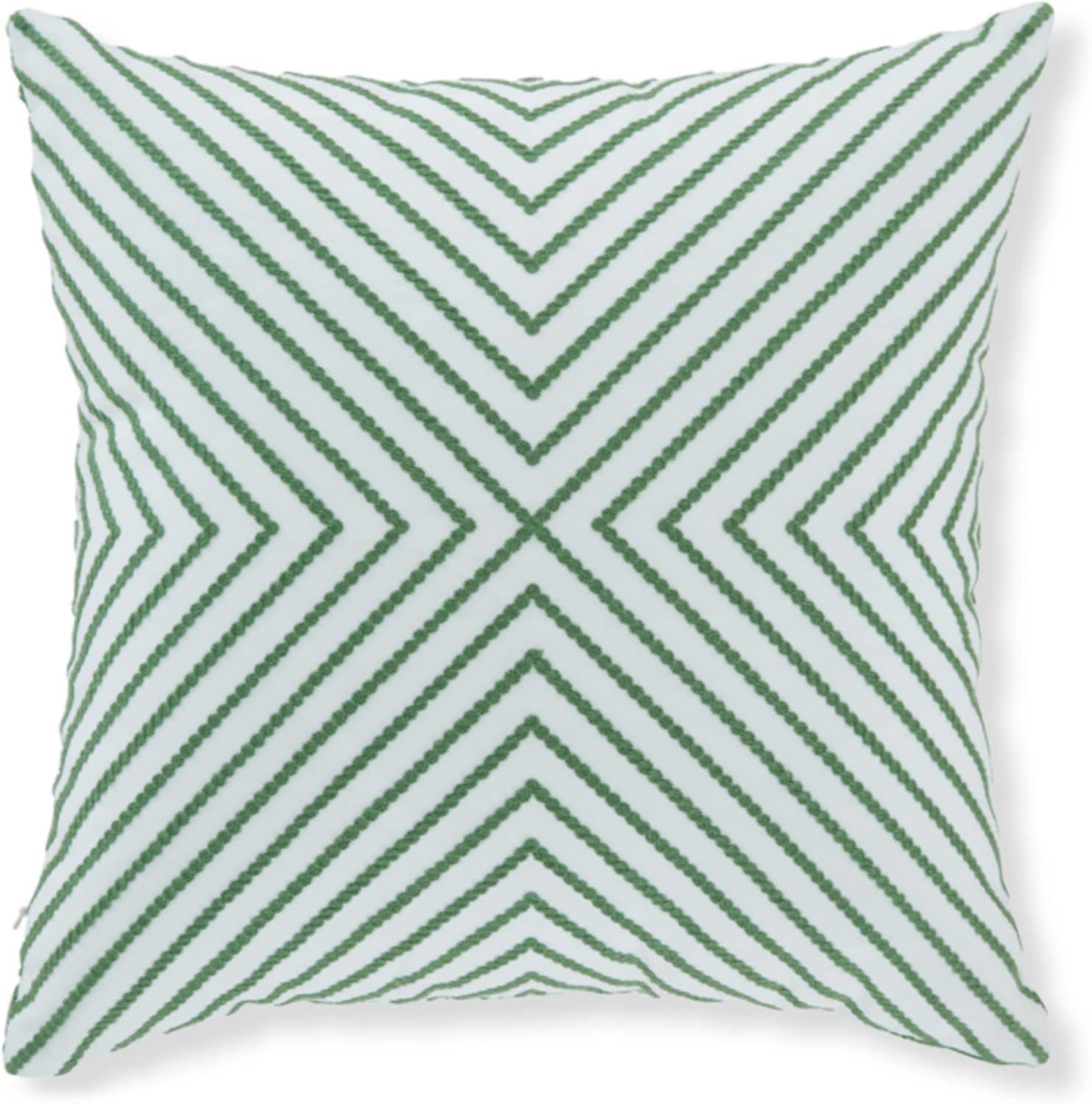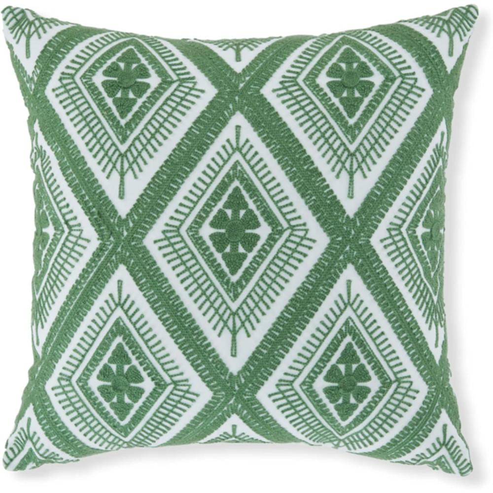 Signature Design by Ashley Bellvale Contemporary Square Indoor/Outdoor Pillow with Embroidered Diamond Design, 16″ x 16″, Green & White