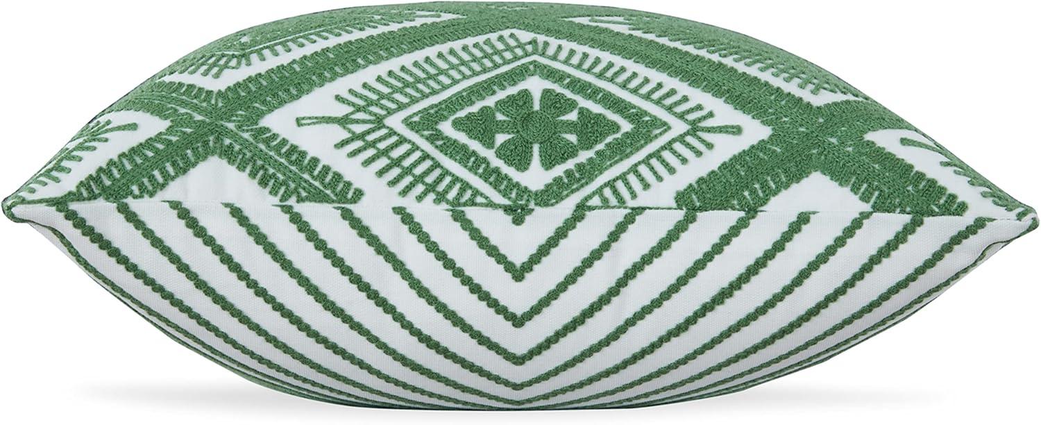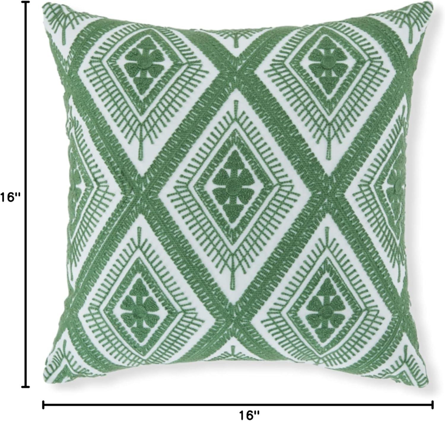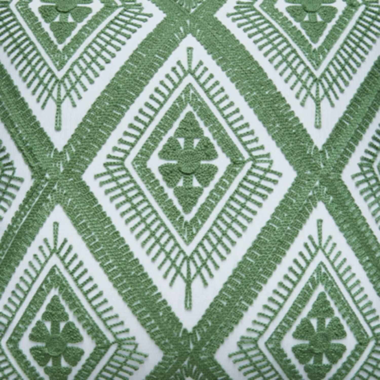 EYE-CATCHING COLOR: The diamond design in green and white adds a pop of color to your decor. It reverses to an embroidered “X” design, also in green and white