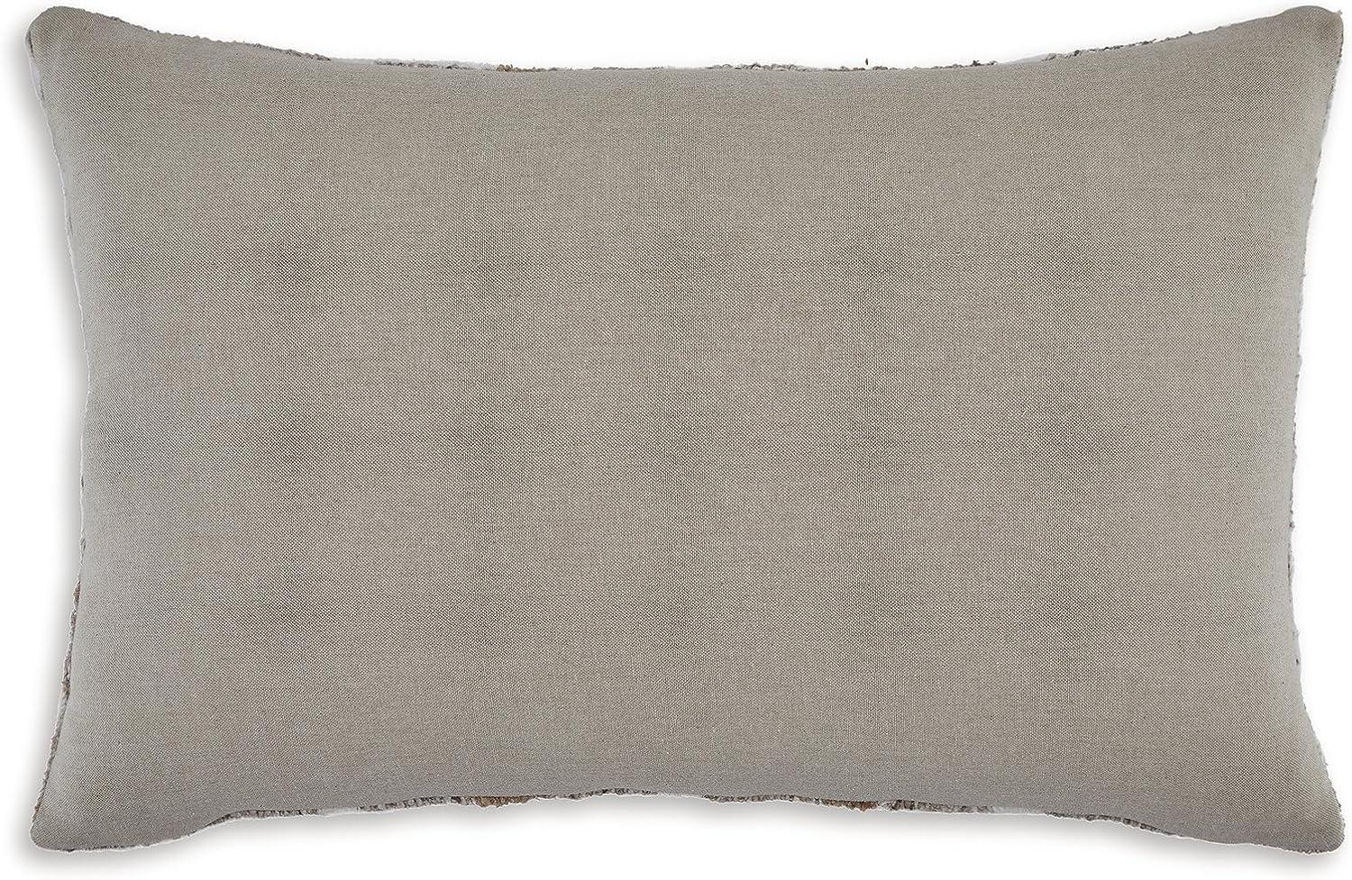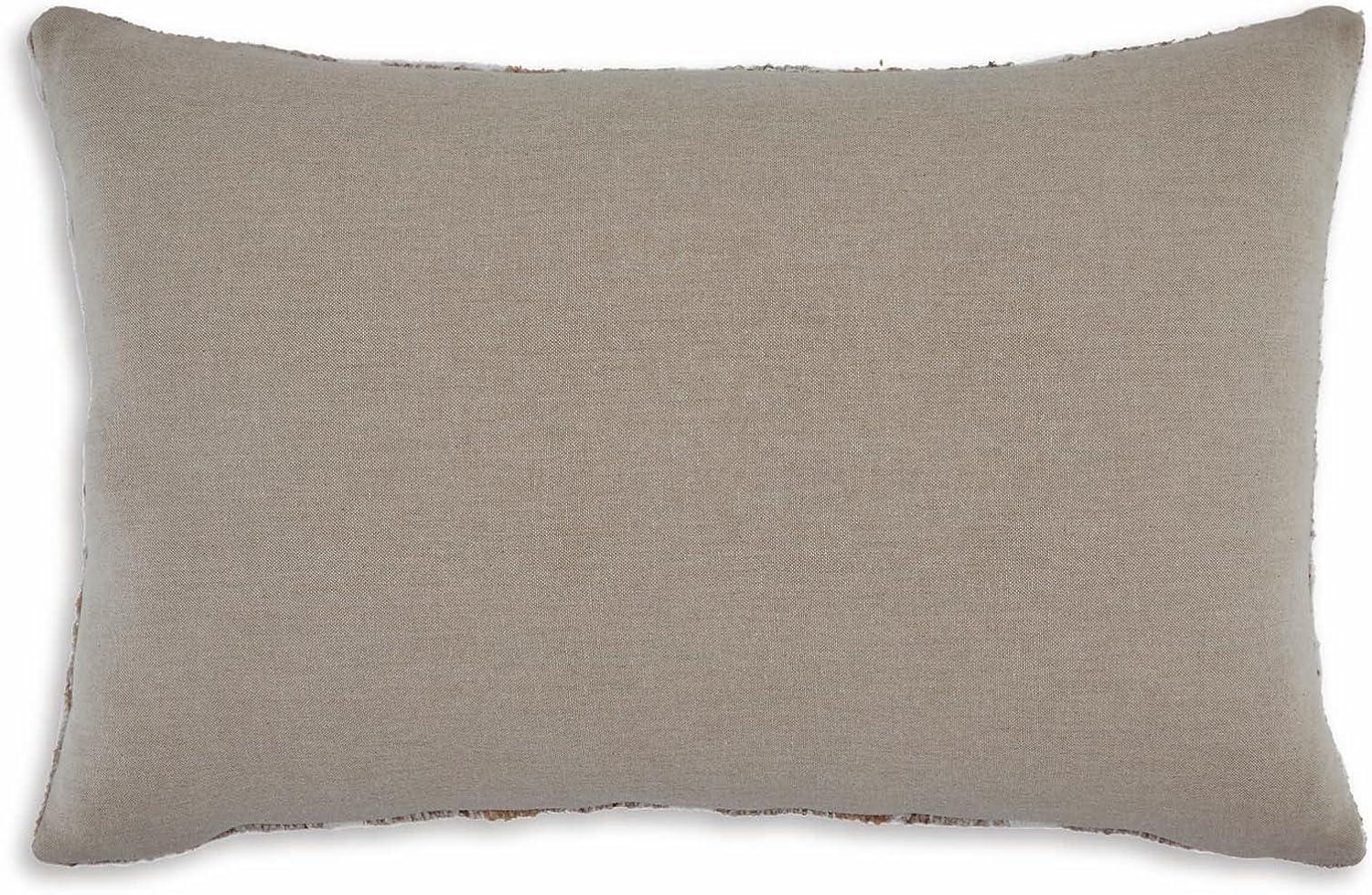 Signature Design by Ashley Benish Casual Indoor Striped 22 x 14 Inches Pillow with Zipper Closure, Light Brown & White