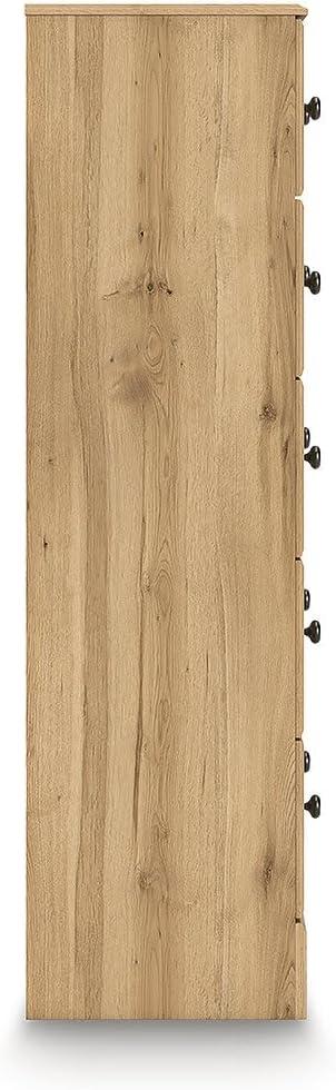 Country rustic. Vintage inspired. However you see it, you’re sure to be charmed by this chest of drawers. Adorned with chic drawer knobs and a warm oak grain finish, it offers a relaxed mix of picturesque aesthetics. Its storage space gracefully welcomes clothes, linens and other bedroom necessities. With an air of easygoing elegance, this dresser lets you drift away to a simpler time and place.
