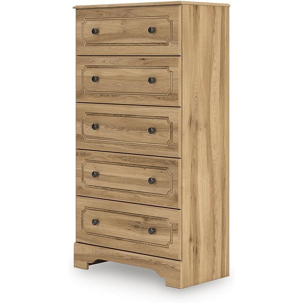 Signature Design by Ashley Bestmere Farmhouse 5-Drawer Chest with Knobs, Easy Glide and Safety Stop for Bedroom, Light Brown