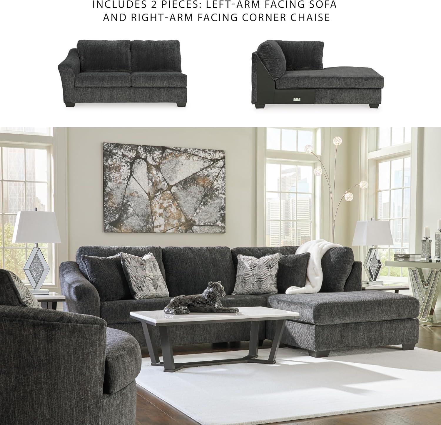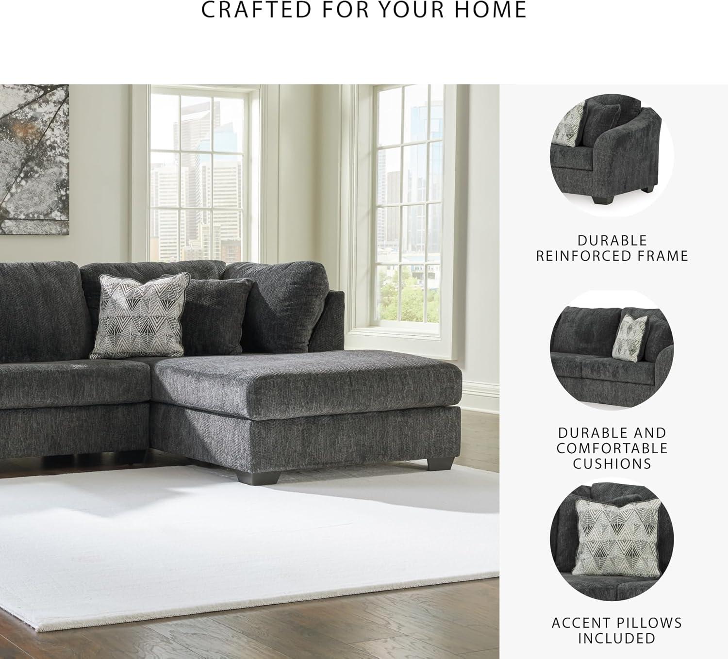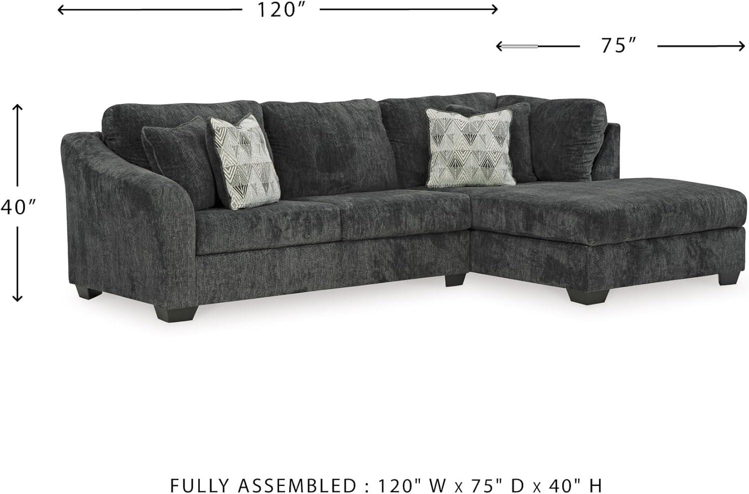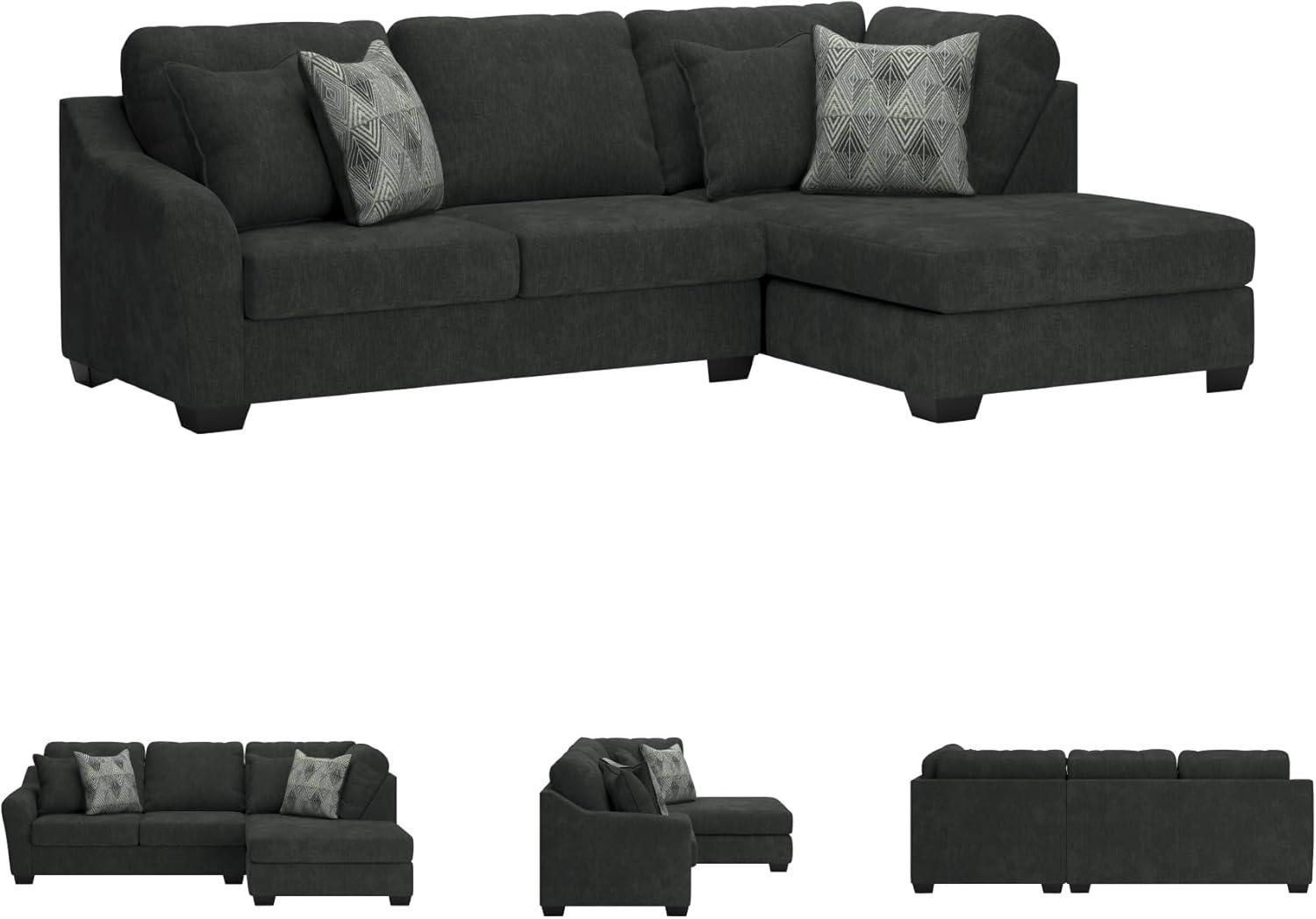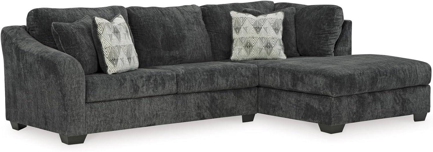 Signature Design by Ashley Biddeford Contemporary Right-Arm Facing Convertible 2-Piece Sleeper Sectional with Chaise, Bi-Fold Memory Foam Mattress and 4 Accent Pillows, Full, Gray(Dark Gray)