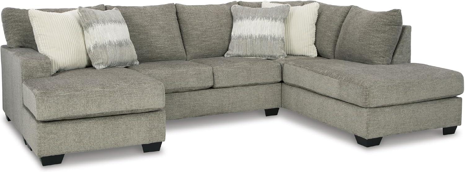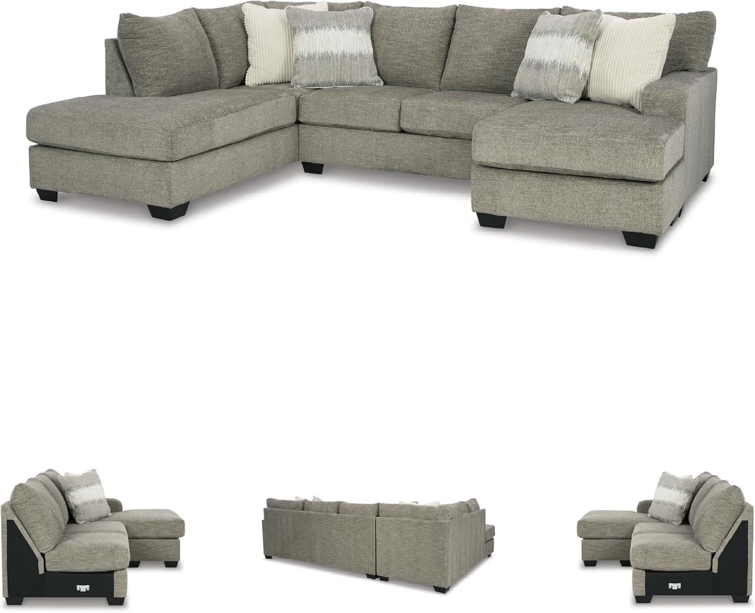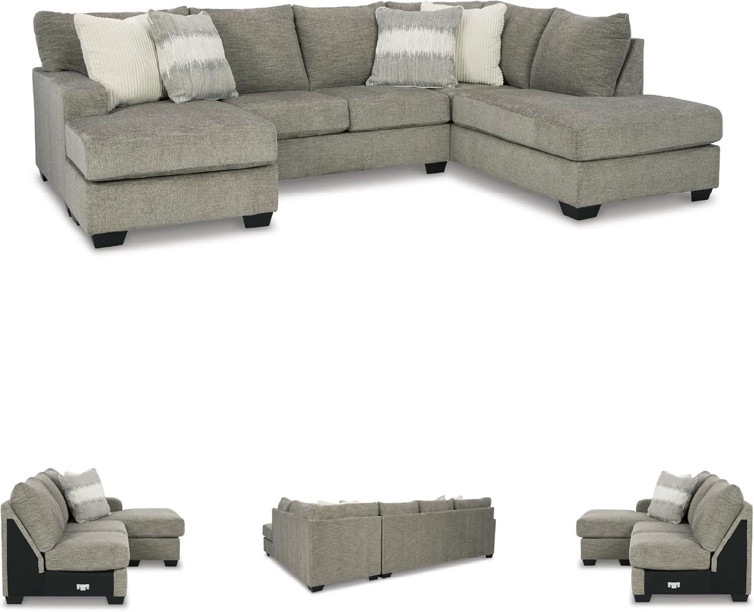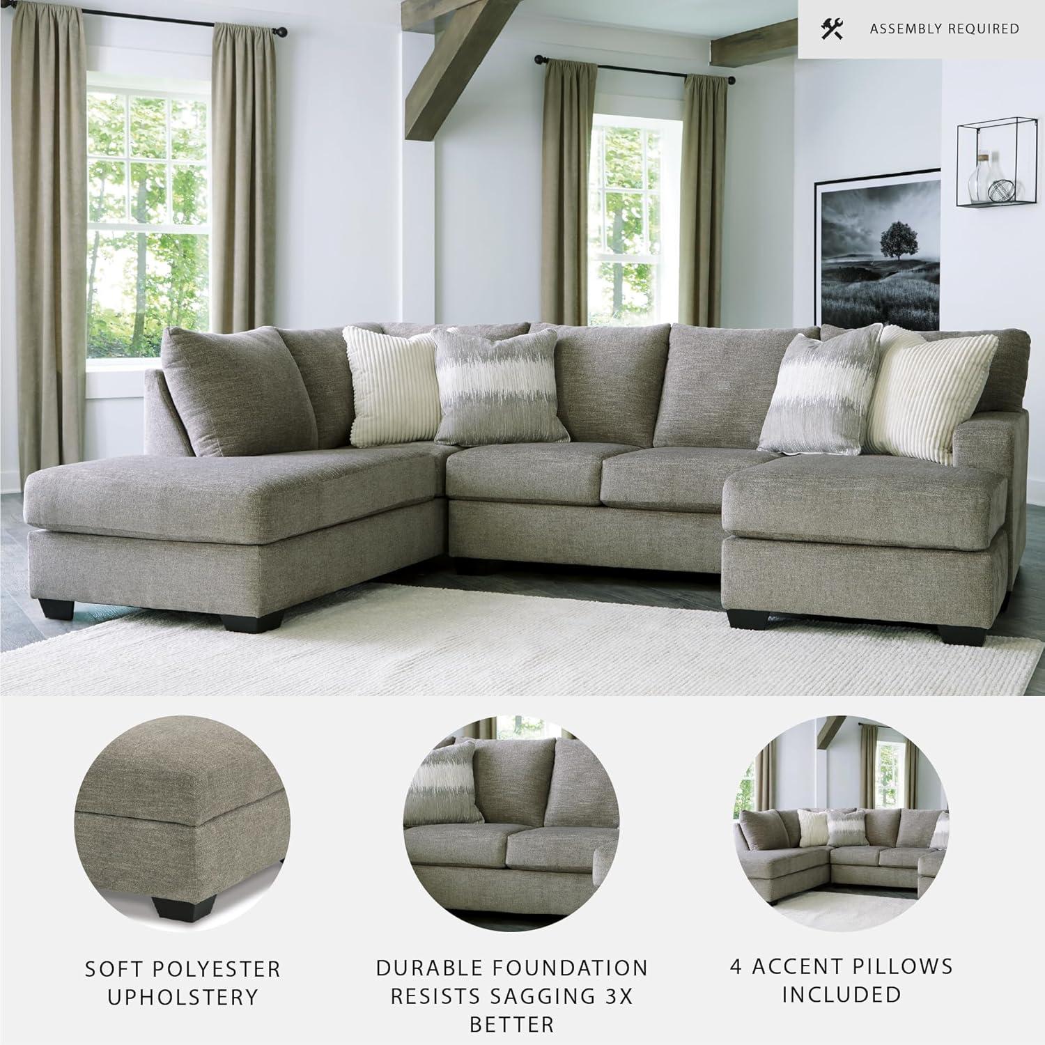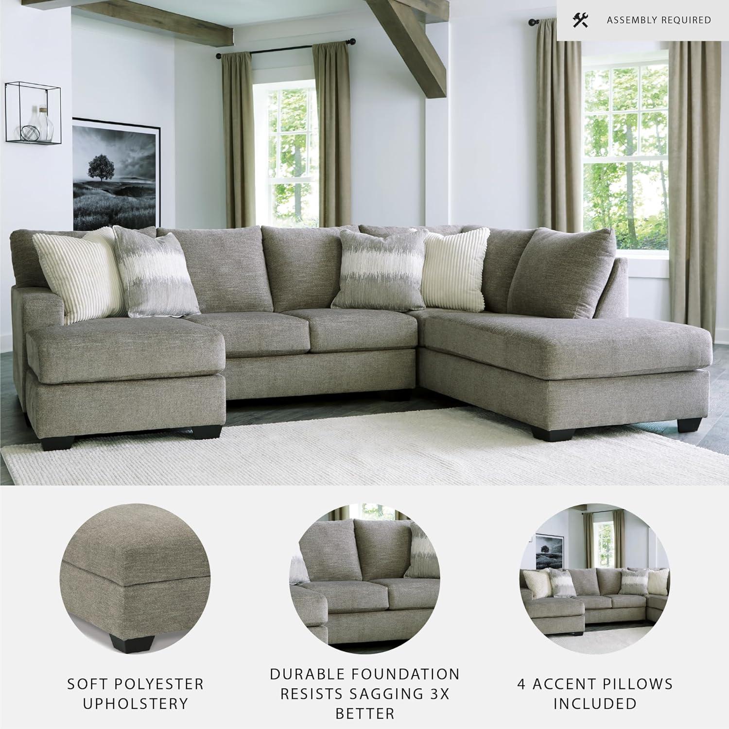 Signature Design by Ashley Biddeford Contemporary Right-Arm Facing Convertible 2-Piece Sleeper Sectional with Chaise, Bi-Fold Memory Foam Mattress and 4 Accent Pillows, Full, Gray(Grayish)