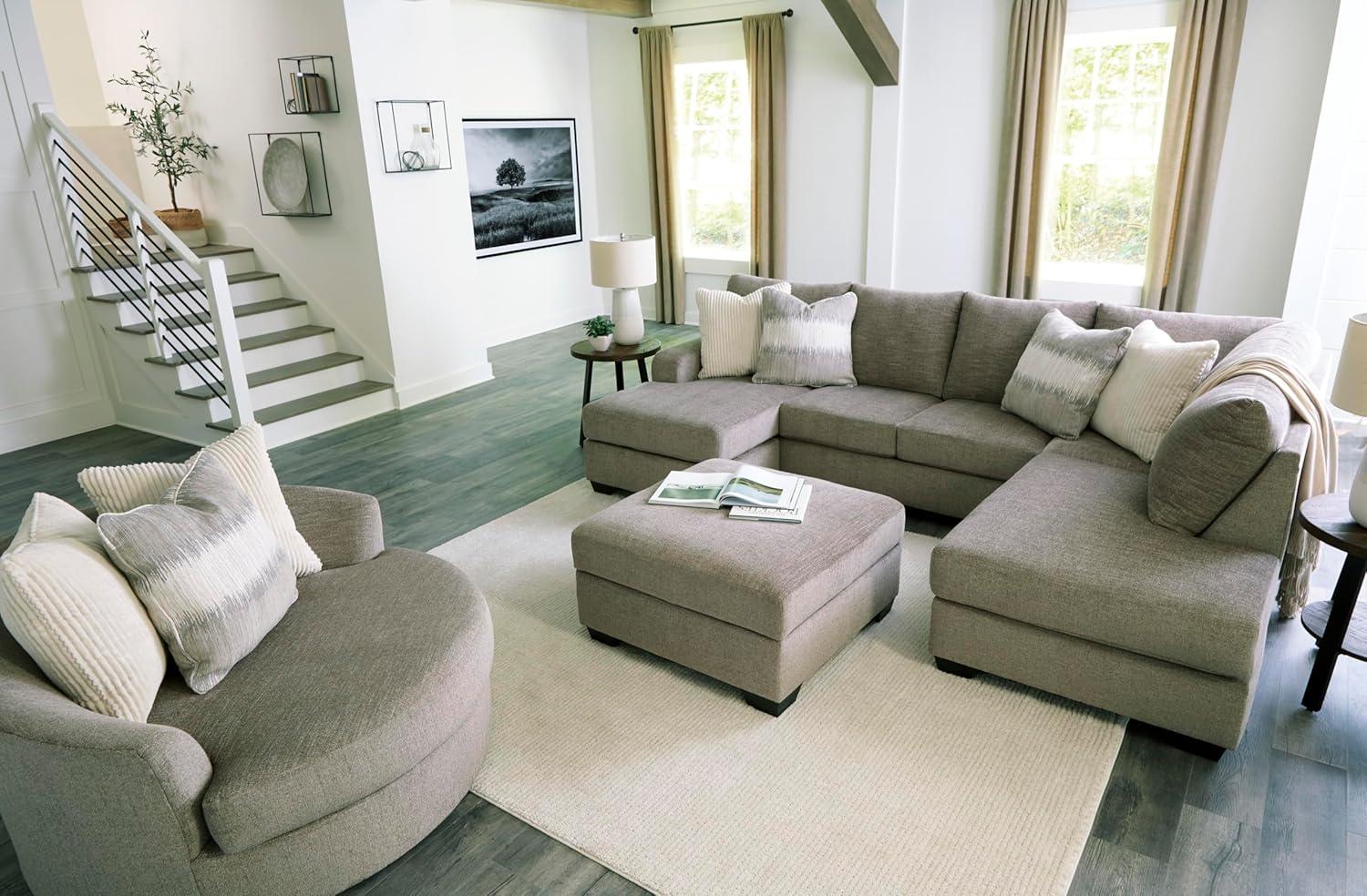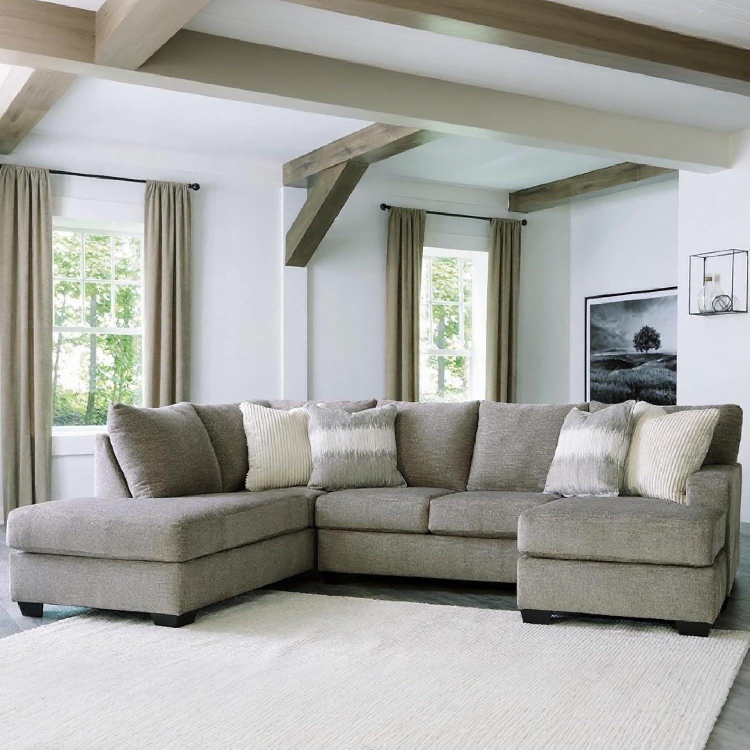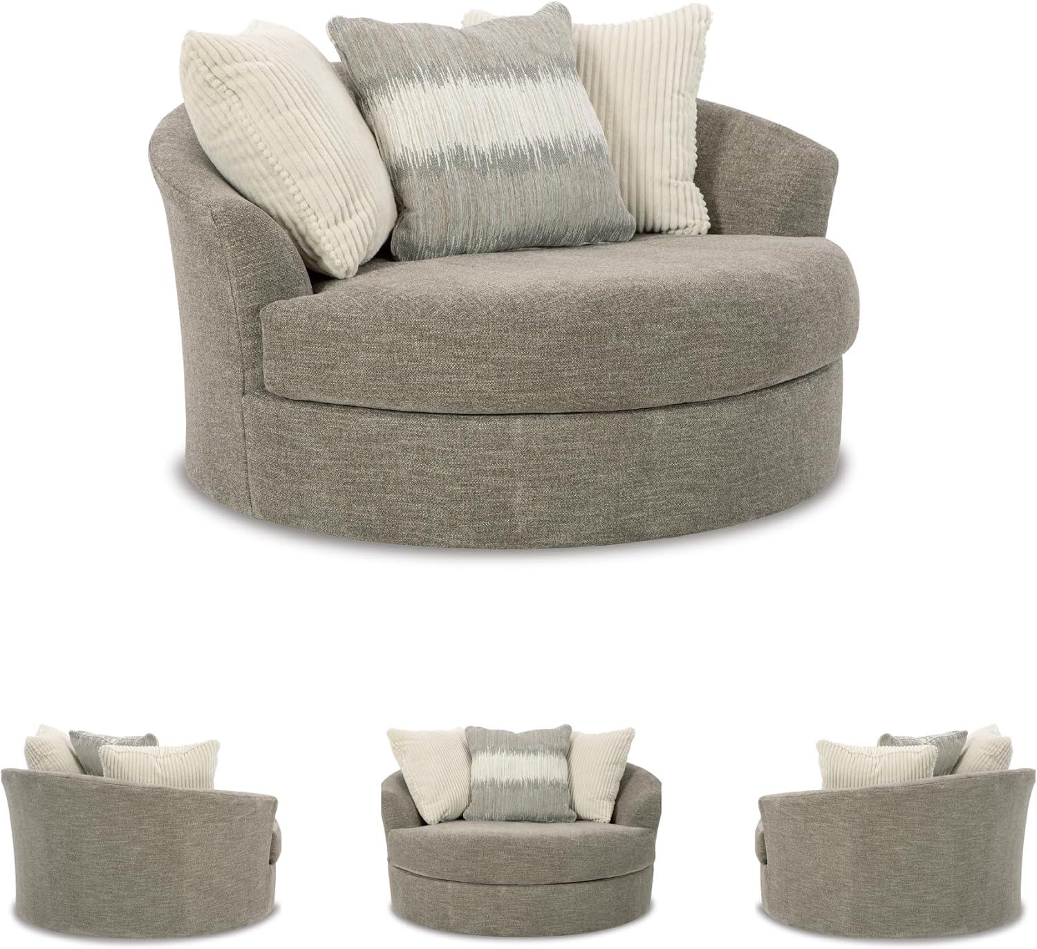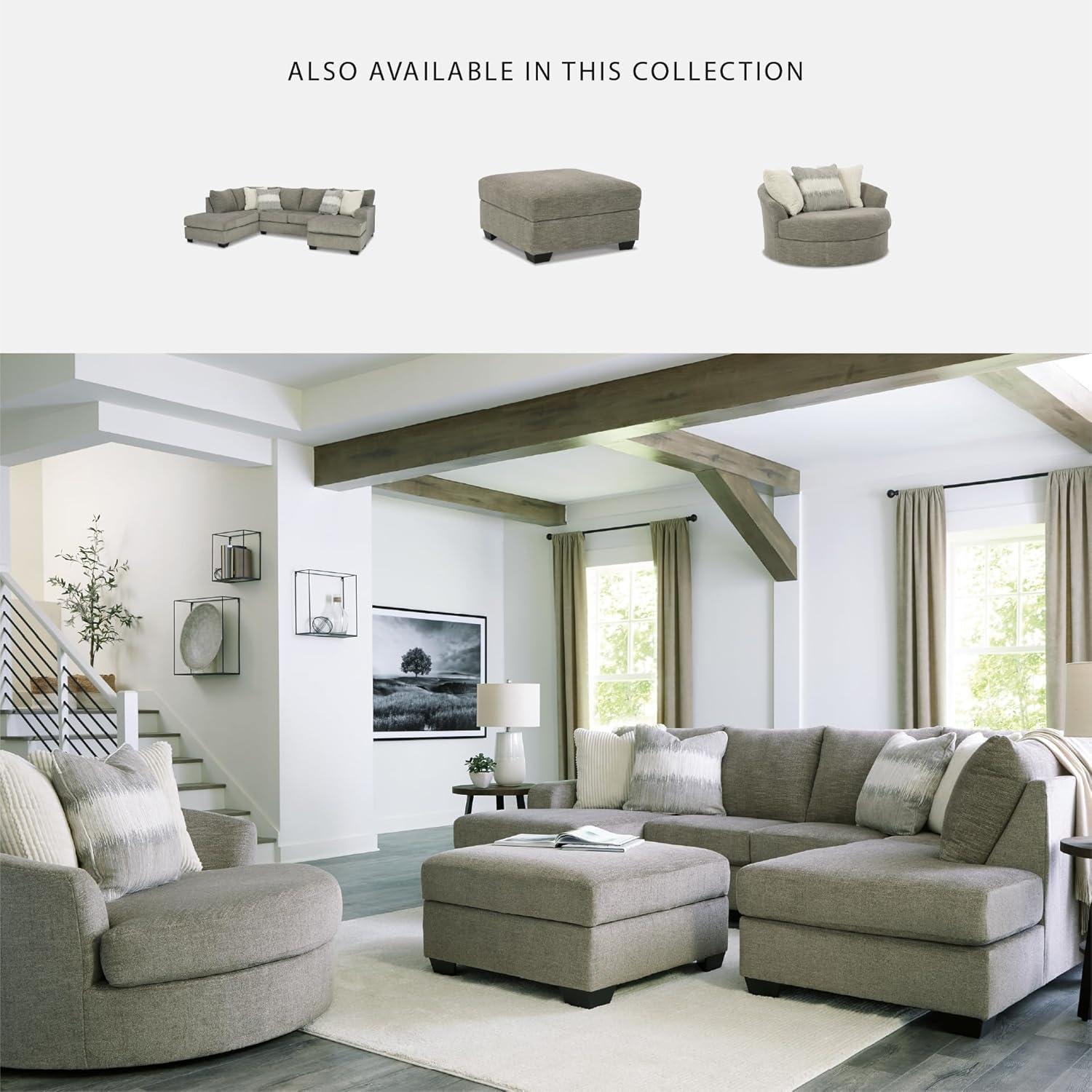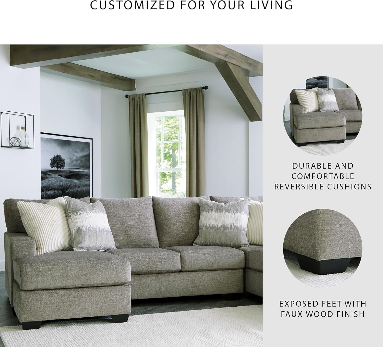 Signature Design by Ashley Biddeford Contemporary Right-Arm Facing Convertible 2-Piece Sleeper Sectional with Chaise, Bi-Fold Memory Foam Mattress and 4 Accent Pillows, Full, Gray(Grayish)